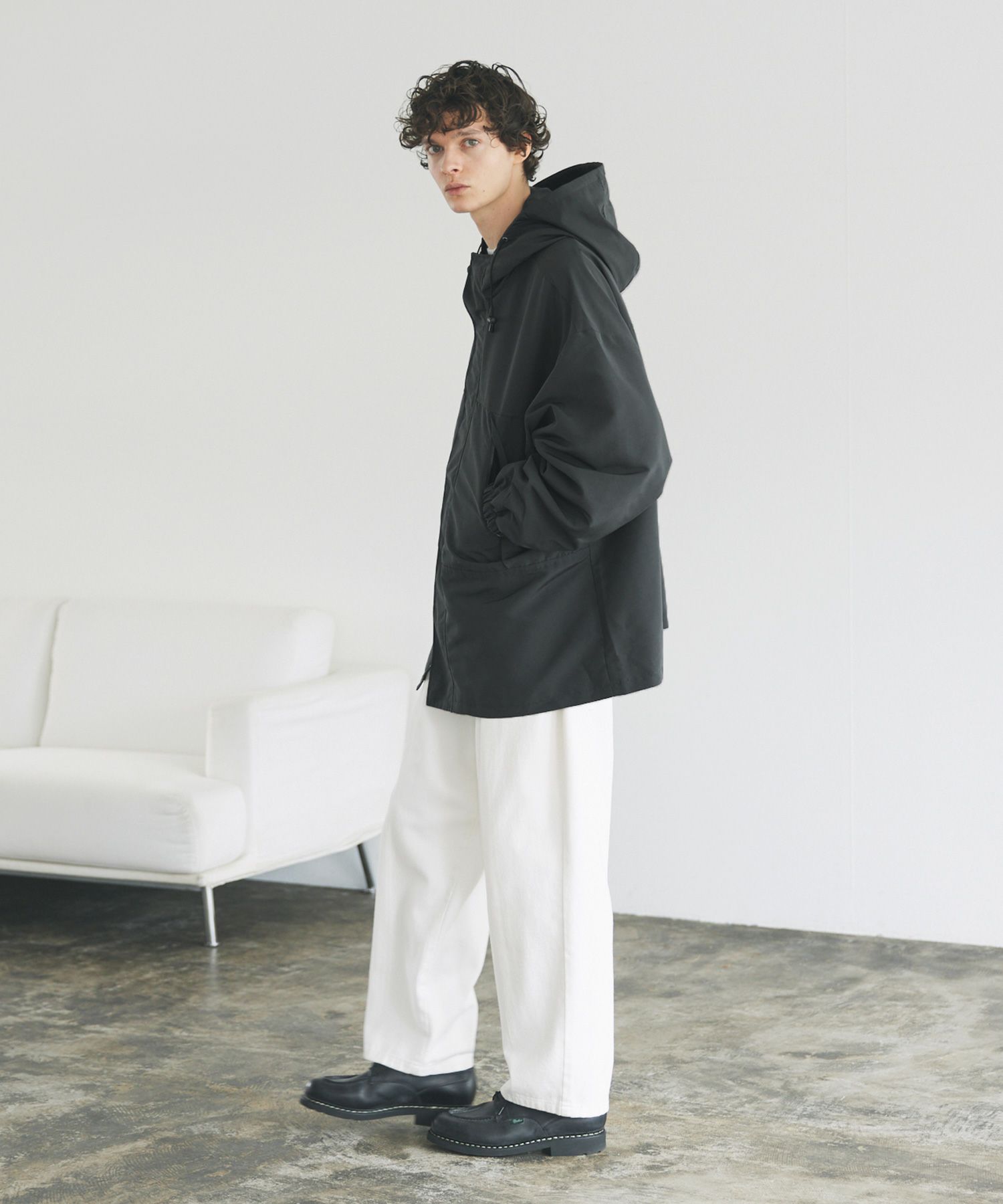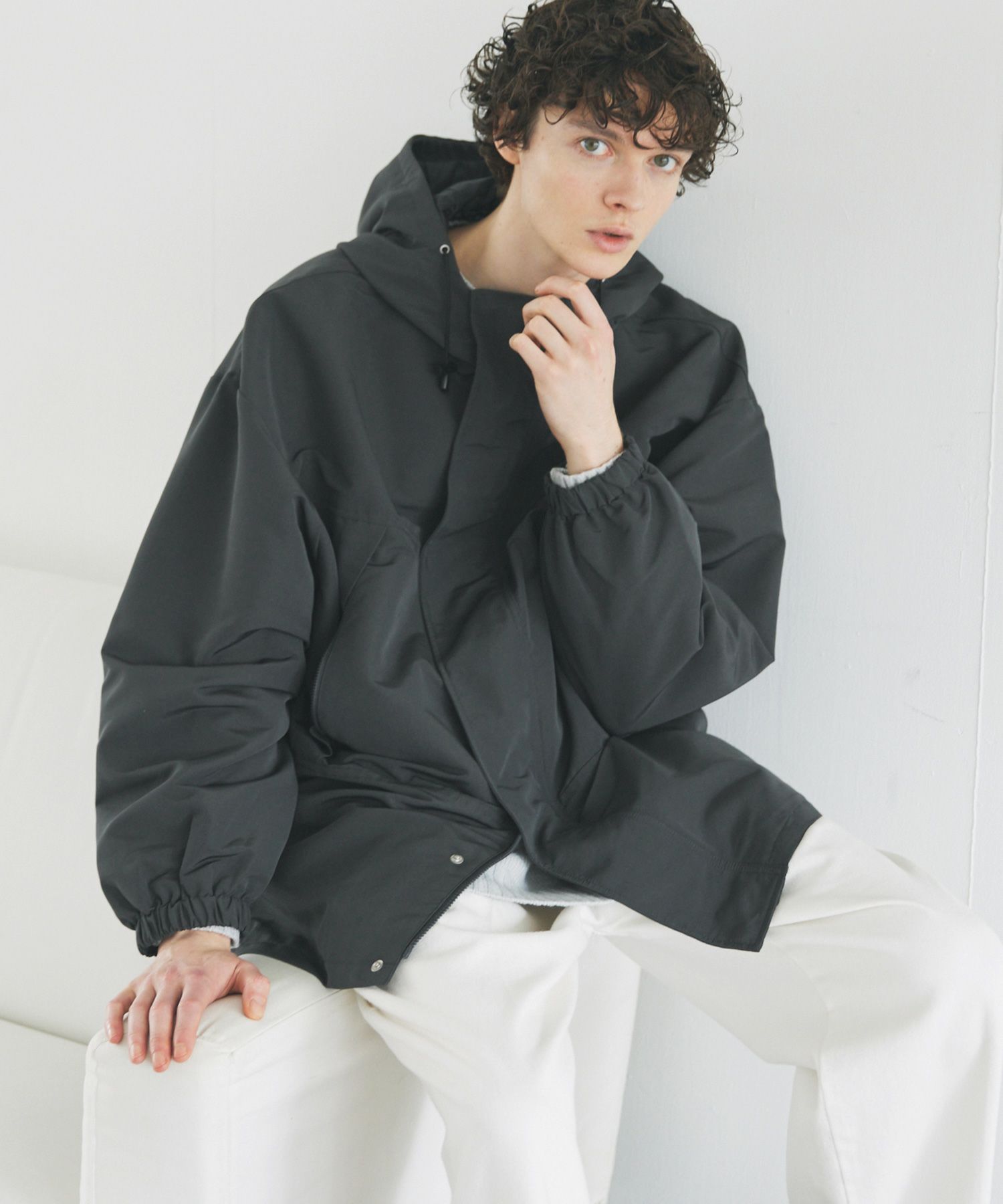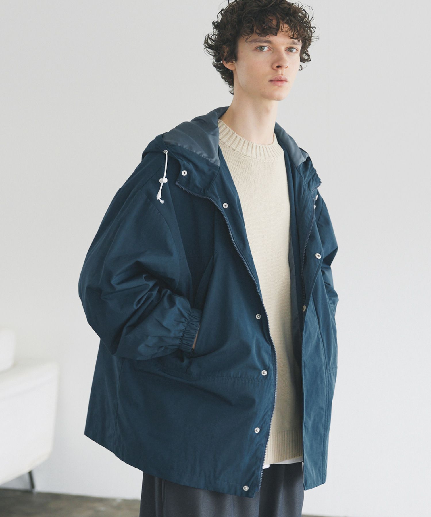 ビッグシルエットの軽量マウンテンパーカー。大きめのフロントポケットが目を惹くポイントになり、また財布や携帯など小物の収納もできる実用性にも優れた1着。