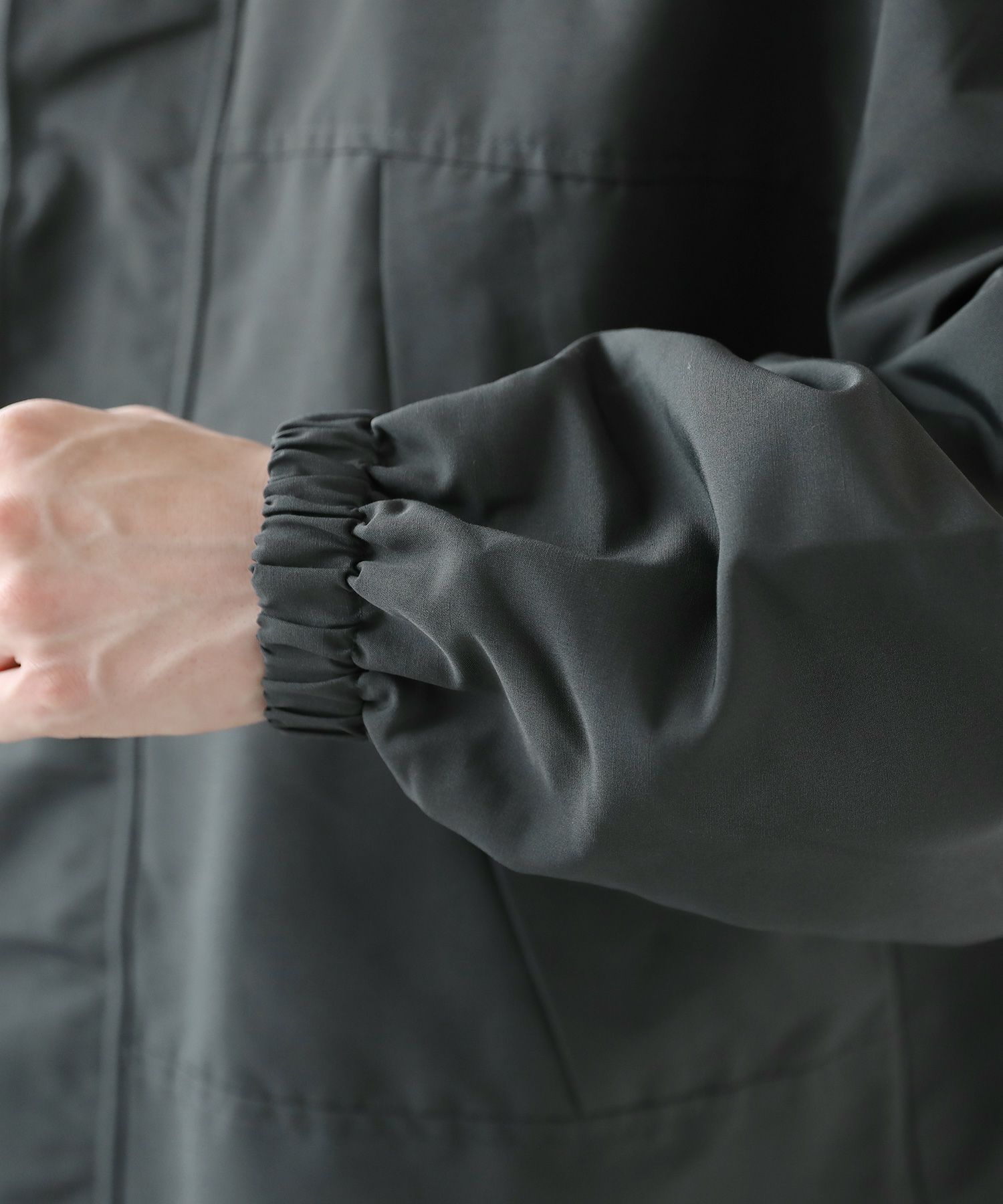 フロントはジップ仕様&スナップボタン付き。フロントを閉めるとボタンの見えないフラップ仕様なのですっきりと着こなせます。軽量でマットな素材を使用することで、タウンユースでも使いやすいマウンテンパーカーに仕上げました。また軽量ながらネックの立ちが良く、フロントを閉めるとキレイなハイネックのシルエットに。ゆとりのある身幅&袖幅で、合わせるインナーを選ばず、ロングシーズンお使いいただけます。秋から春にかけて着まわしの効くおすすめのアウターです。
