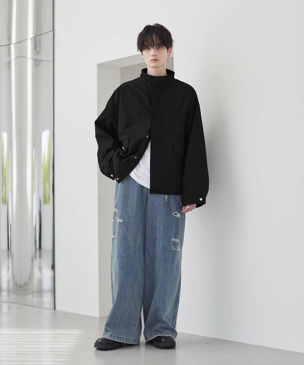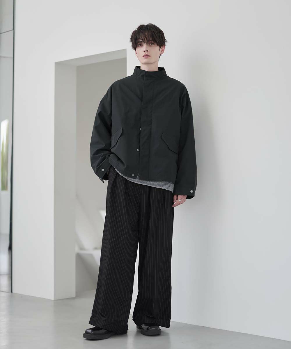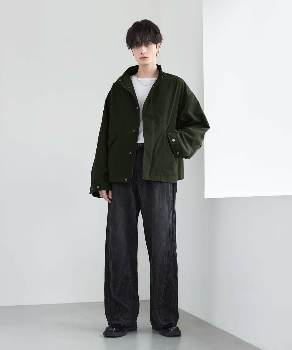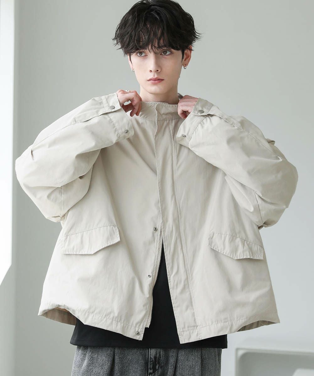 ロングシーズンで着用可能なビックシルエットのショートモッズジャケット。ミリタリーの定番モッズコートをショートジャケットにアレンジ。ショート丈なため気軽に羽織れ、季節の変わり目にも便利なアイテム。