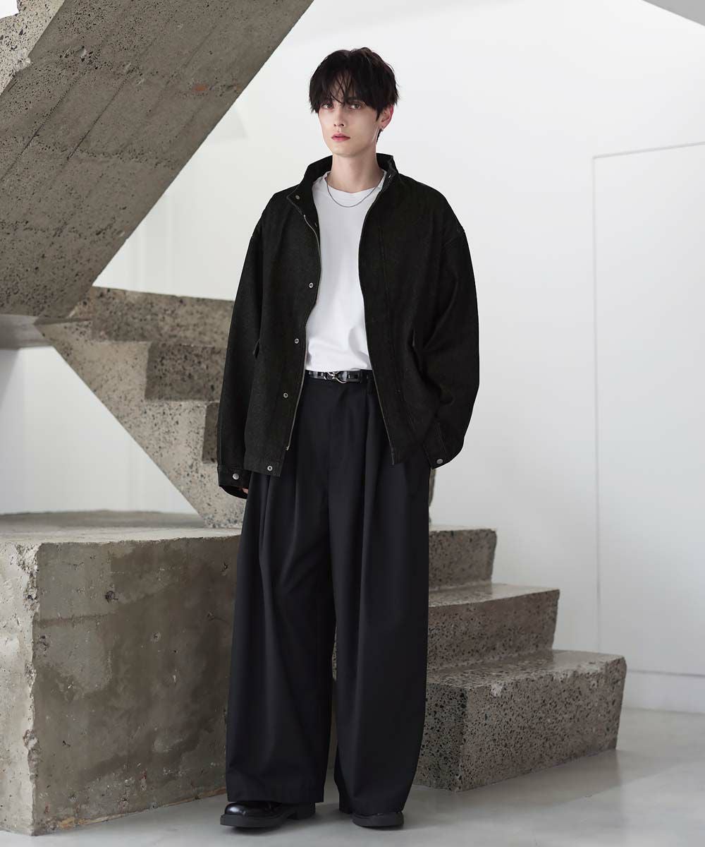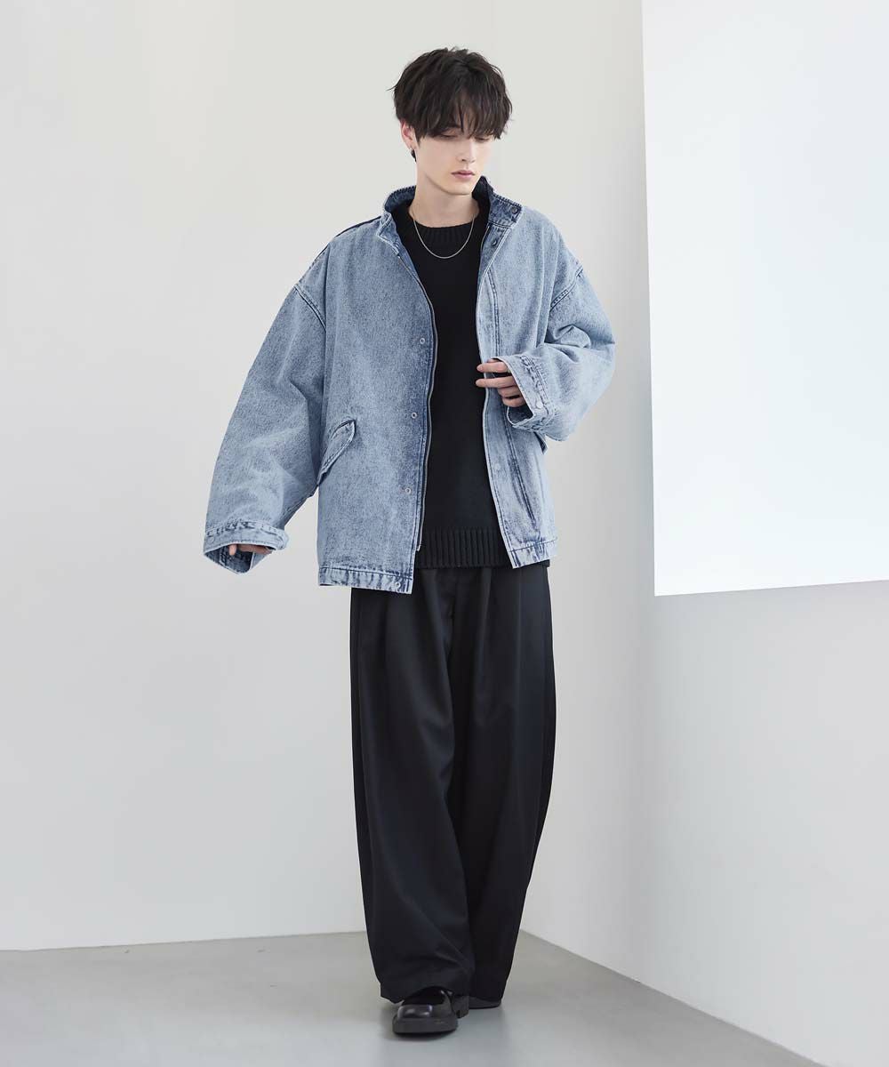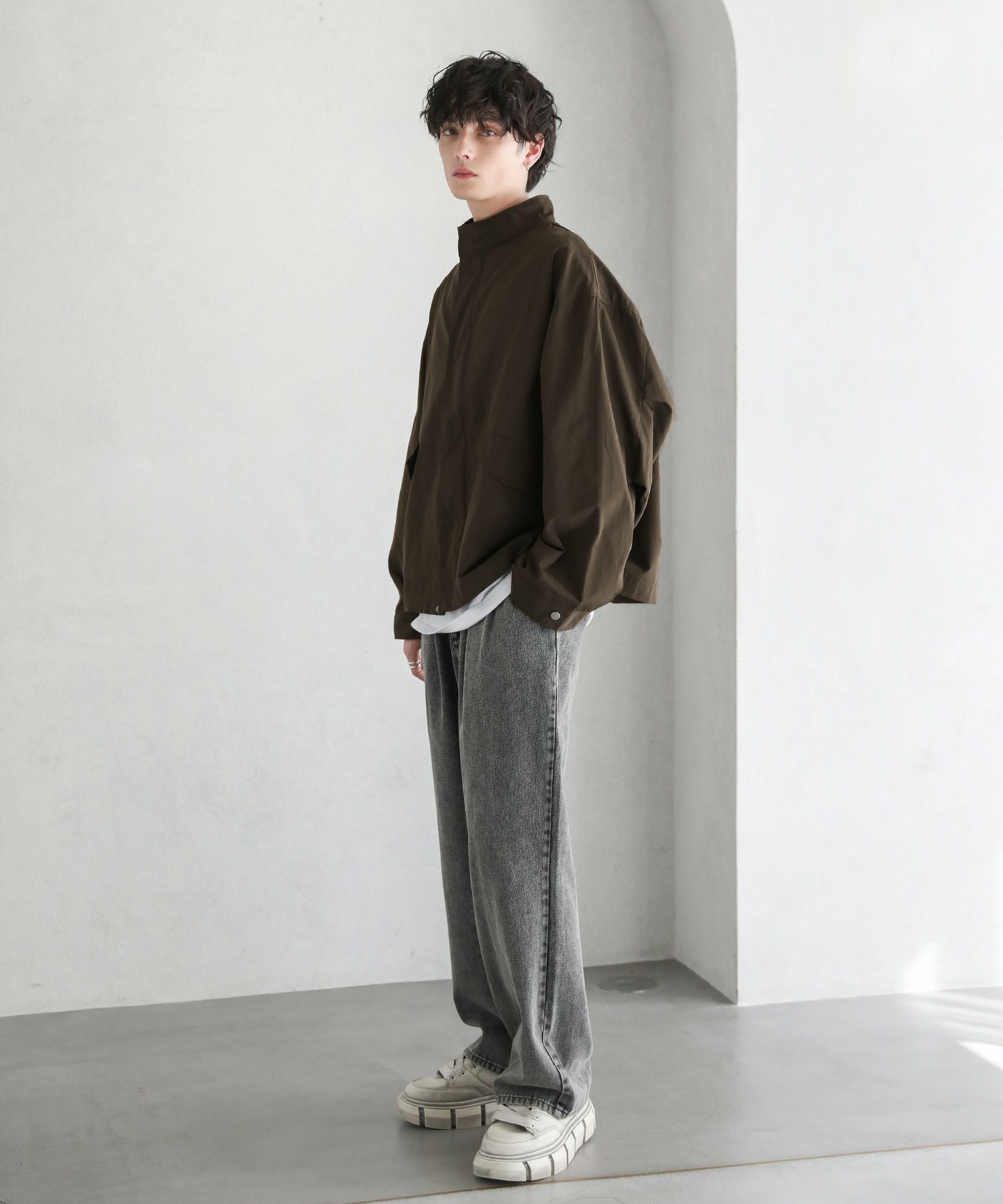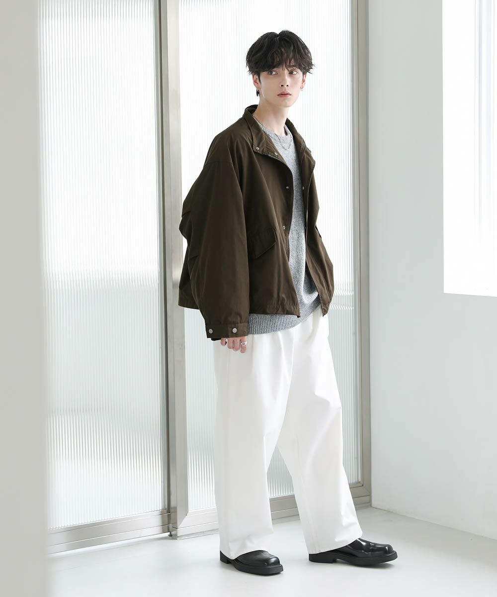 ショート丈のブルゾンなので、ボトムを選ばずデイリーに活躍します。ワイドパンツやバギーパンツなど太めボトムともバランスの取りやすい丈感。また身幅にゆとりがあり、スウェットやニットも着込めます。インナーを調節することで春先や秋口に着回しの効くアイテムです。