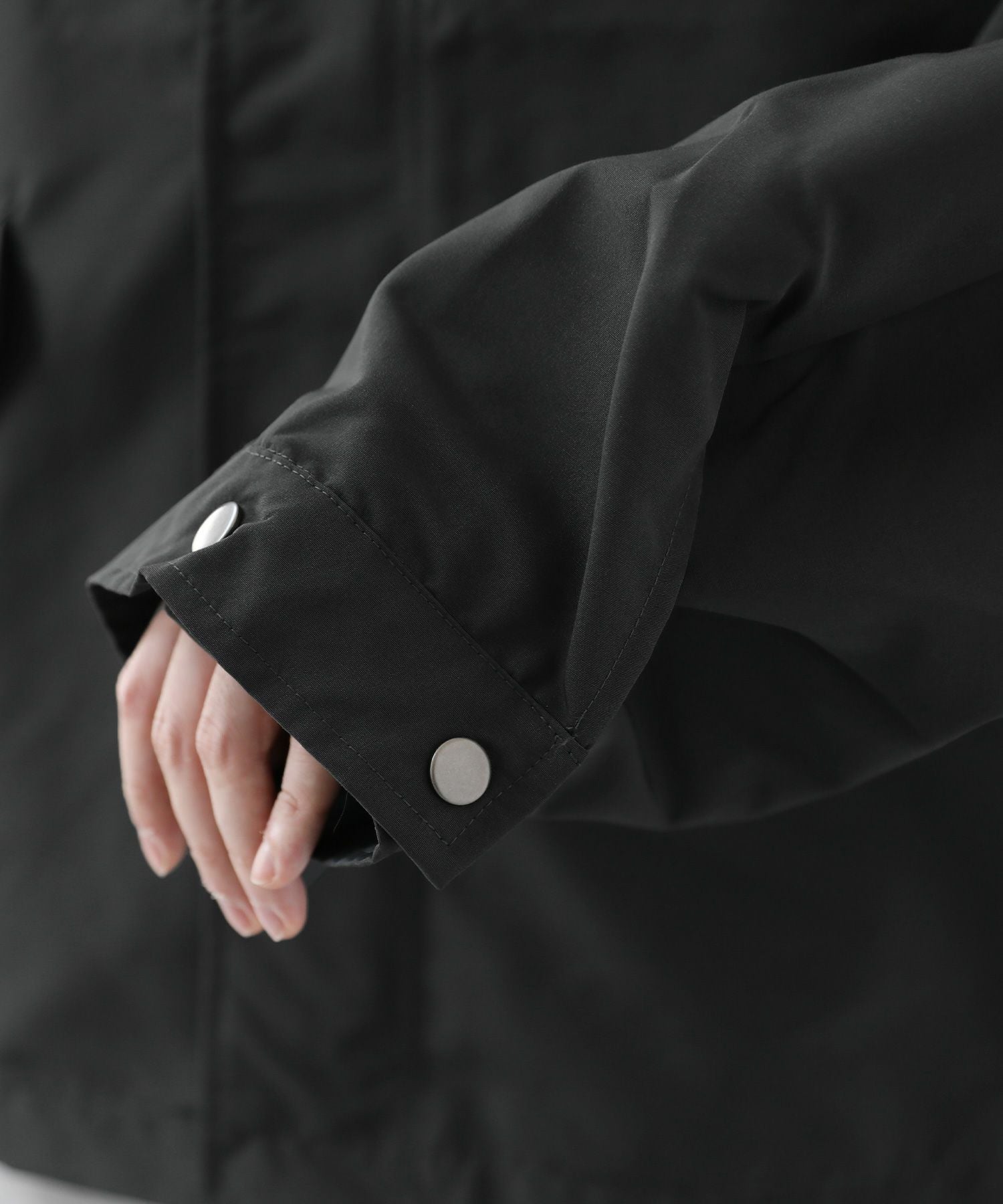 ディティールにもこだわったシティユースにおすすめのジャケット。フロントはジップ仕様&スナップボタン付き。フロントを閉めるとボタンの見えないフラップ仕様なのでミリタリーアイテムながらすっきりと都会的な印象で着こなせます。ボリュームのある袖はダーツを入れることで立体感があり、バックシルエットも決まる1着。