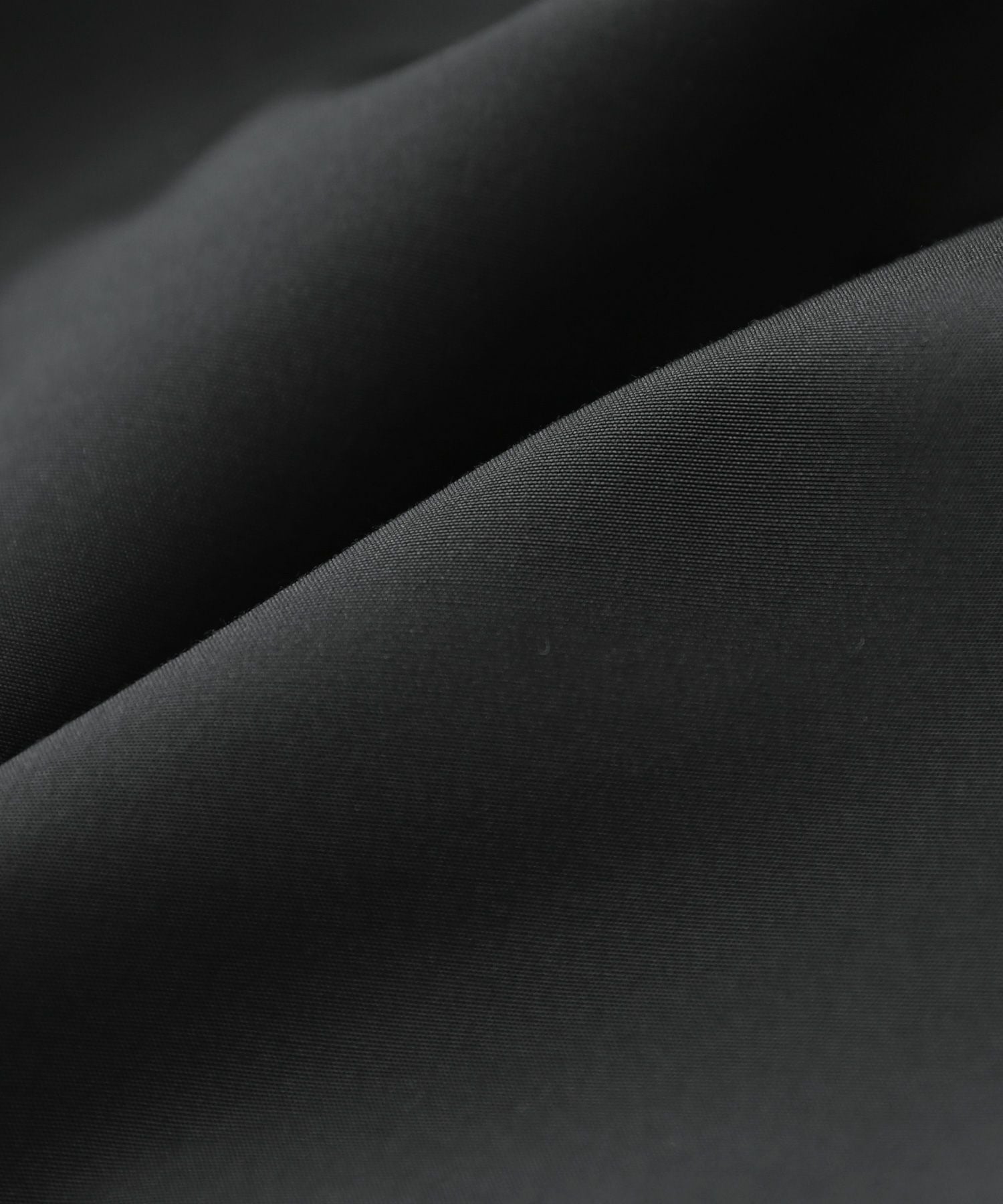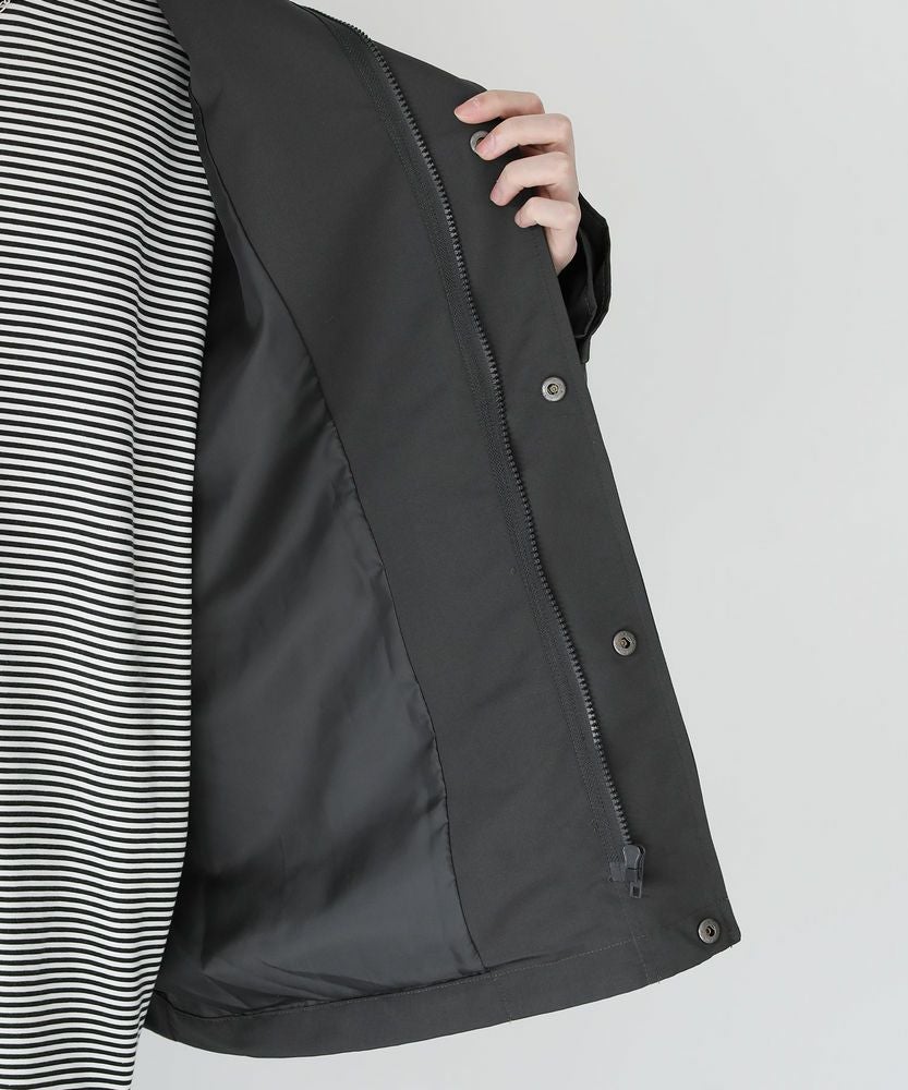 軽量の綿ポリエステル混紡素材を使用しています。落ち着いたマットな質感でさまざまな着こなしに合わせやすいのがポイント。裏地はツルっとした生地でニットなども引っ掛かりがなく楽に脱ぎ着できます。