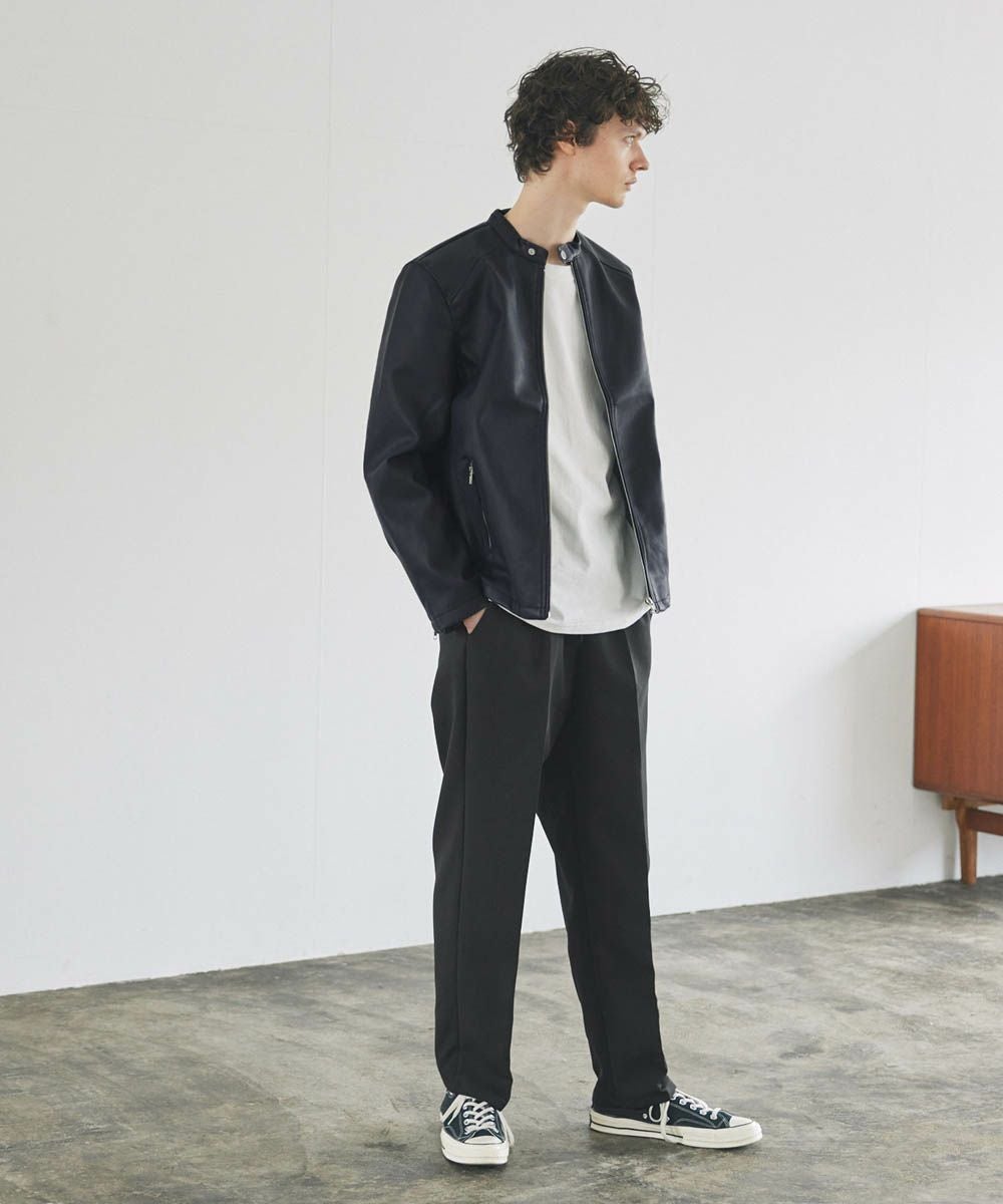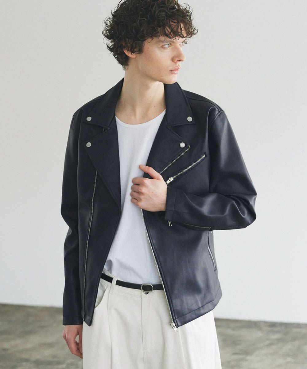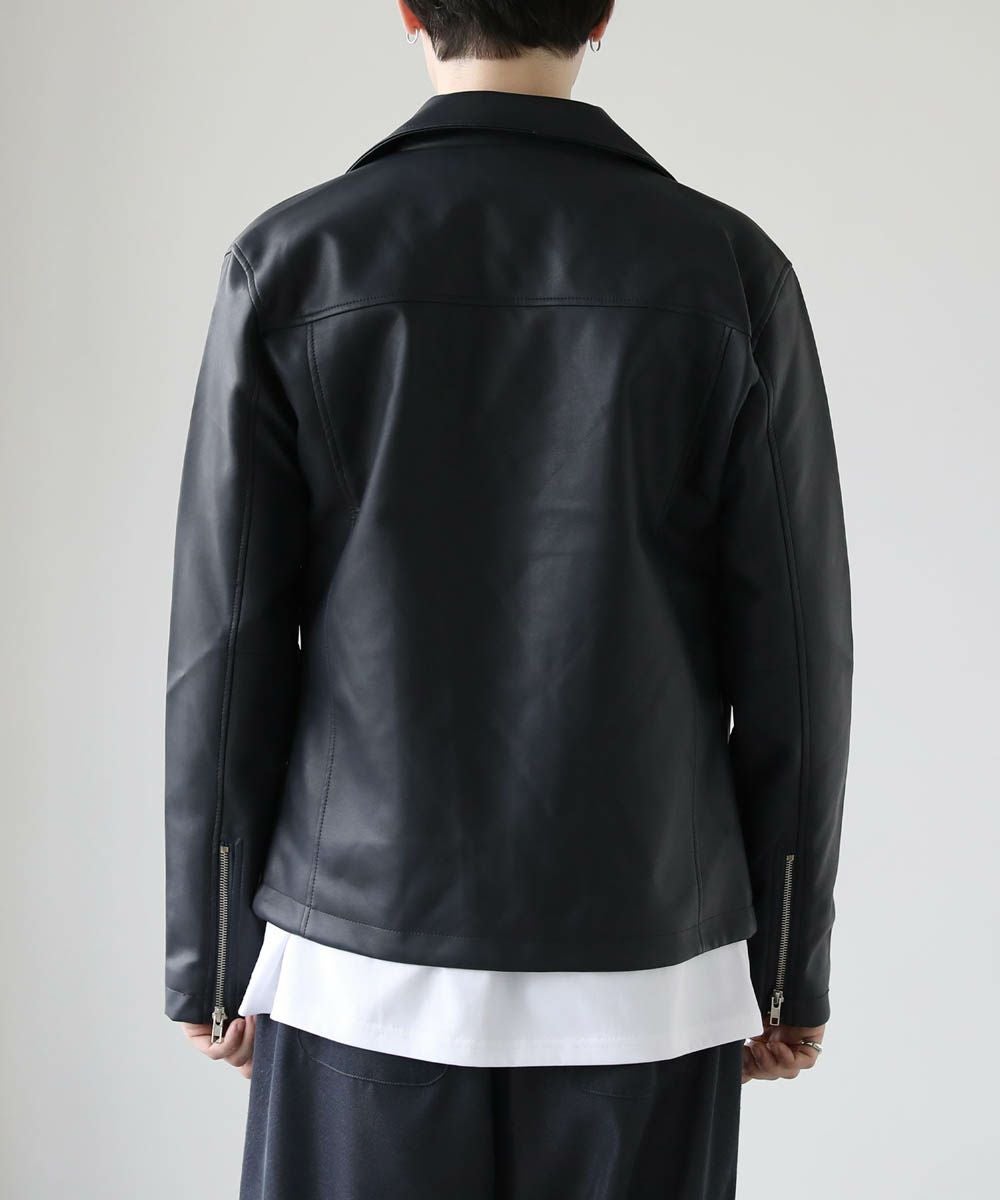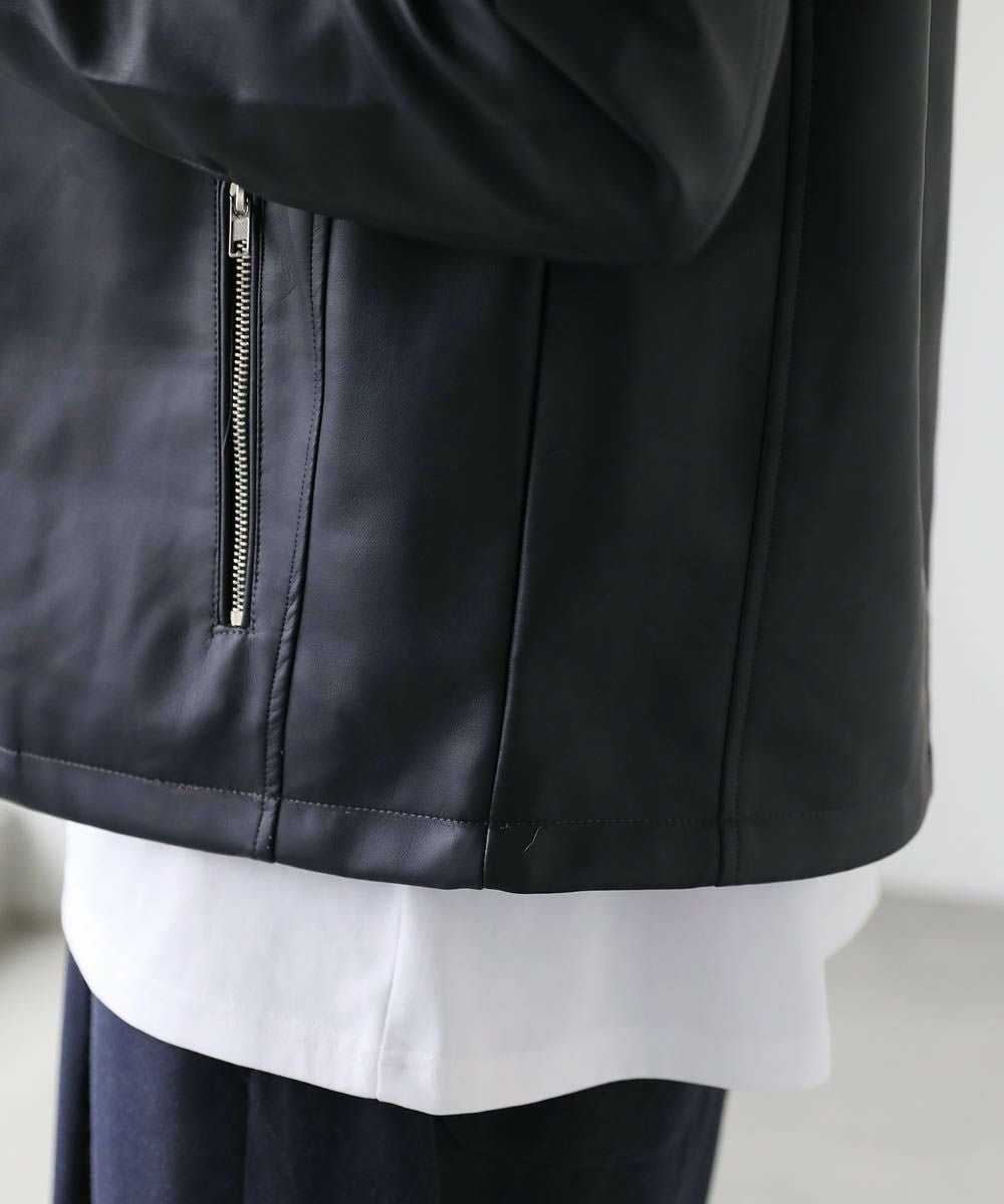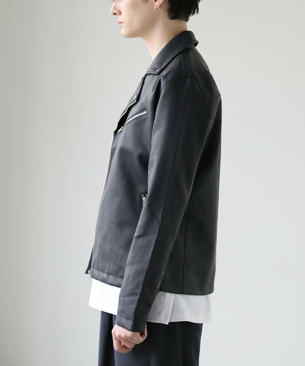 フィット感がありつつも動きやすいサイジングで、日々のコーディネートに活躍するアイテムです。光沢を抑えた細かなシボ感のあるPUレザーを使用し、上品な印象で着こなせます。裏地付きで引っ掛かりがなくスムーズに着脱可能。秋から春にかけて1着あると着こなしをグッと引き締めてくれる一着です。