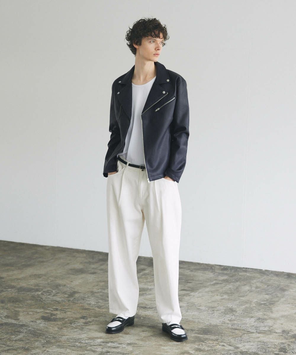 すっきりとしたシルエットがクリーンな印象のライダースジャケット。上品な雰囲気のシングルタイプと、コーディネートのアクセントになるダブルタイプの2パターン。