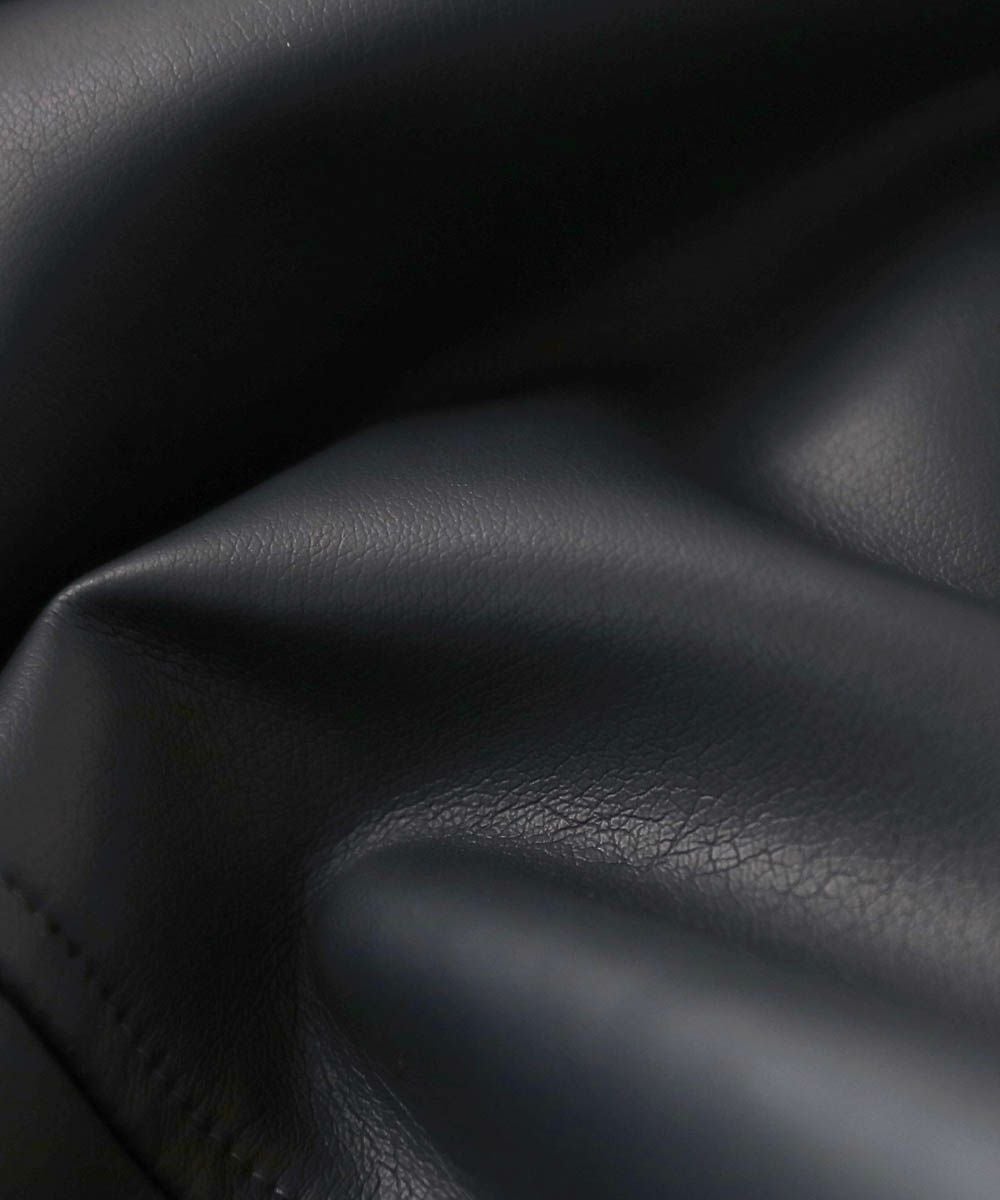 細やかなシボ感のあるPUレザー素材を使用しています。雨や汚れに強く入念なお手入れの必要がないので、デイリー使いがしやすく着こなしの幅を広げてくれます。