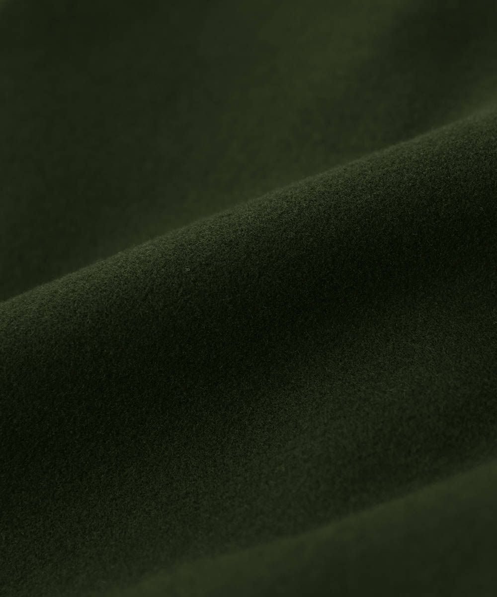 ポリエステルメルトン素材を使用しています。表面にやや起毛感があり、見た目にも暖かな秋冬素材です。裏地はツルっとした生地でニットなども引っ掛かりがなく楽に脱ぎ着できます。