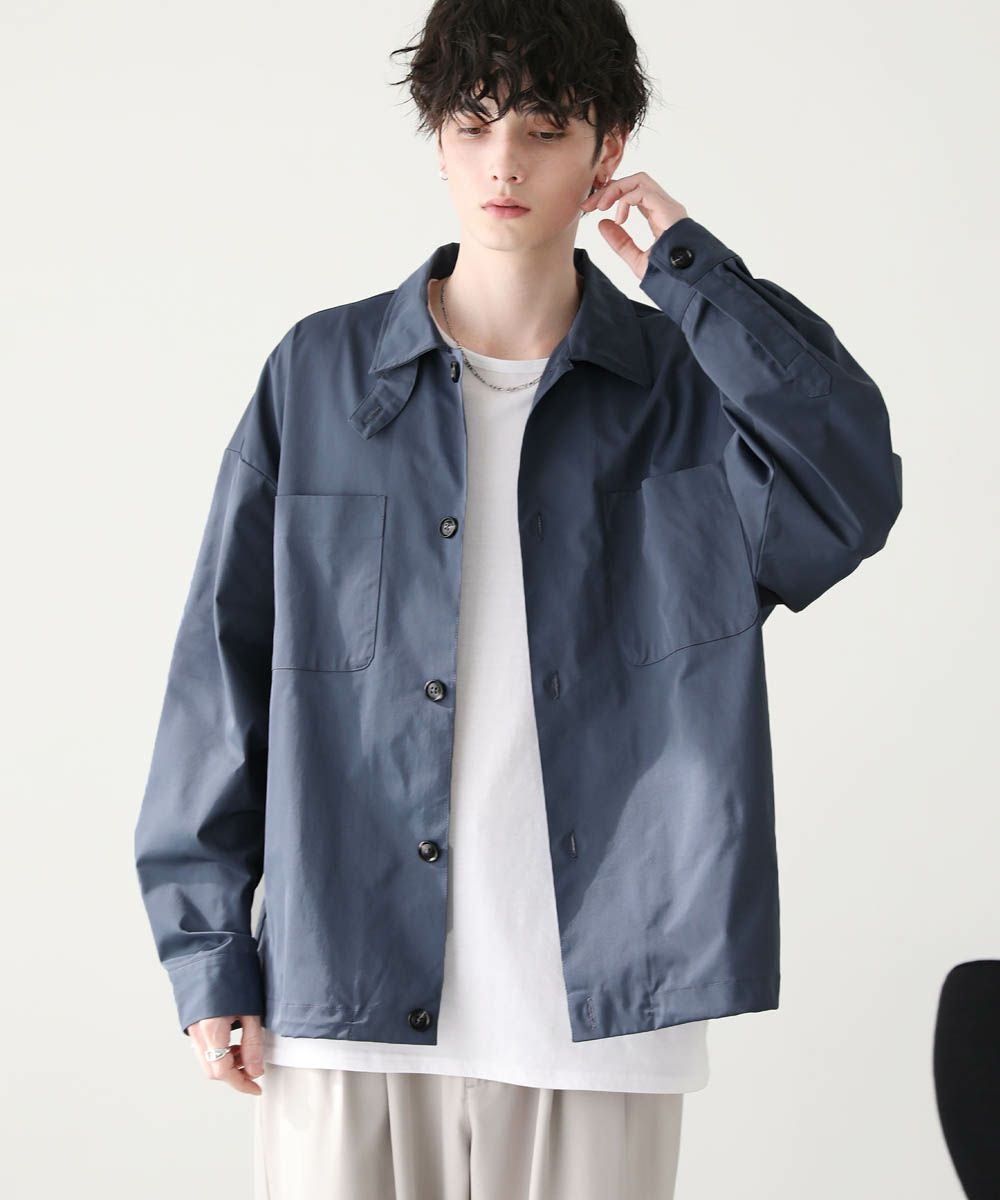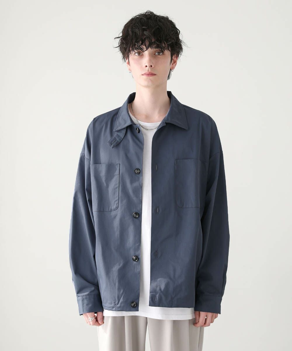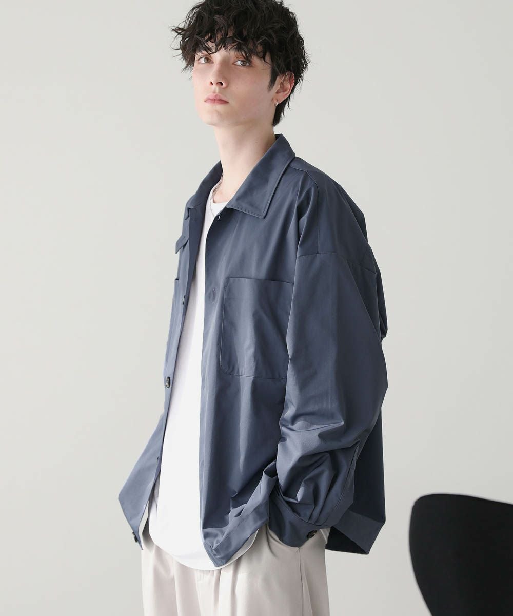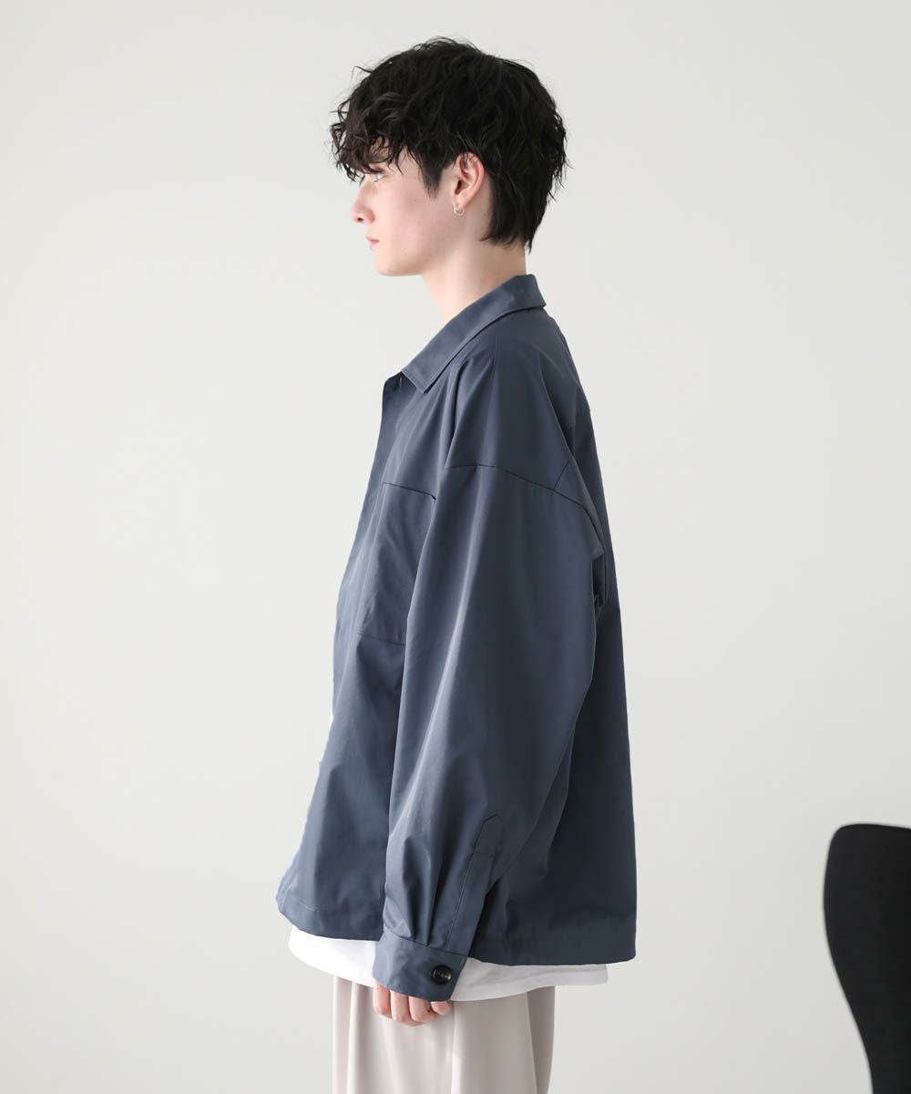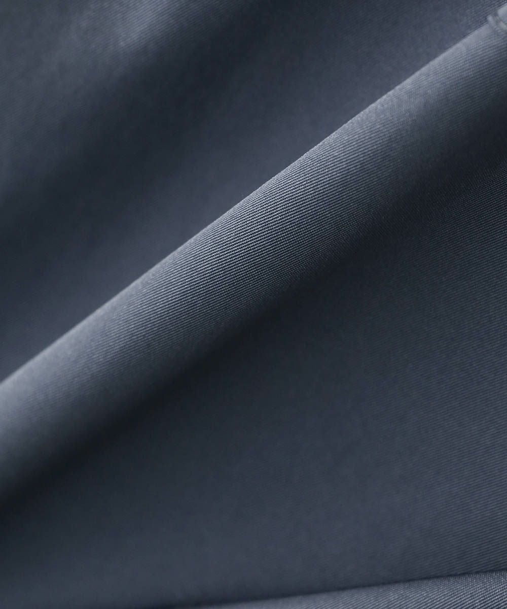ハリのあるポリエステル生地を使用しています。シャツ生地を使用しているので、通常のジャケットよりも軽やかな着心地です。マットな質感が大人っぽく、またさらっとした肌触りで快適に着用できます。
