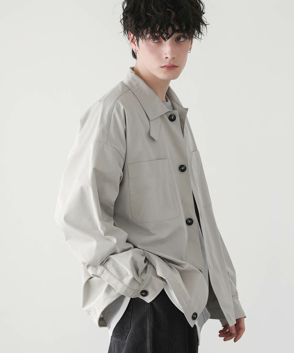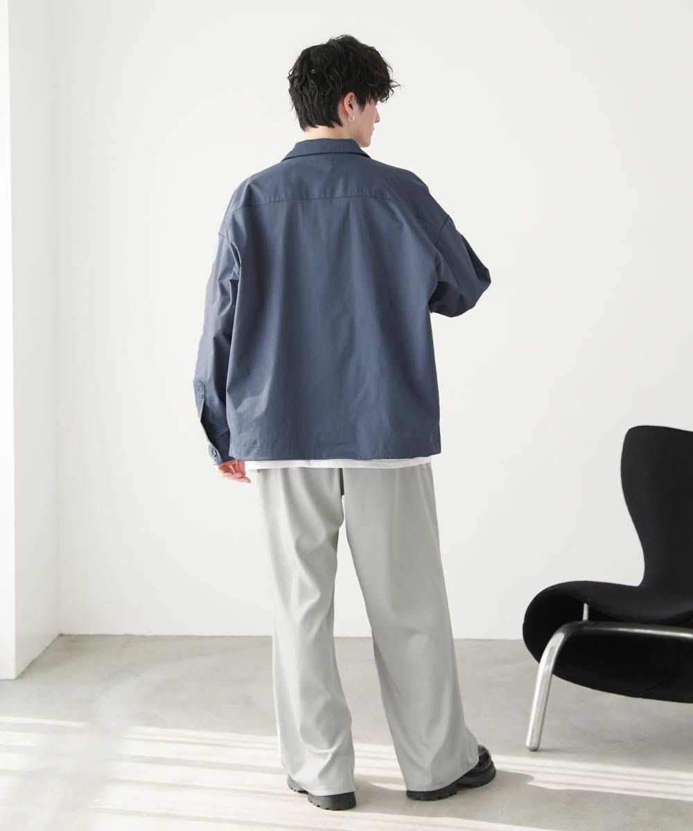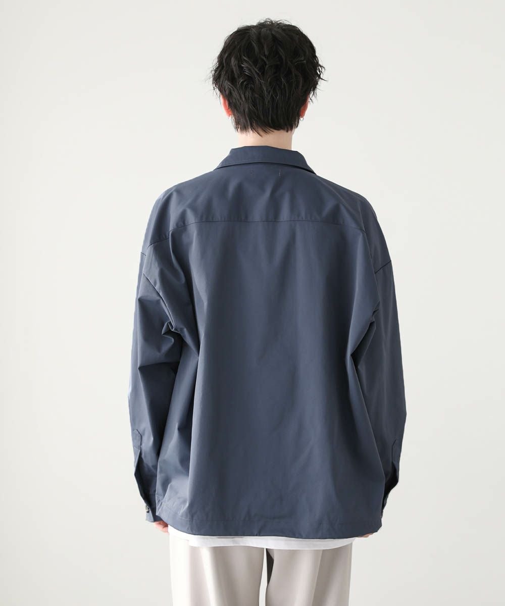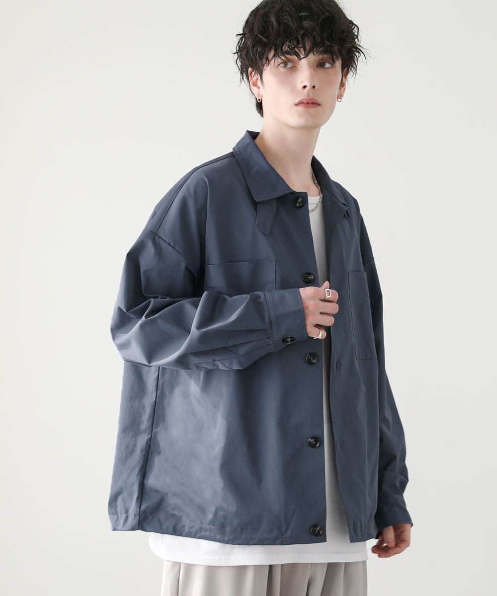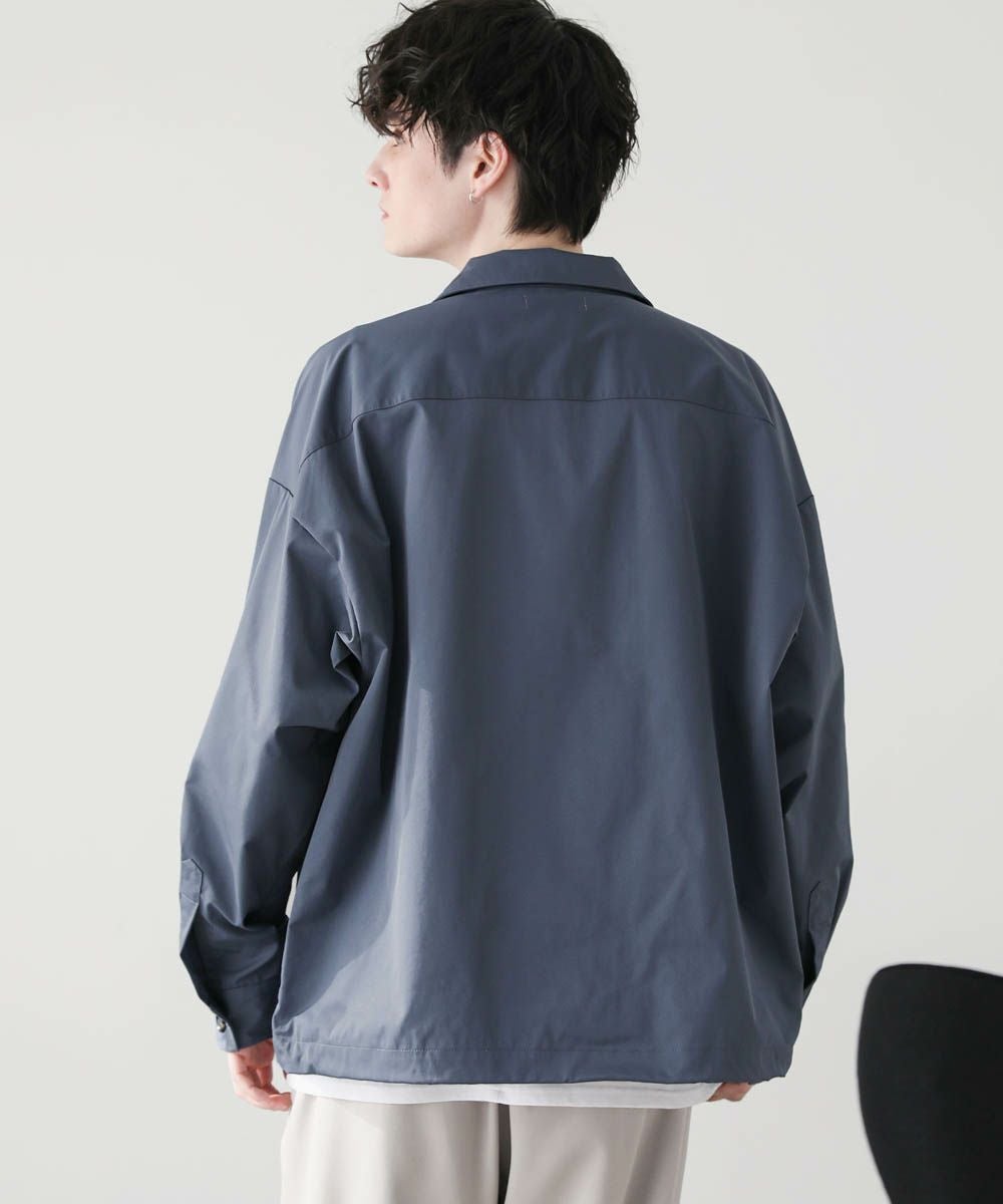 ハリのあるポリエステル生地を使用しています。シャツ生地を使用しているので、通常のジャケットよりも軽やかな着心地です。マットな質感が大人っぽく、またさらっとした肌触りで快適に着用できます。