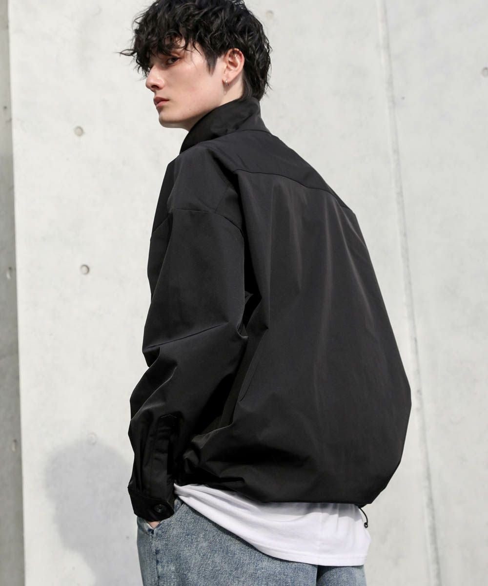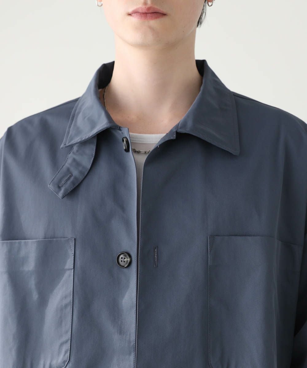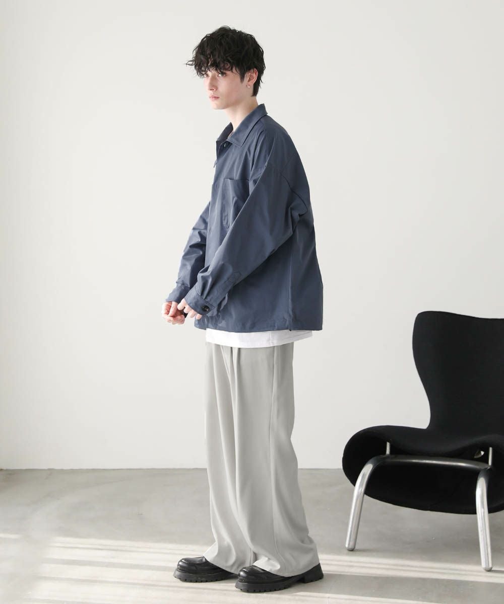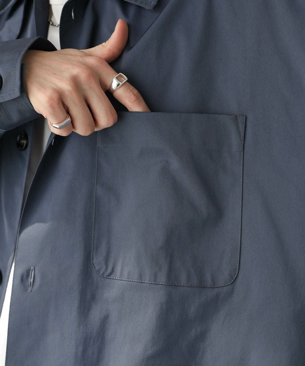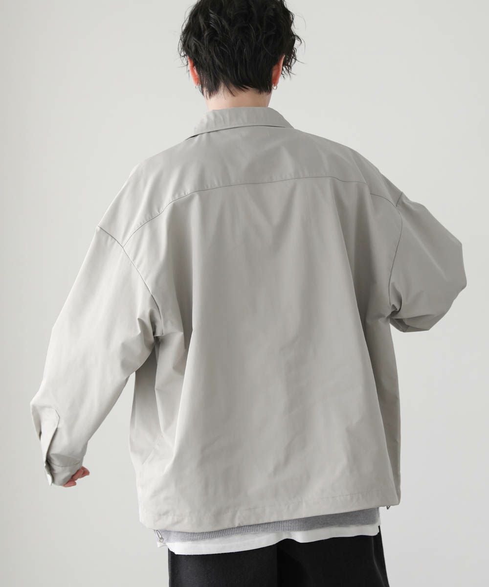 ハリのあるポリエステル生地を使用しています。シャツ生地を使用しているので、通常のジャケットよりも軽やかな着心地です。マットな質感が大人っぽく、またさらっとした肌触りで快適に着用できます。