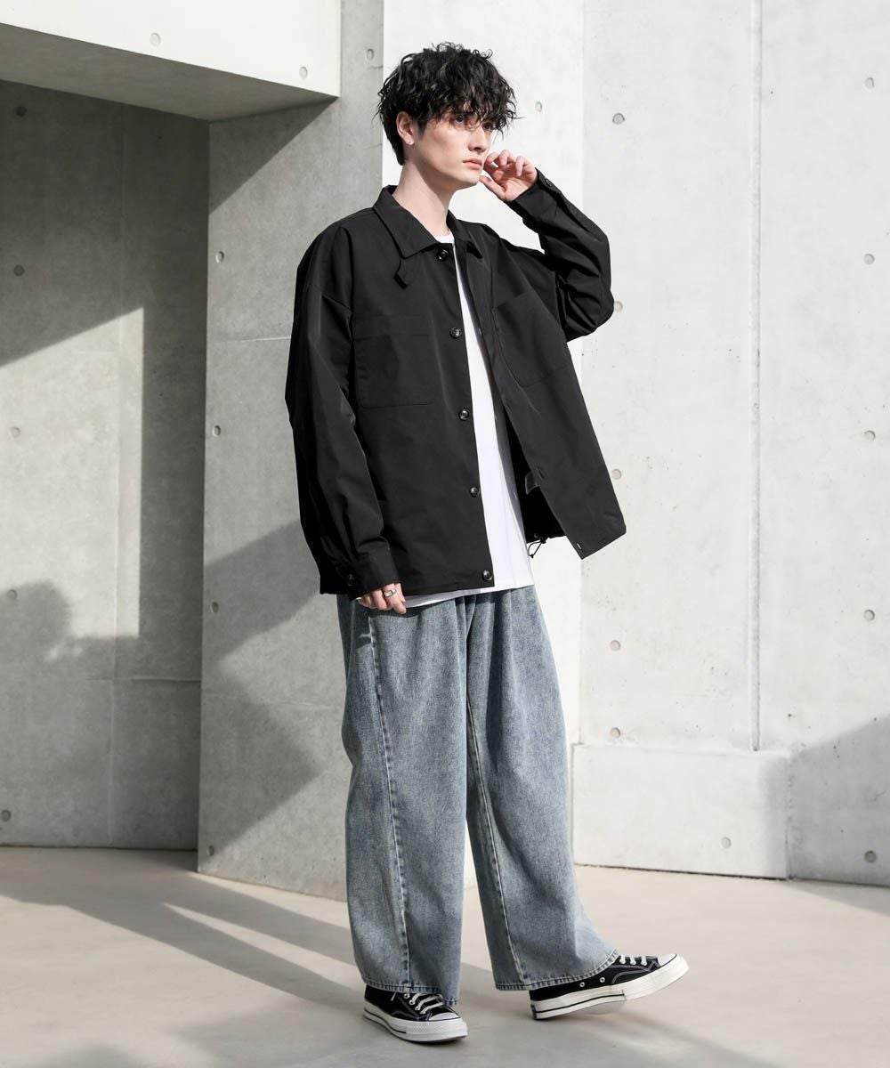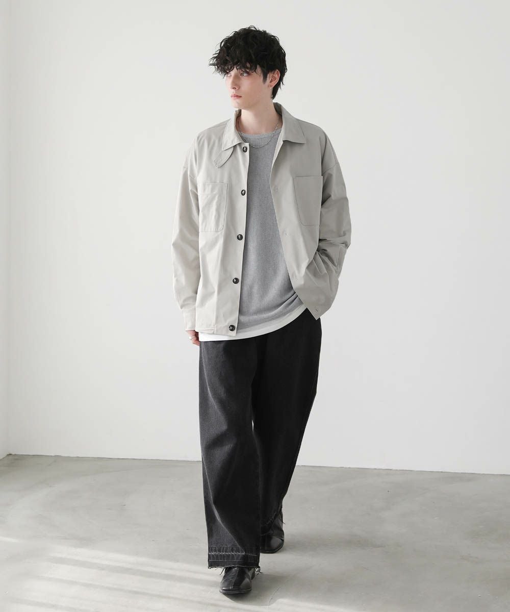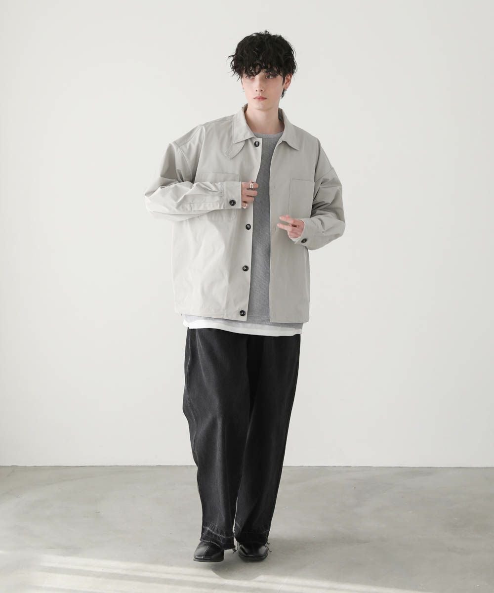 フロントを開けて、また閉めてスタンドネックとして2wayのスタイルを楽しめます。インナーには、オーバーサイズのカットソーや薄手のニットなどがおすすめ。ゆったりとした作りのため、オーバーサイズのインナーもごわつくことなく着用できます。