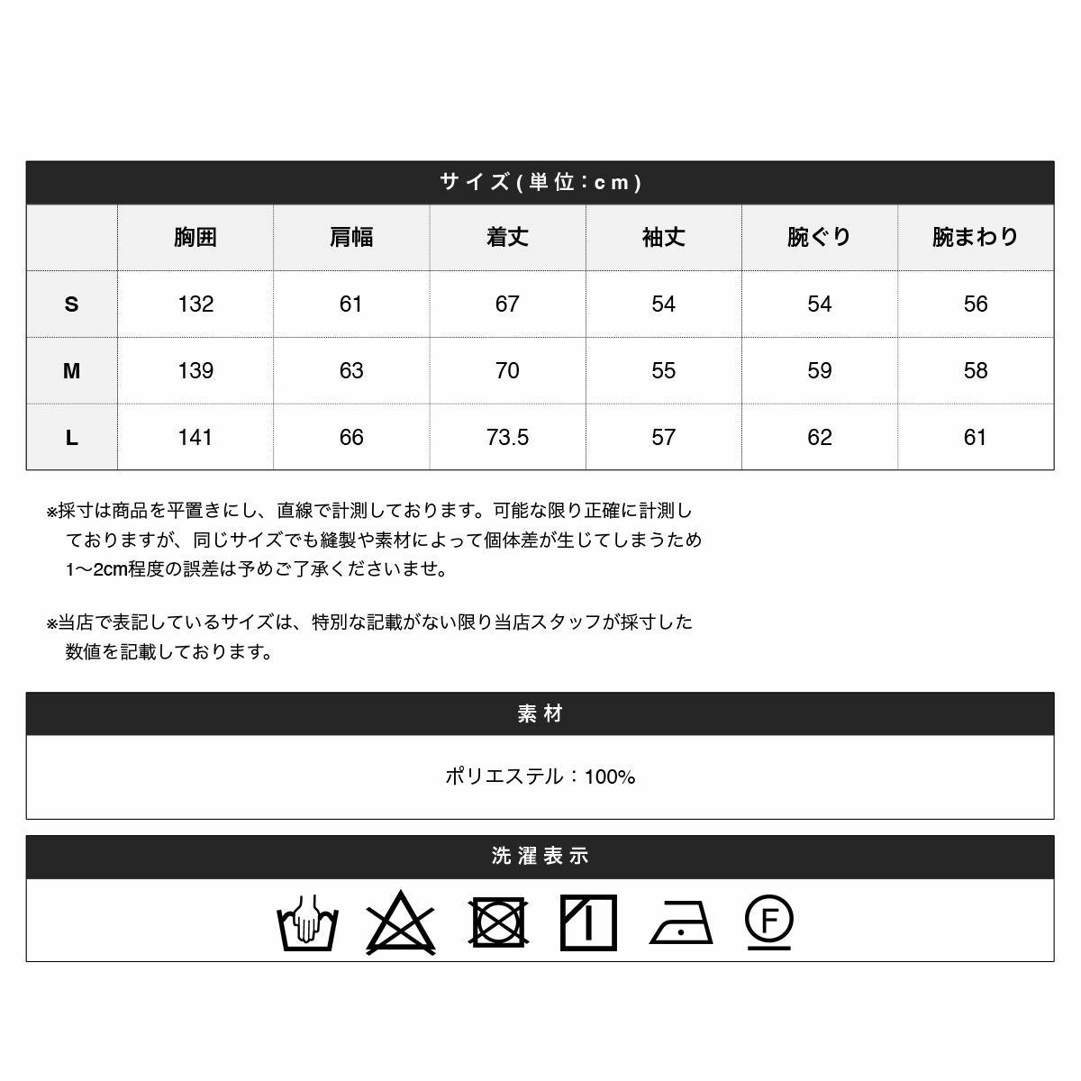 ※商品特性、縫製や素材により同サイズでも、若干の誤差が生じてしまうことを予めご了承ください。
