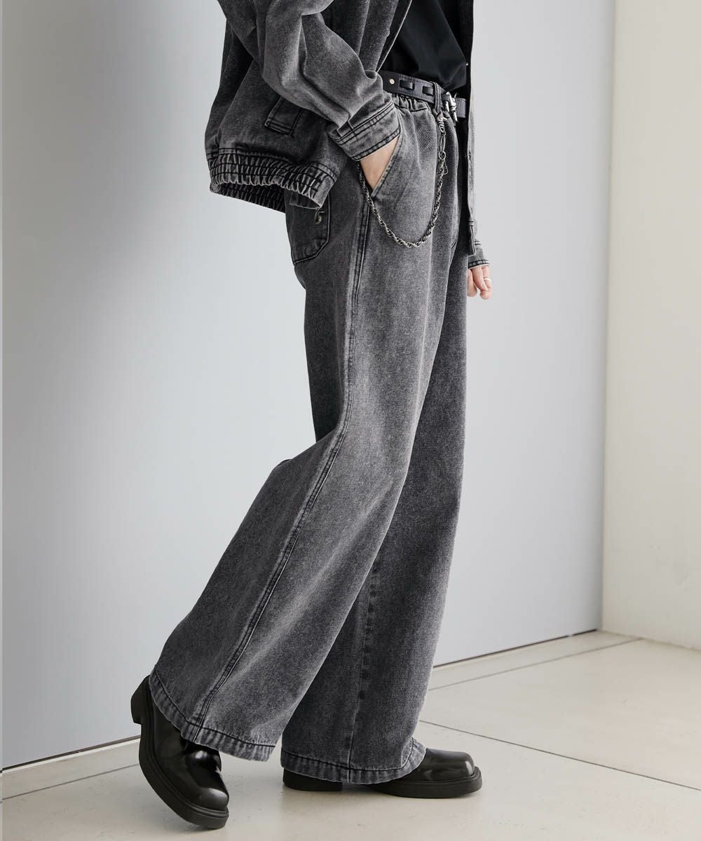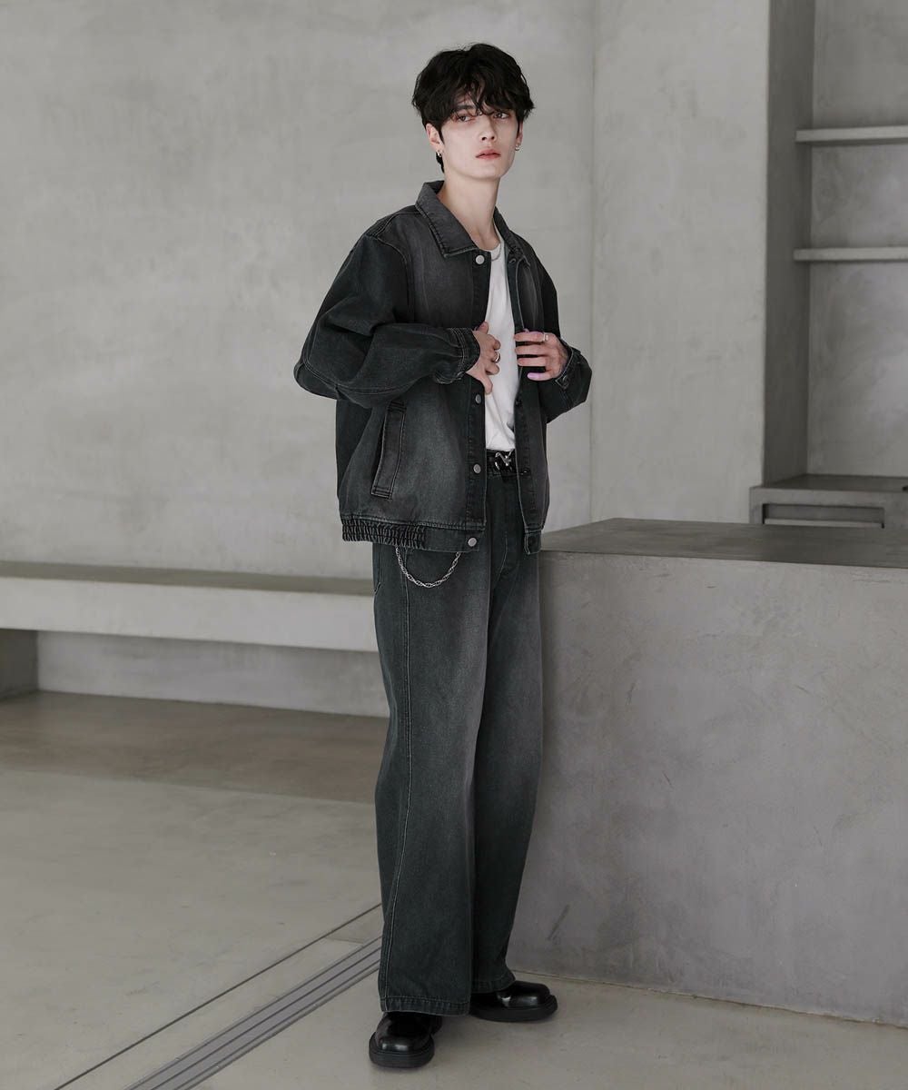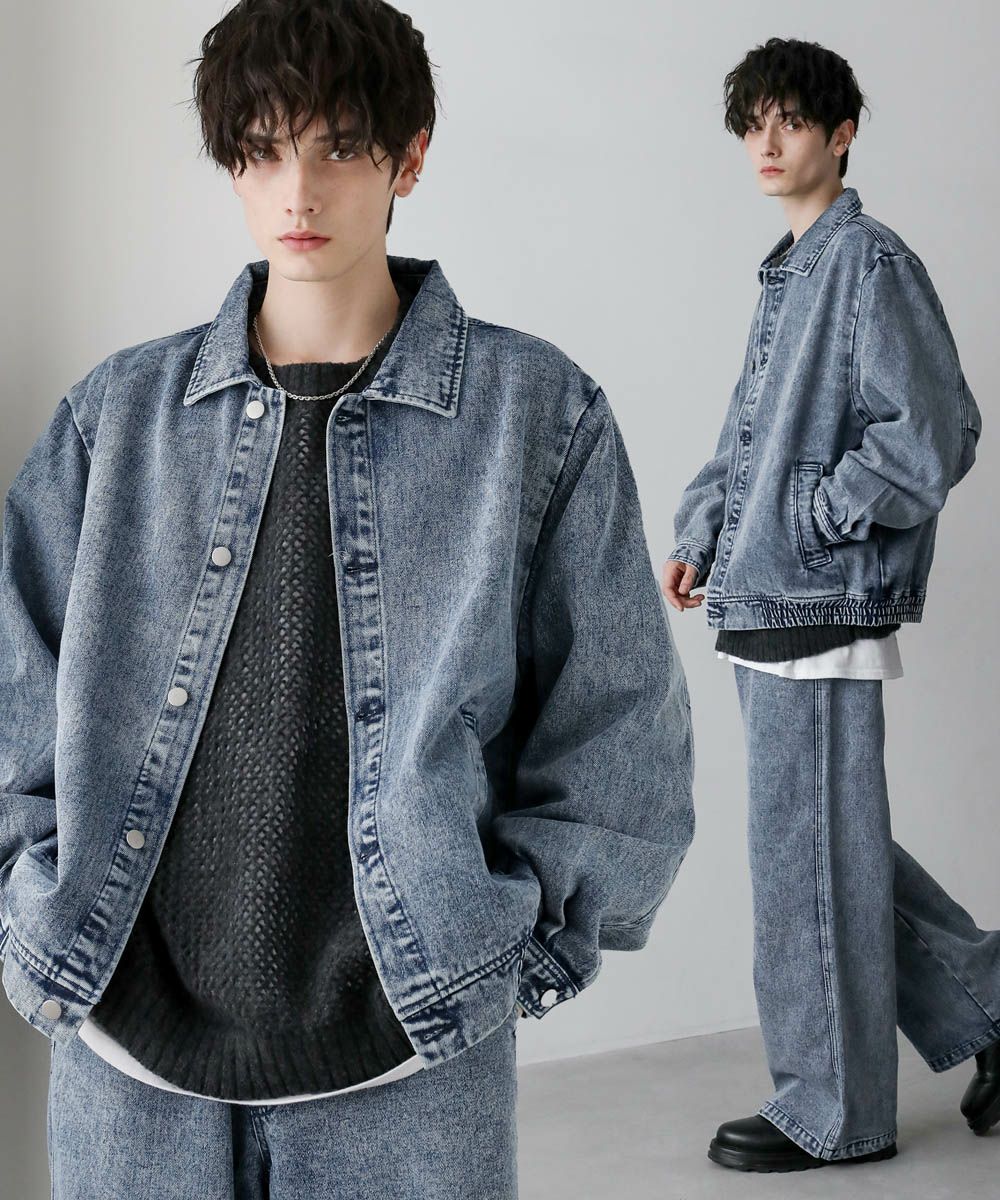 【セットアップ 2点セット】ショートデニムブルゾン+ワイドバギーオーバーパンツ