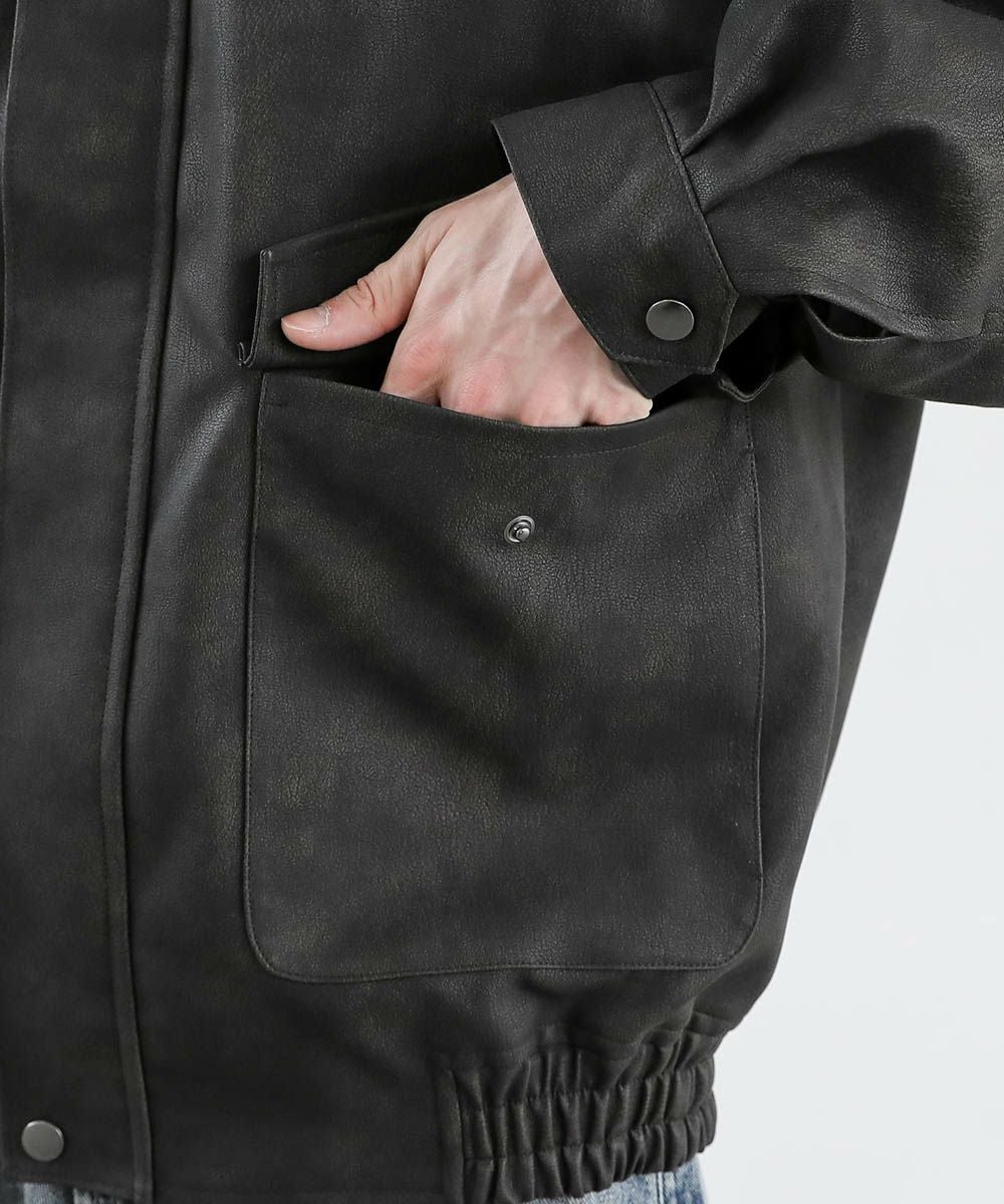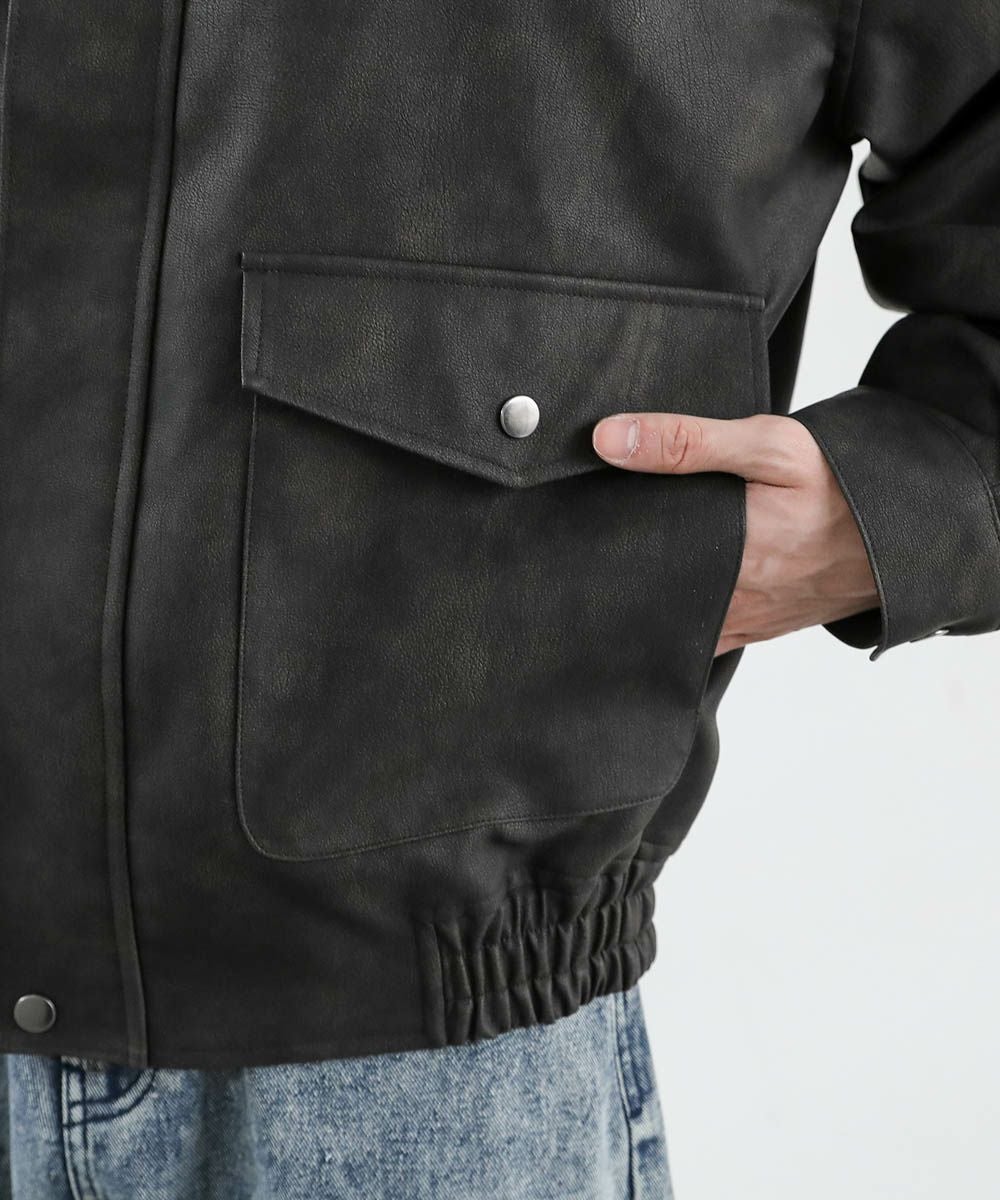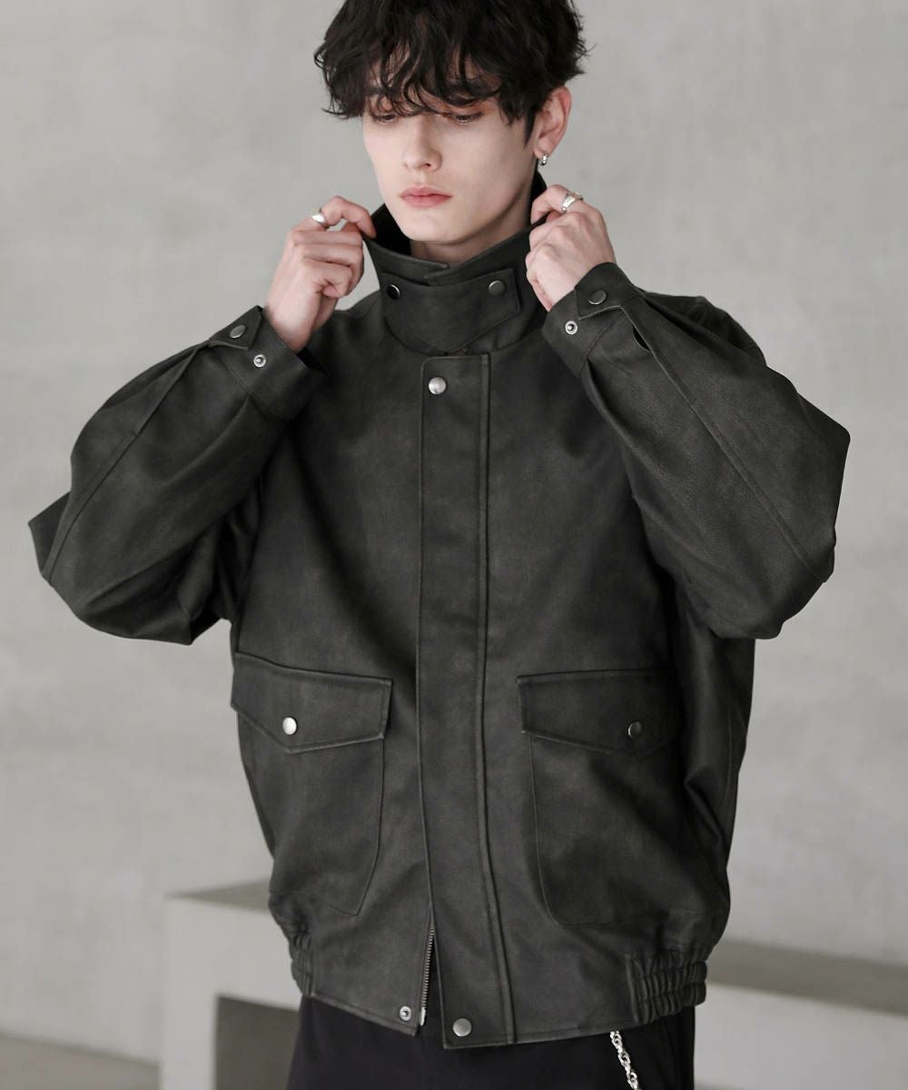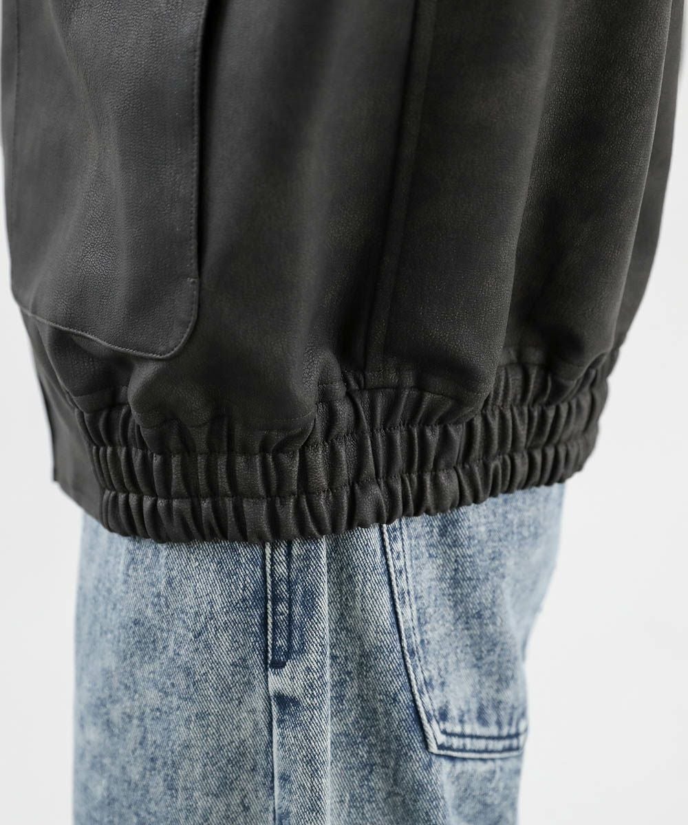 ヴィンテージ加工 PUレザー A-2ショートブルゾン