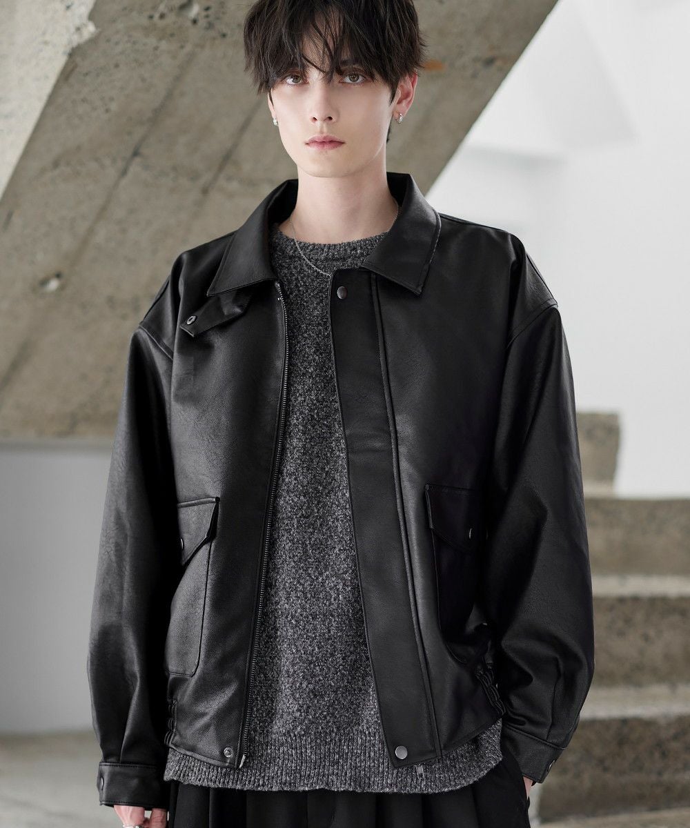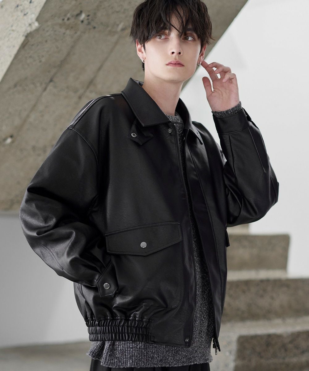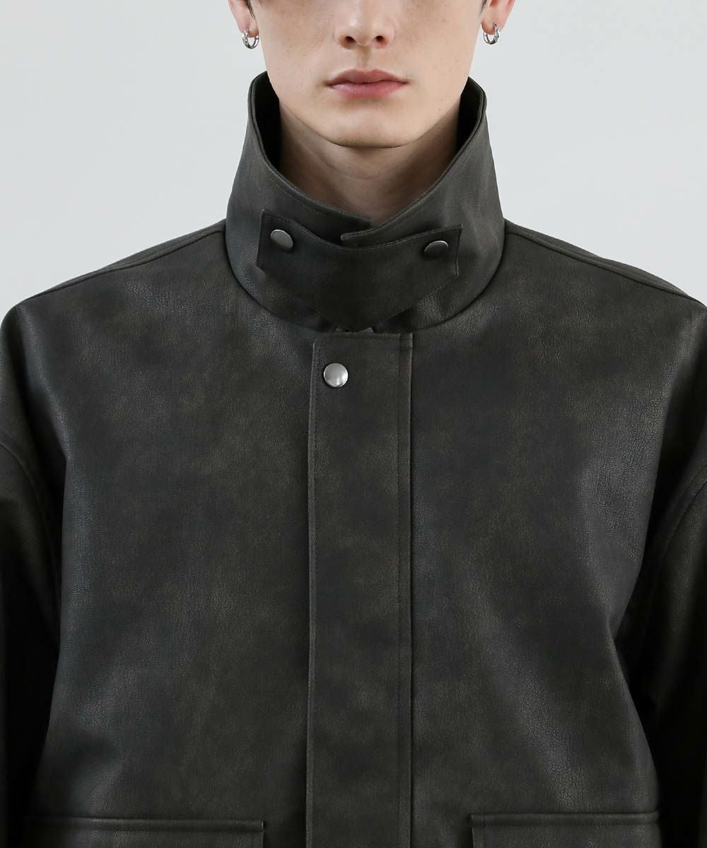 ヴィンテージ加工 PUレザー A-2ショートブルゾン