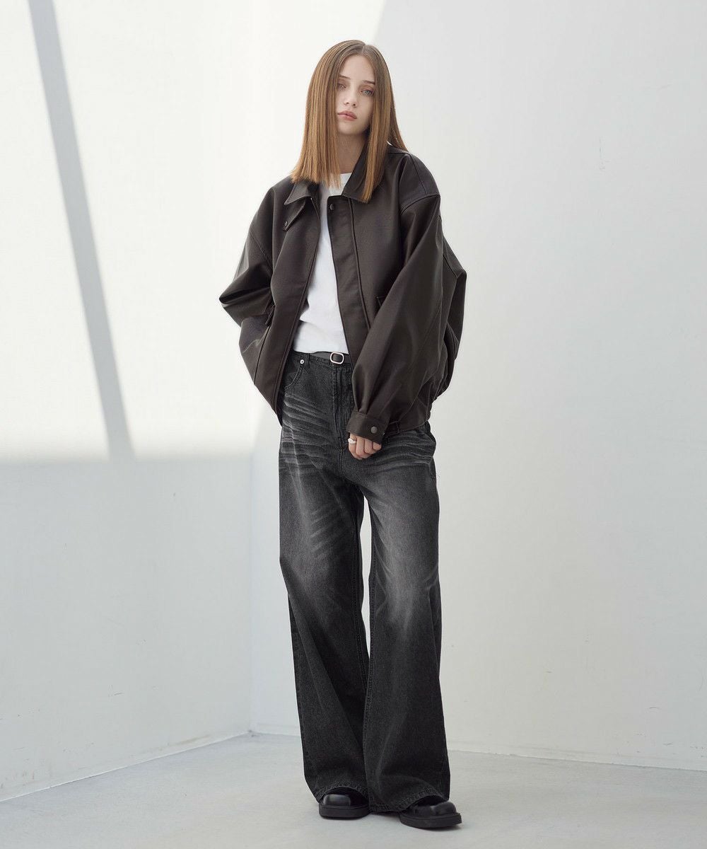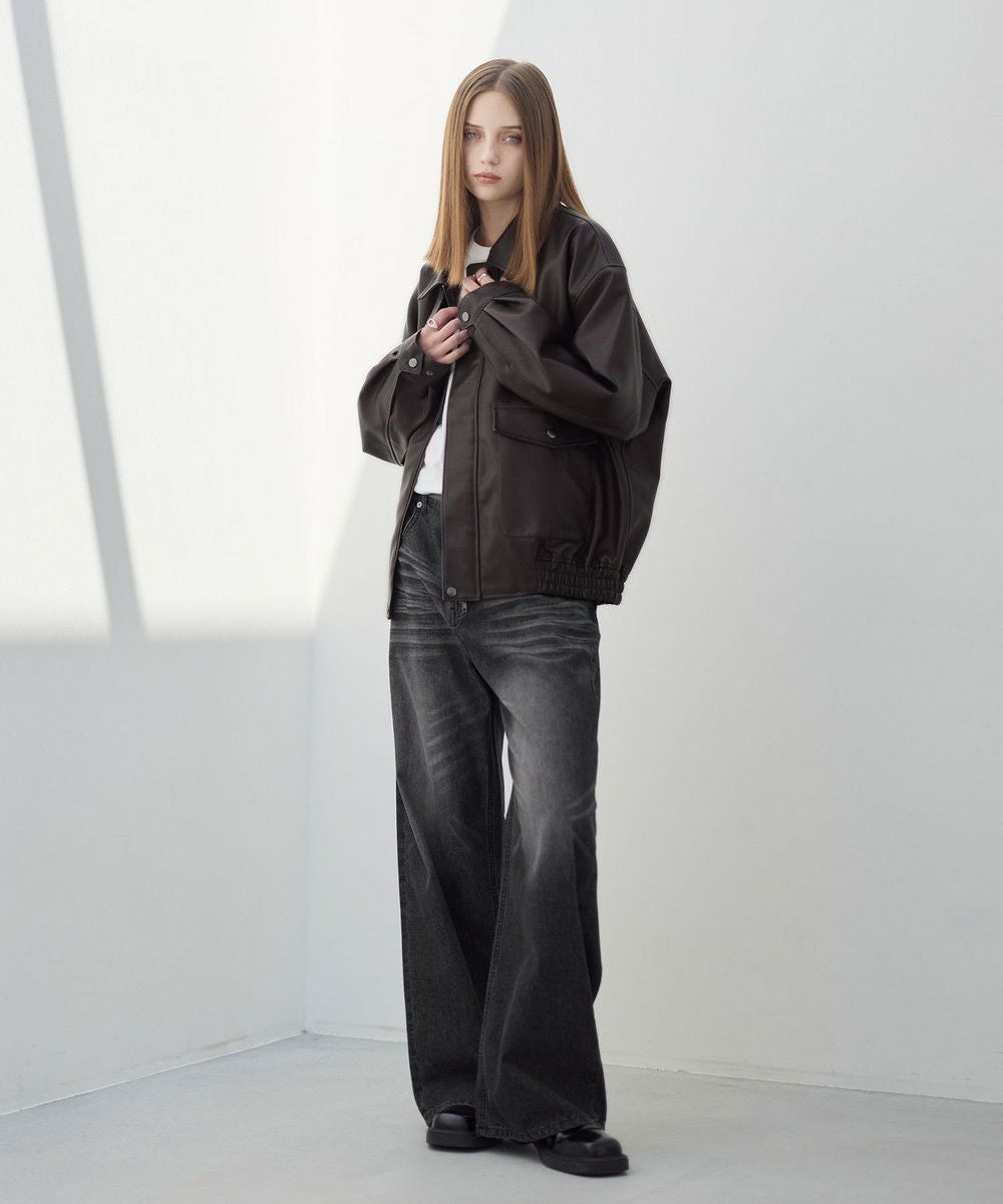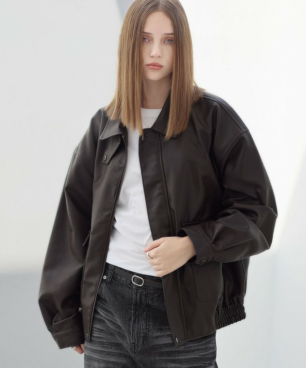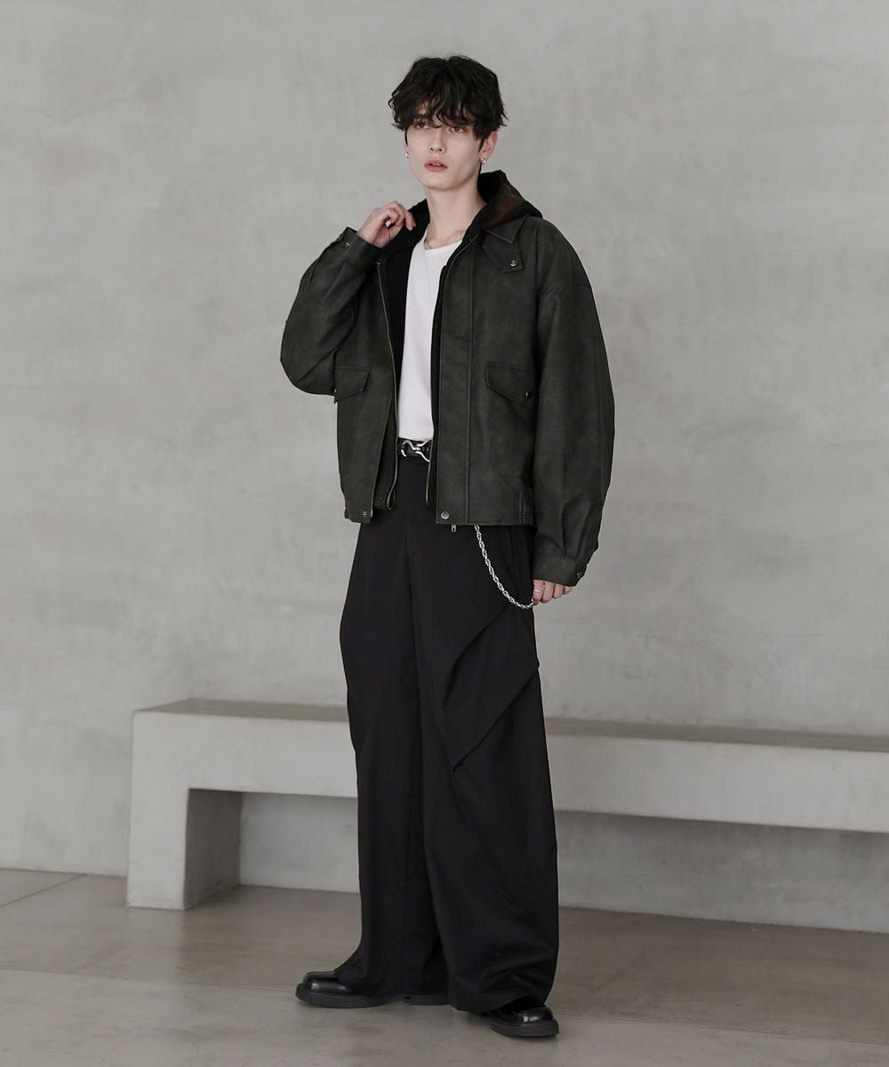ヴィンテージ加工 PUレザー A-2ショートブルゾン