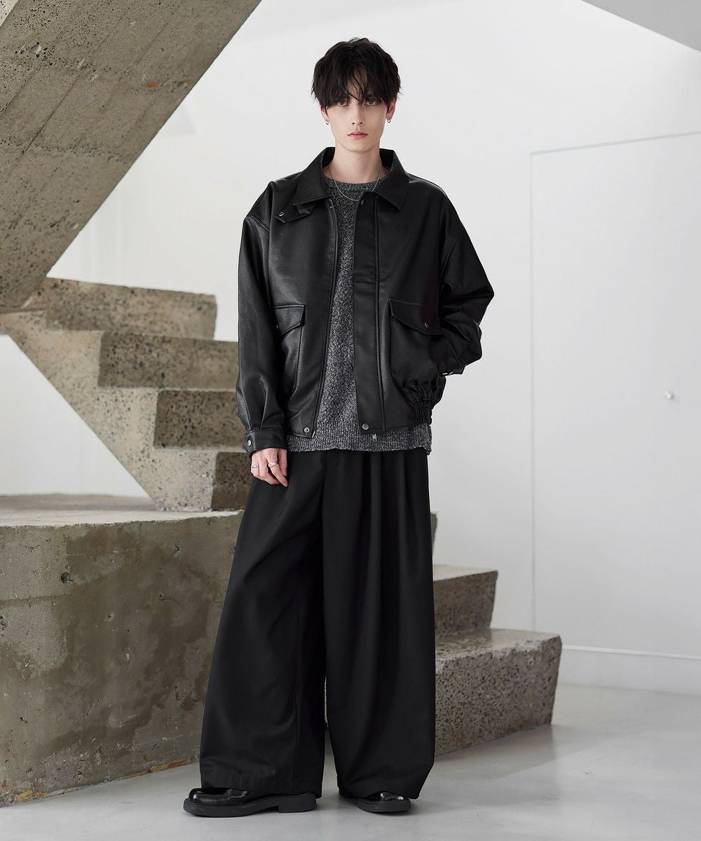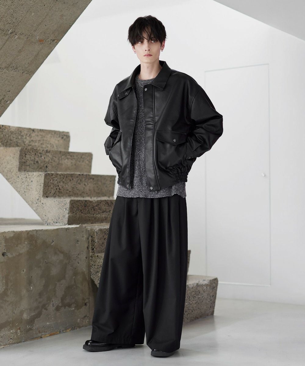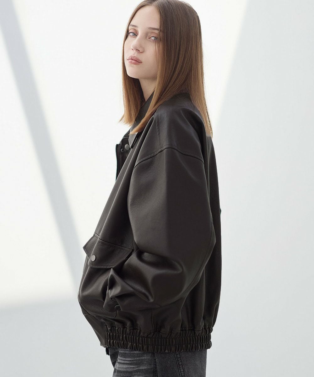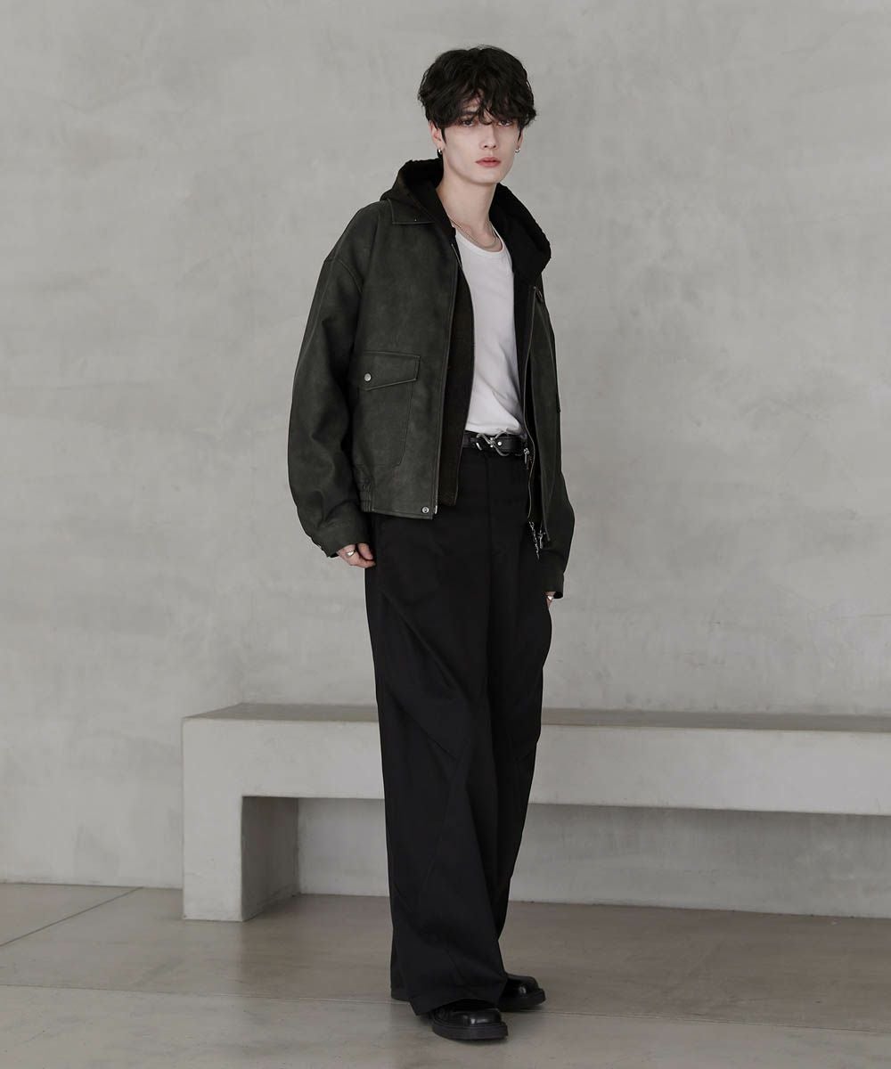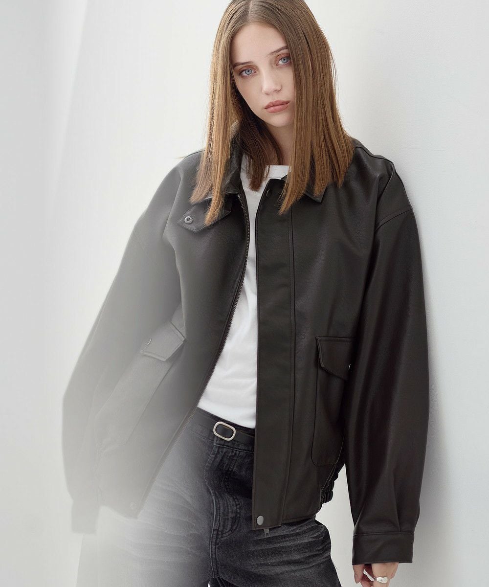 米陸軍航空隊のシンボルであるフライトジャケット、A-2をトレンドに落とし込んだ1着。リアルな質感にこだわり、本革のようなシボ感とマットな質感が魅力です。ワイドな身幅にドロップショルダー、着丈はショート丈にすることで、着回しやすくスタイルアップが叶う1着。フロントの大きめなフラップポケットやチンストラップなど、ミリタリーのディティールがアクセントになっています。チンストラップを留めて、スタンドネックとしても着用が可能。また、フロントはジップとスナップボタンの比翼仕立てになっており、ジップを閉めると隙間風の侵入を防いで防寒性を高めてくれます。