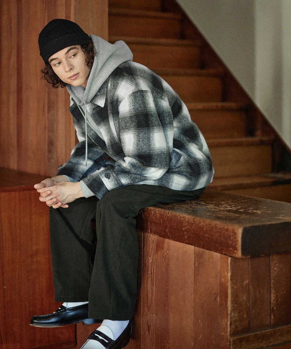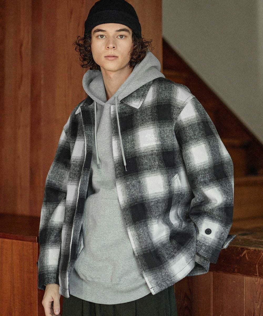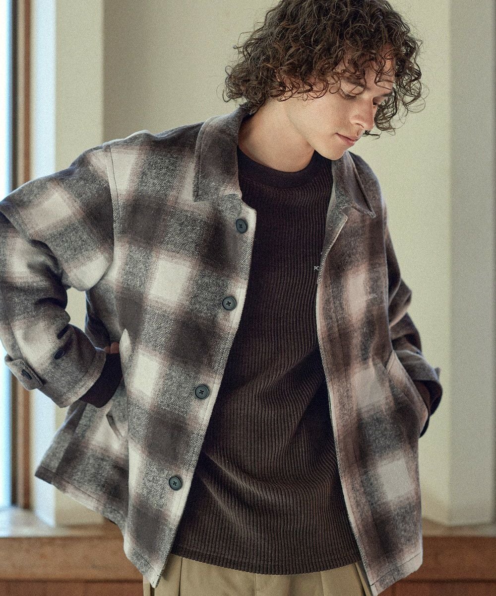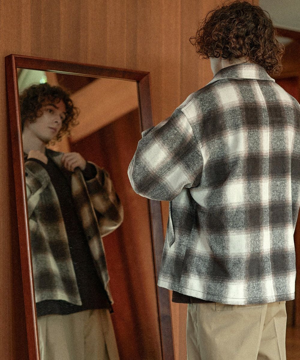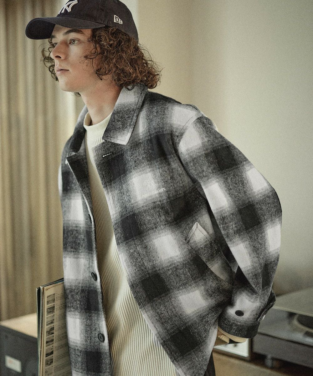 こなれたカジュアルスタイルを演出するシャギーブルゾン。テキスタイルには濃淡が美しいオンブレチェックを採用し、ウォーム感のある秋冬らしい一着に仕上げました。