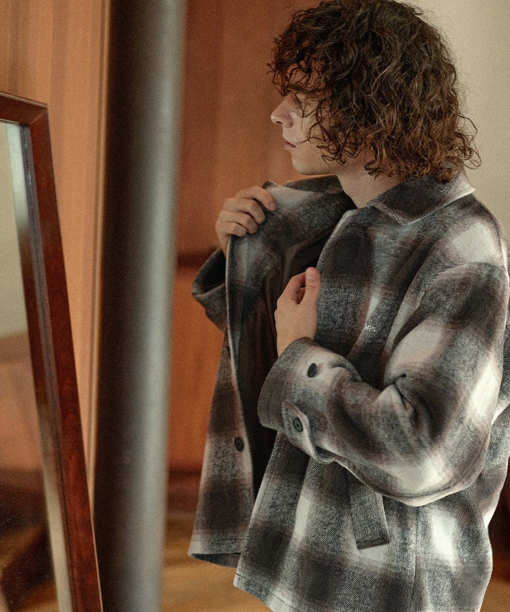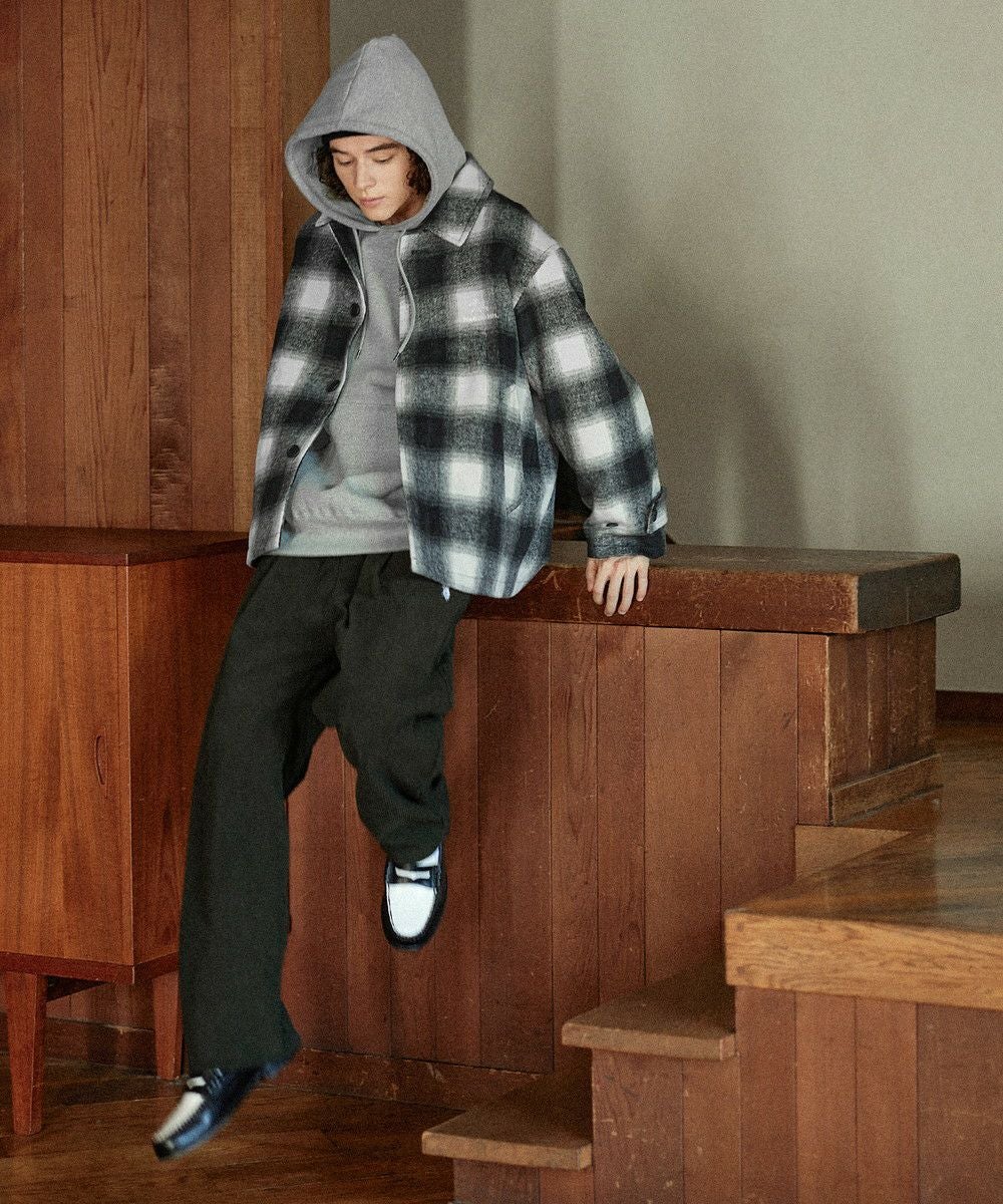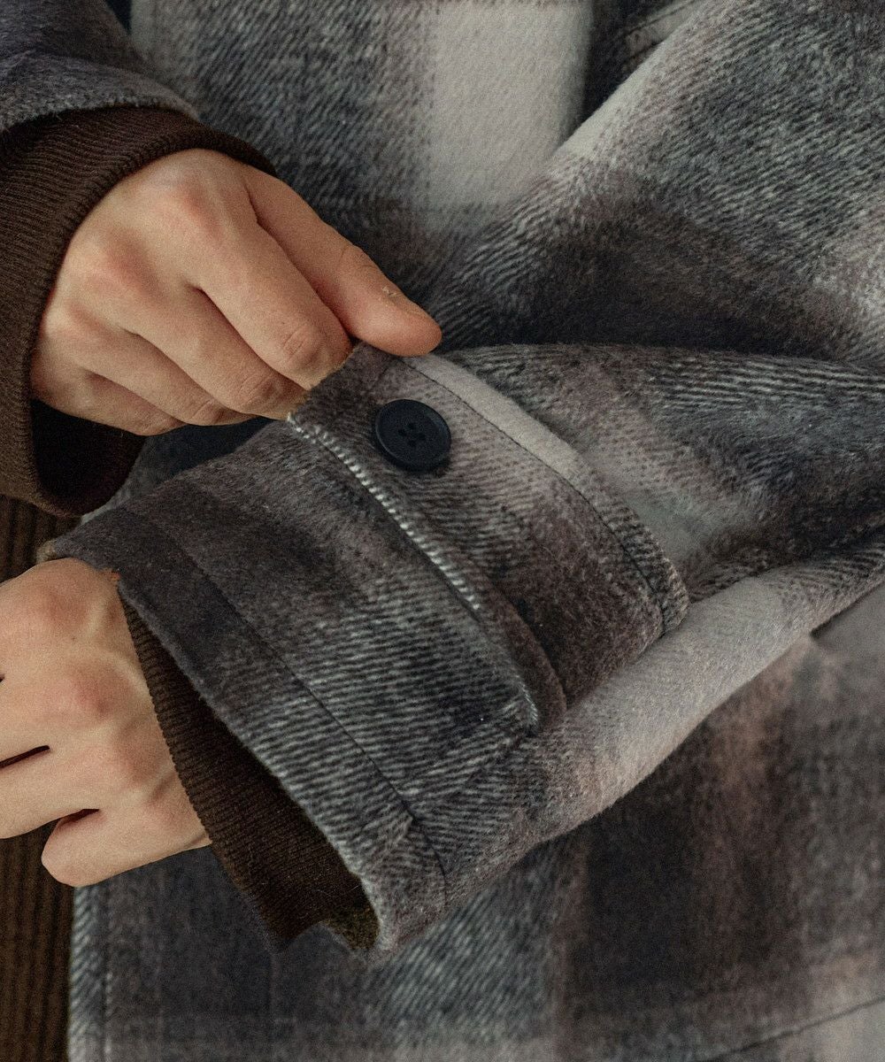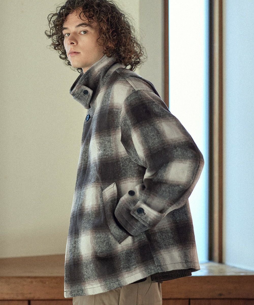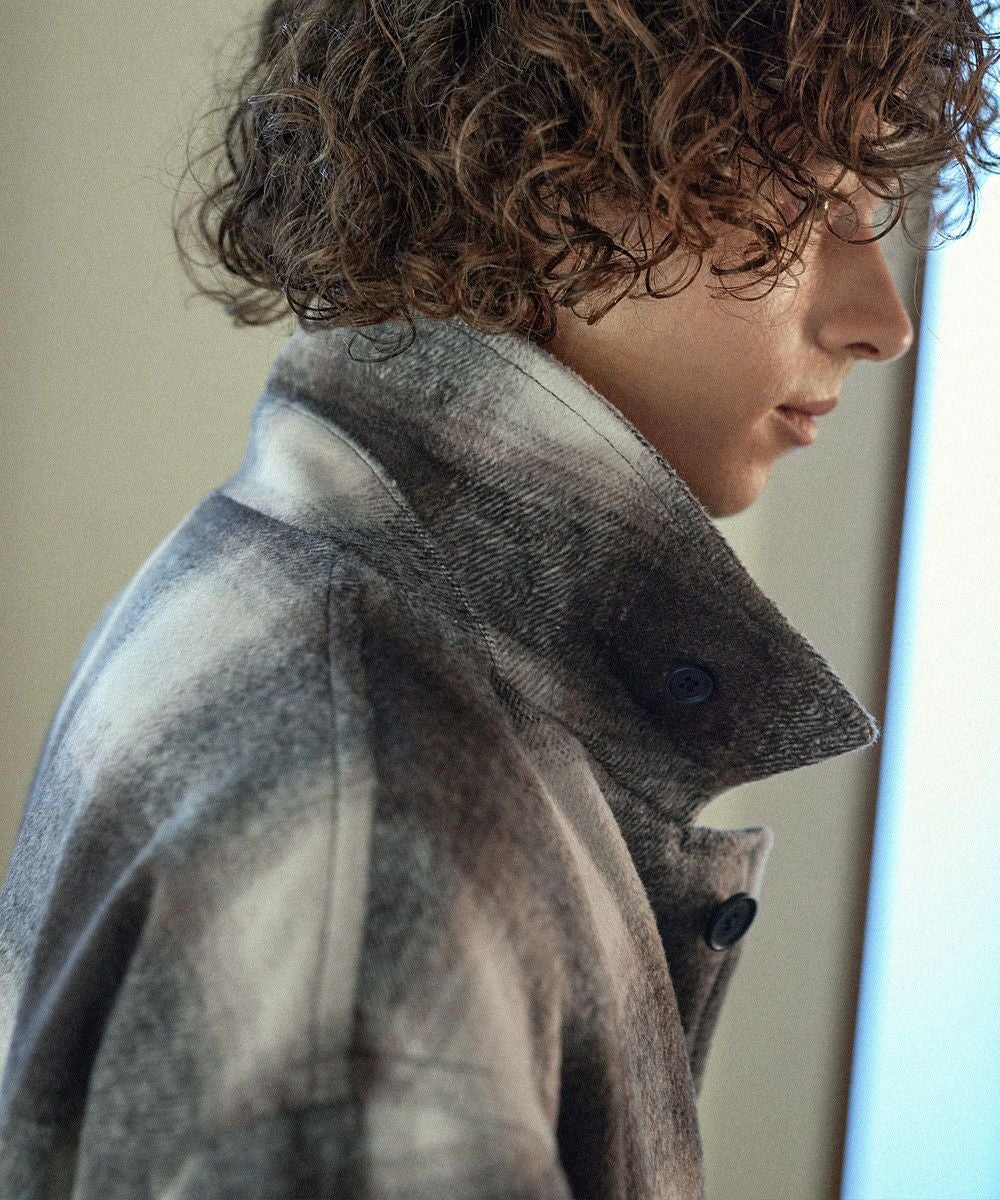 こなれたカジュアルスタイルを演出するシャギーブルゾン。テキスタイルには濃淡が美しいオンブレチェックを採用し、ウォーム感のある秋冬らしい一着に仕上げました。