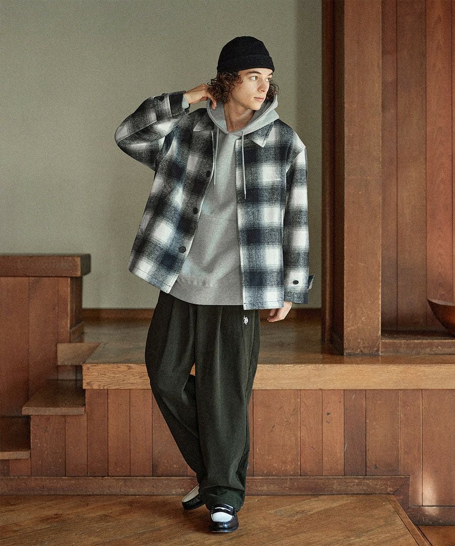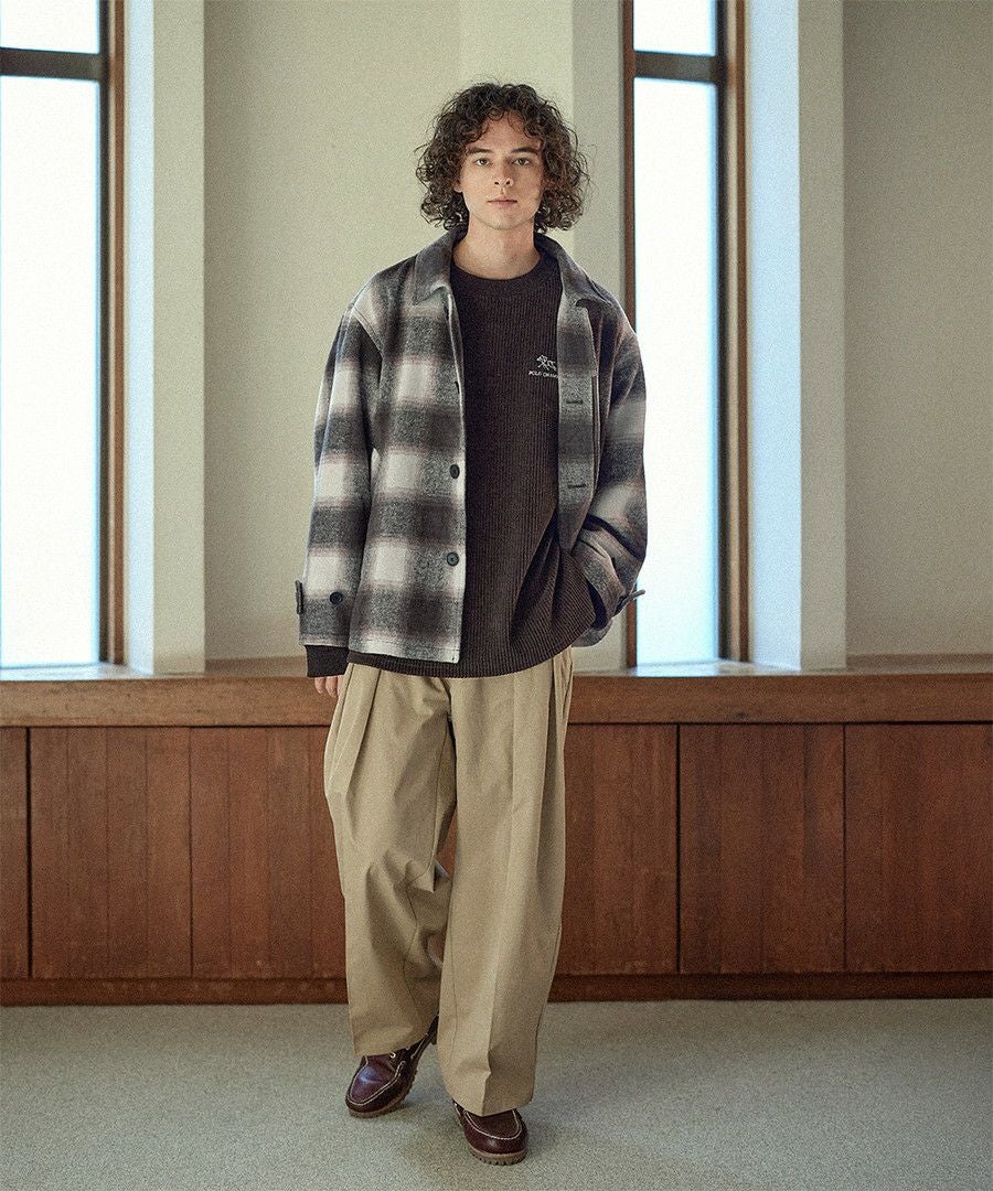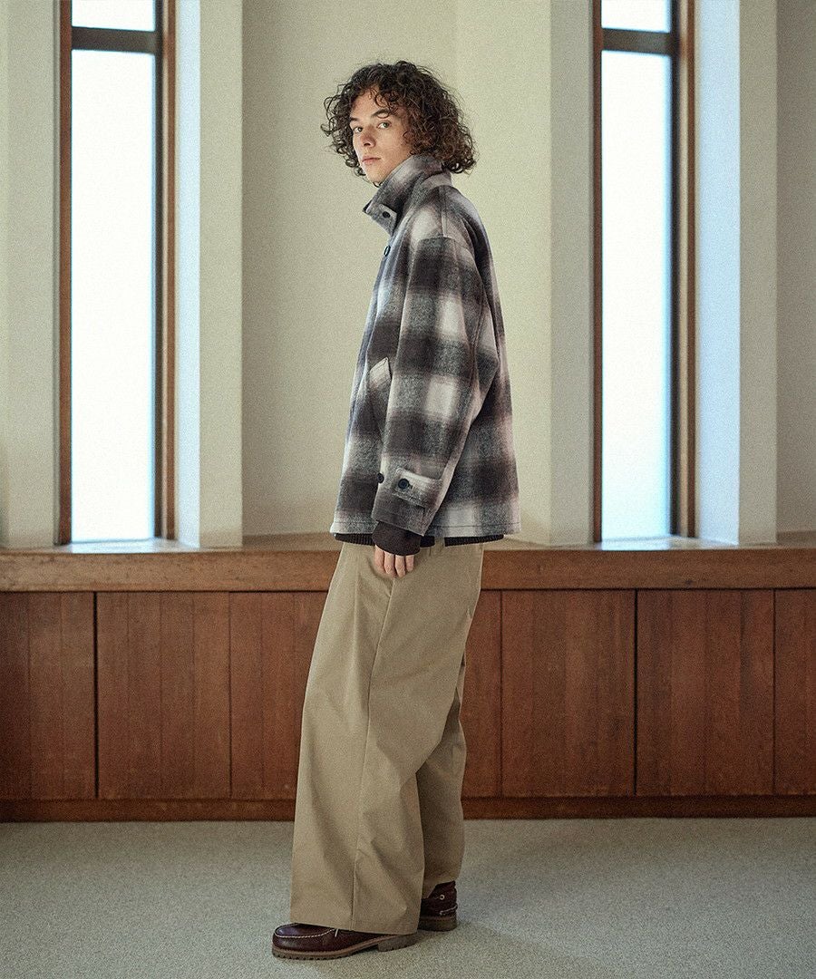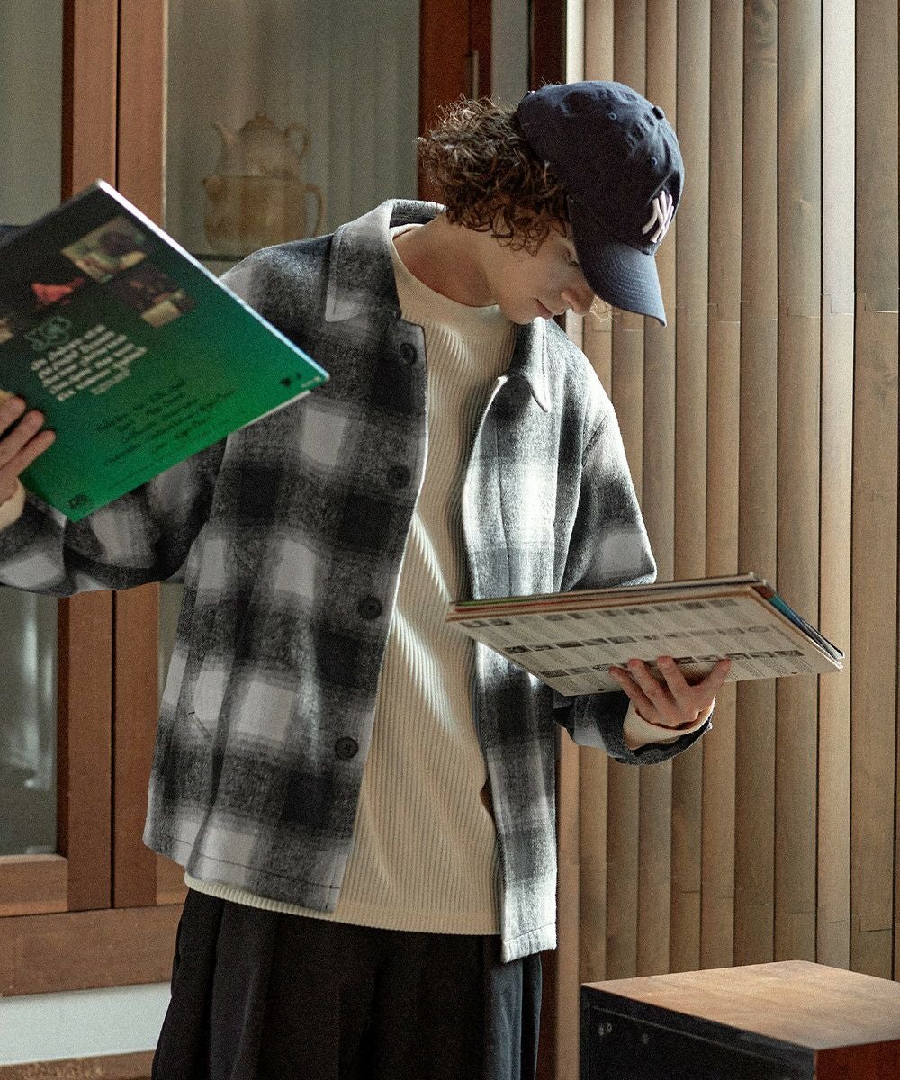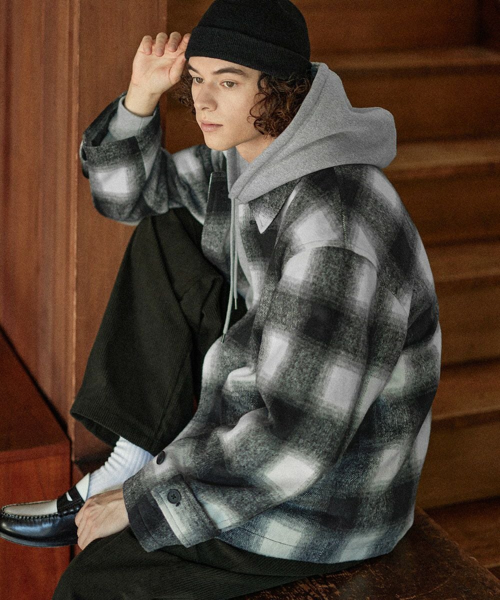 こなれたカジュアルスタイルを演出するシャギーブルゾン。テキスタイルには濃淡が美しいオンブレチェックを採用し、ウォーム感のある秋冬らしい一着に仕上げました。