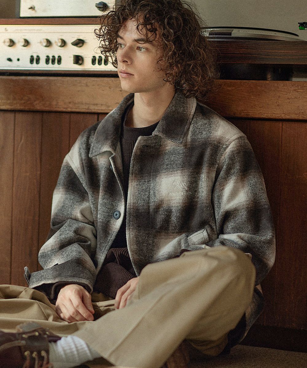 【POLO CHAMPS 別注】シャギーオンブレチェックショートブルゾン