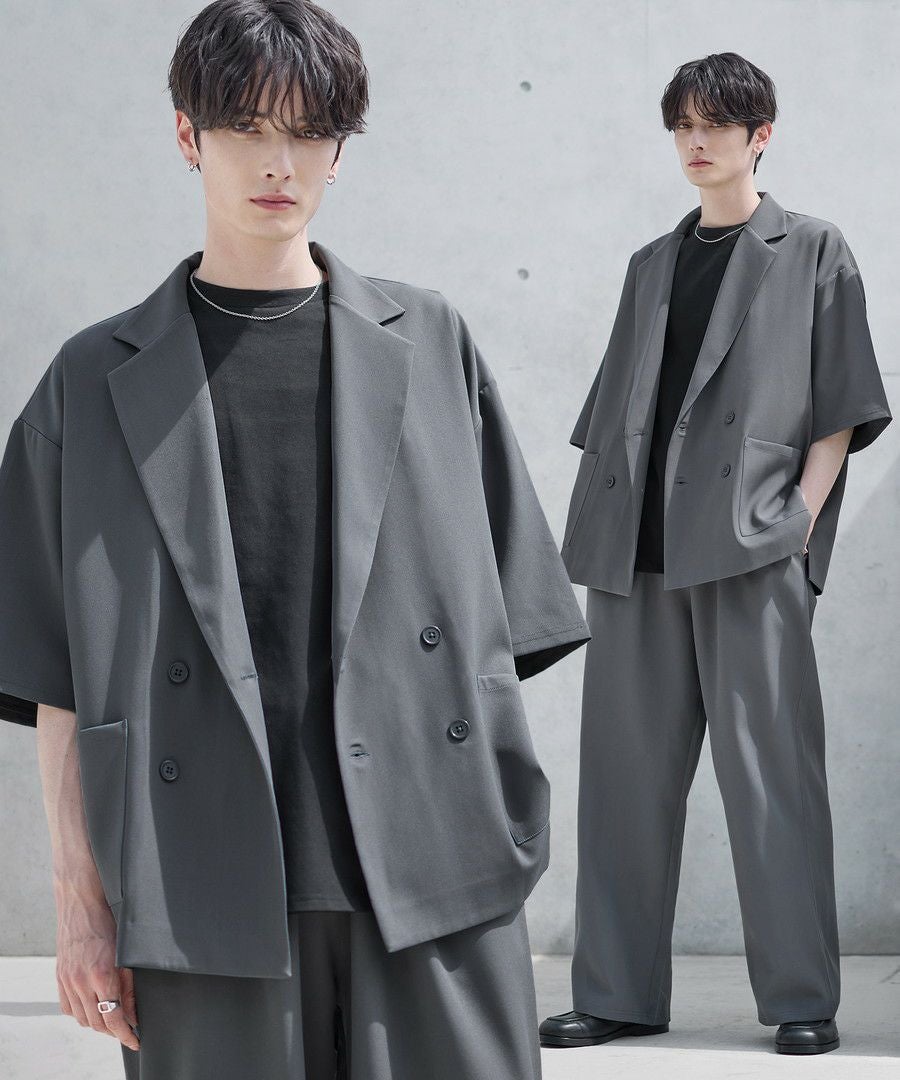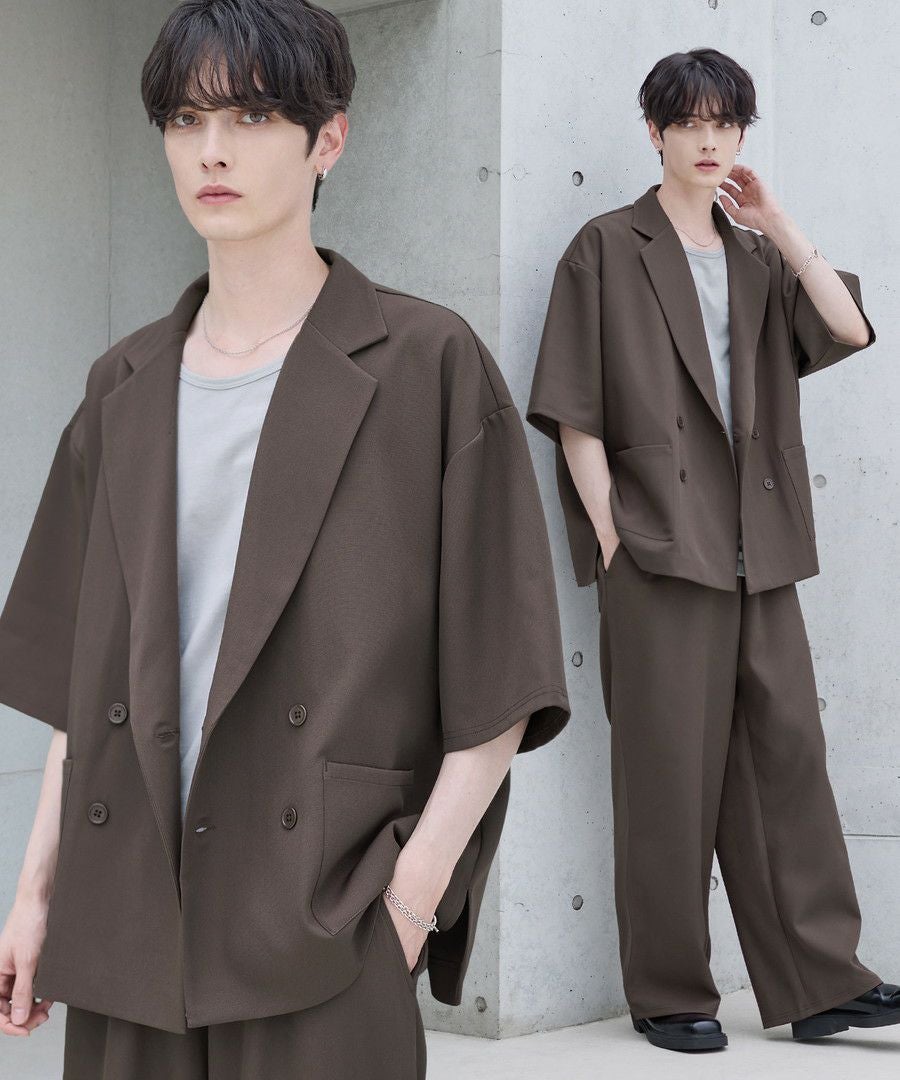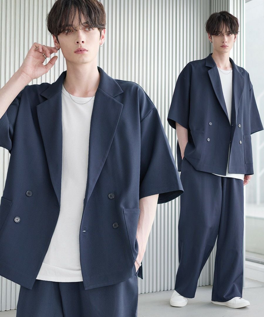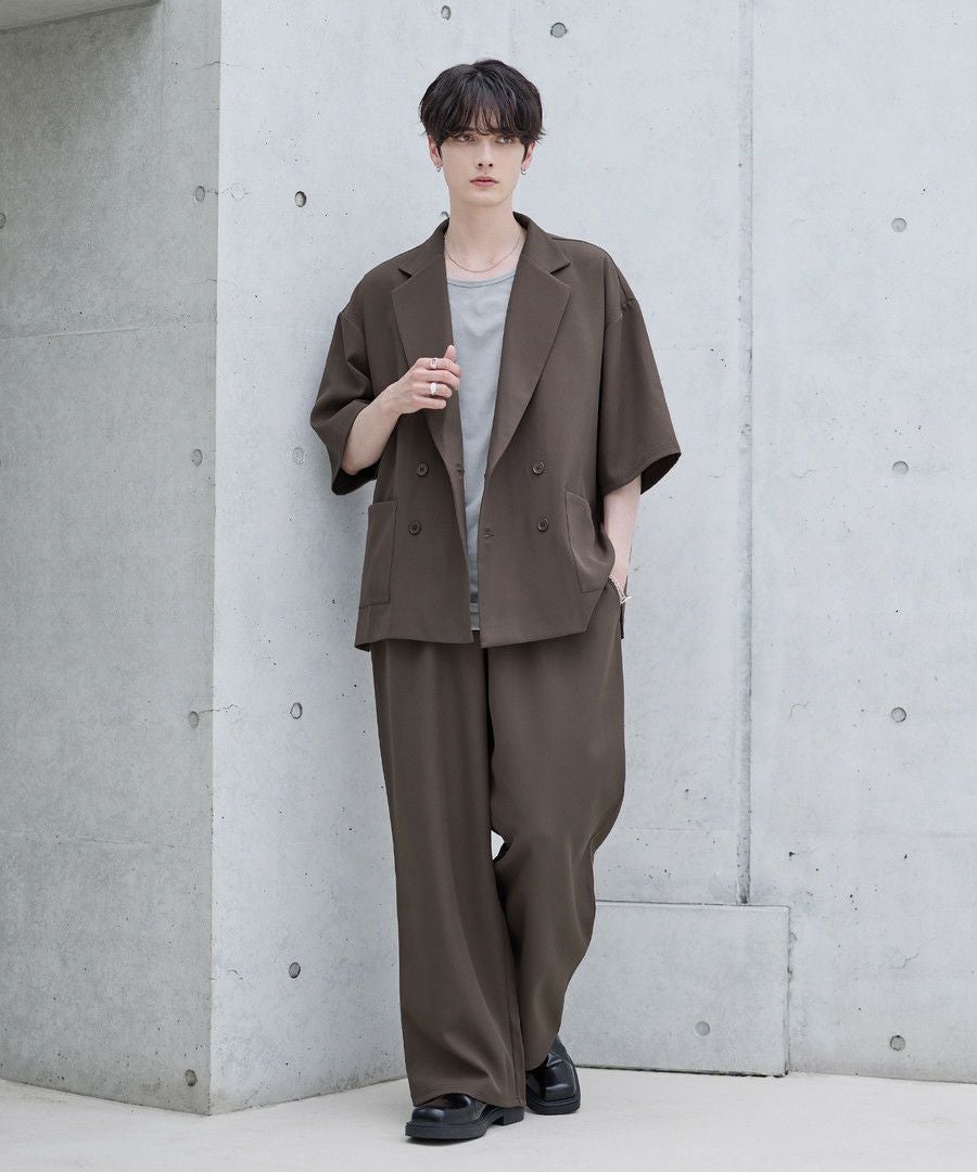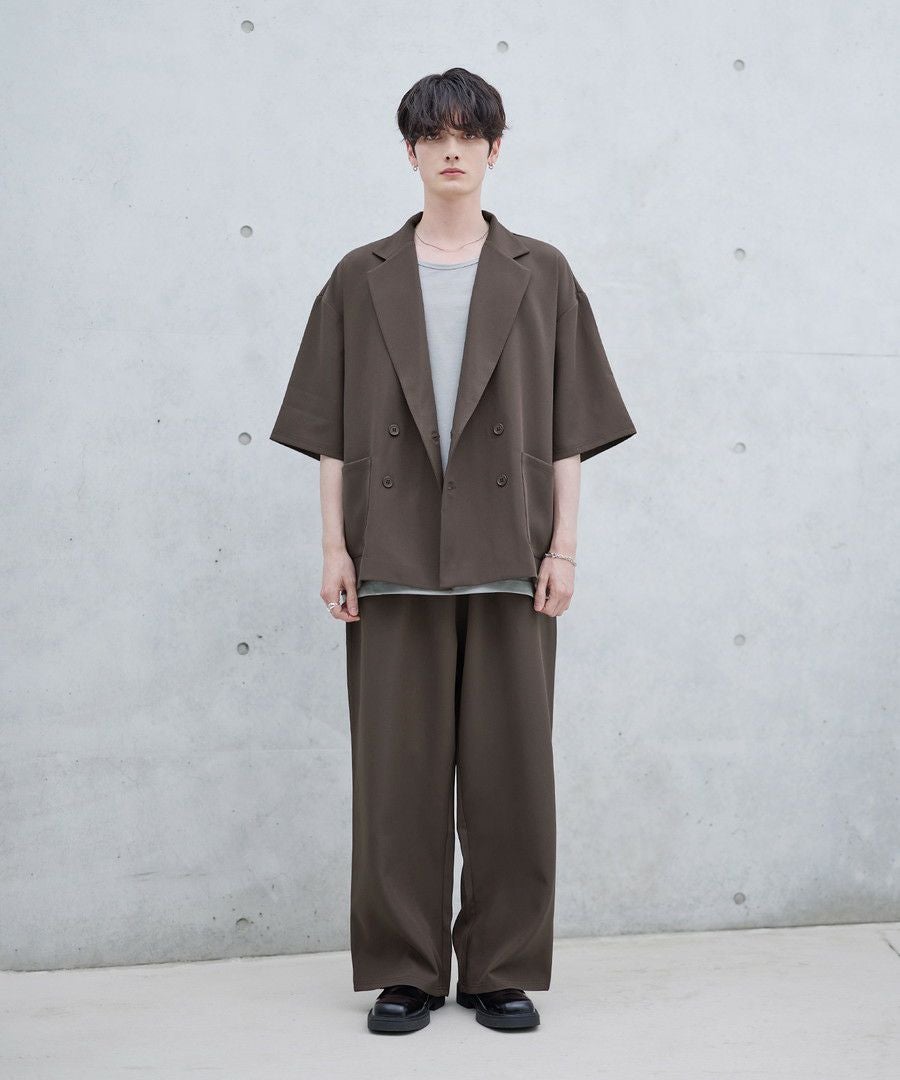 【セットアップ 2点セット】ダブルテーラード半袖シャツ+ワイドバギーイージーパンツ