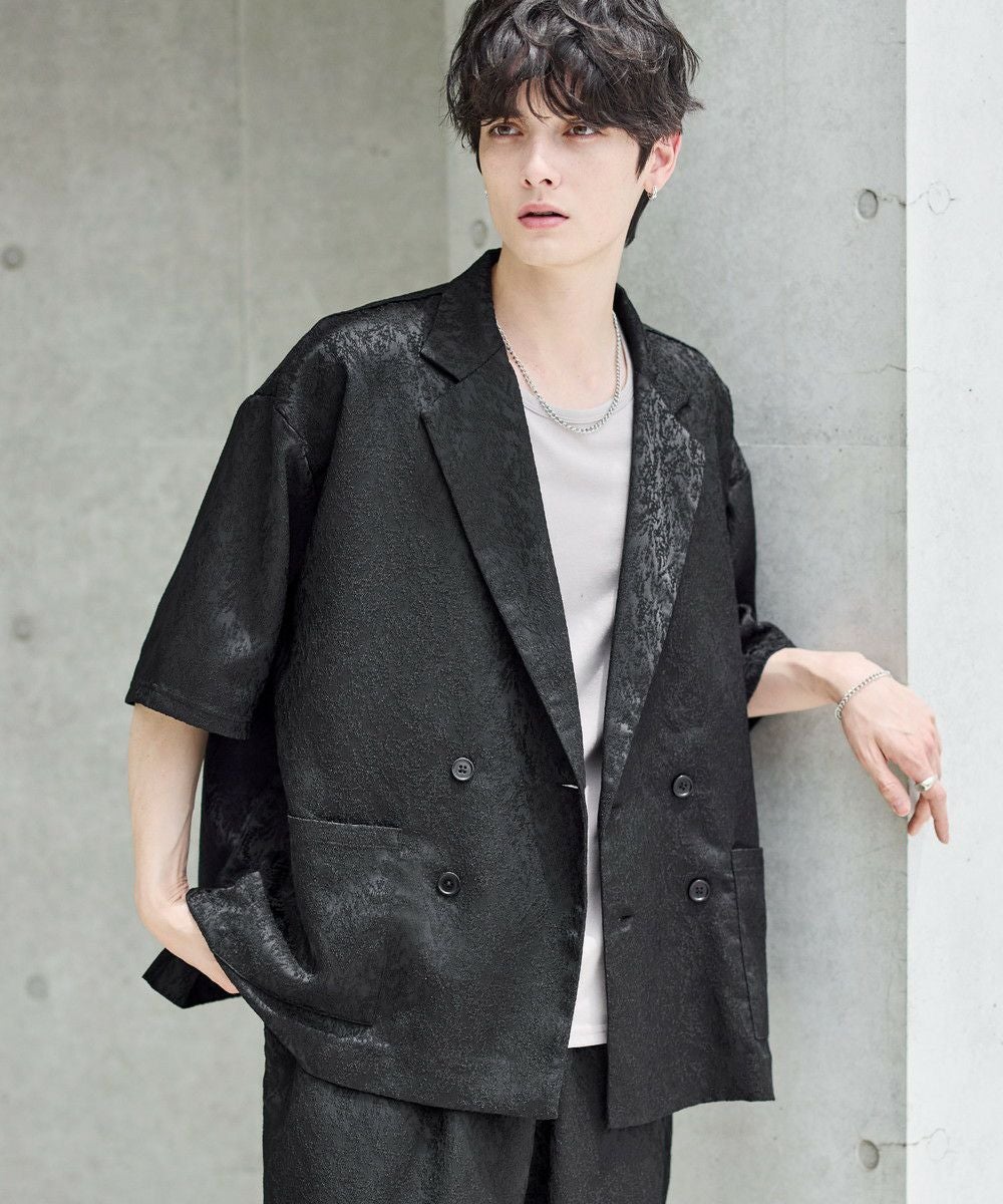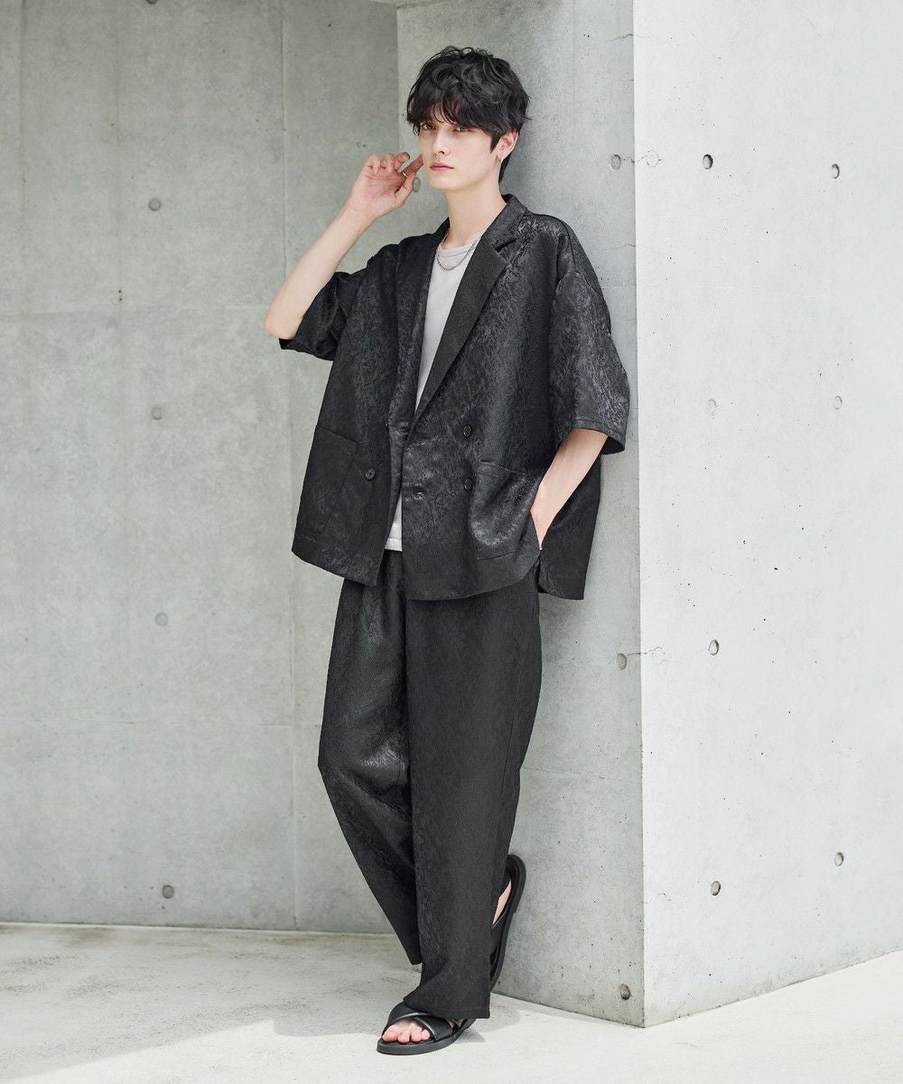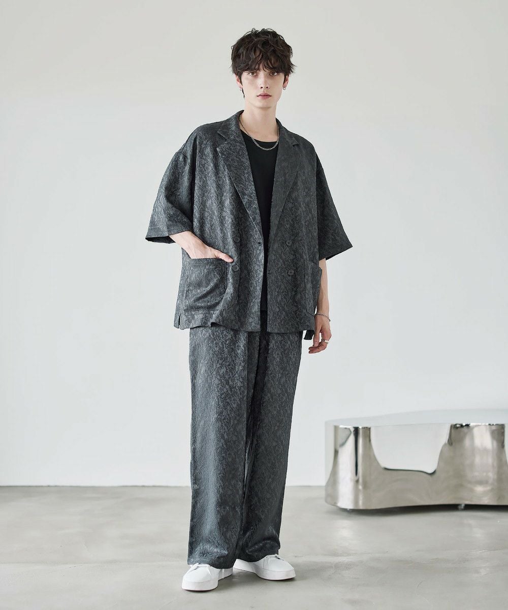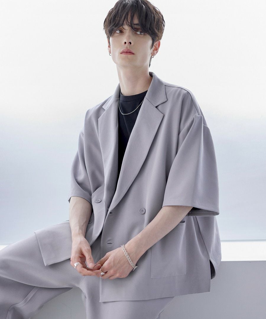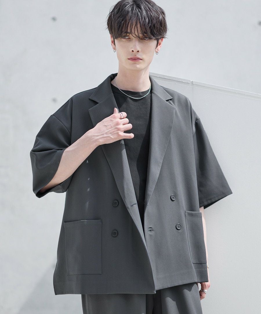 【セットアップ 2点セット】ダブルテーラード半袖シャツ+ワイドバギーイージーパンツ