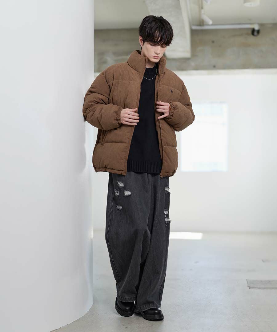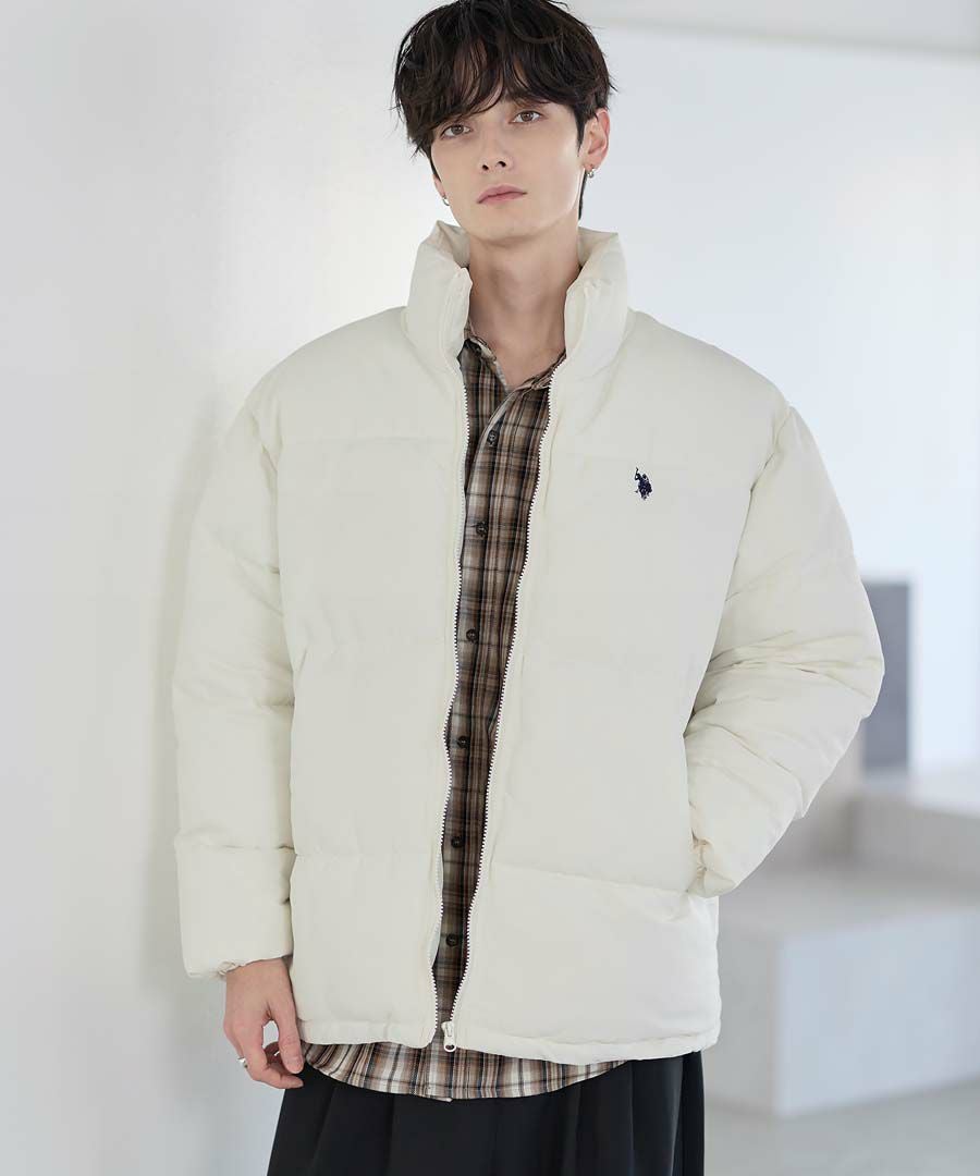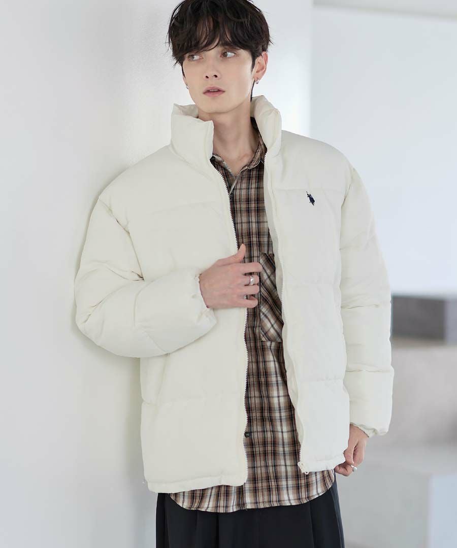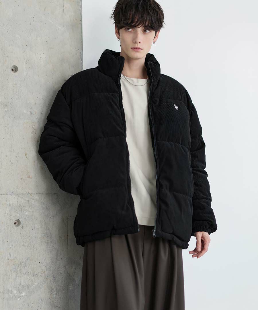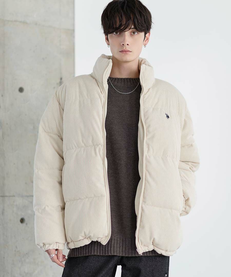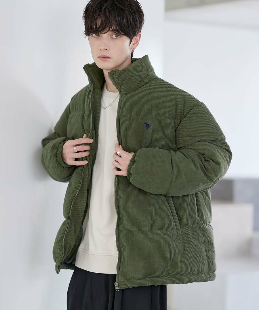 U.S.POLO ASSN. ハイネックボリューム中綿スタンドネックブルゾン タフタ/コーデュロイ