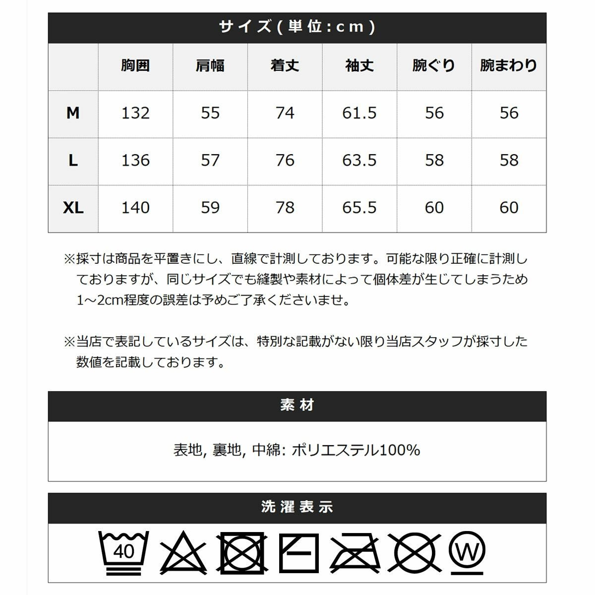 ※商品特性、縫製や素材により同サイズでも、若干の誤差が生じてしまうことを予めご了承ください。