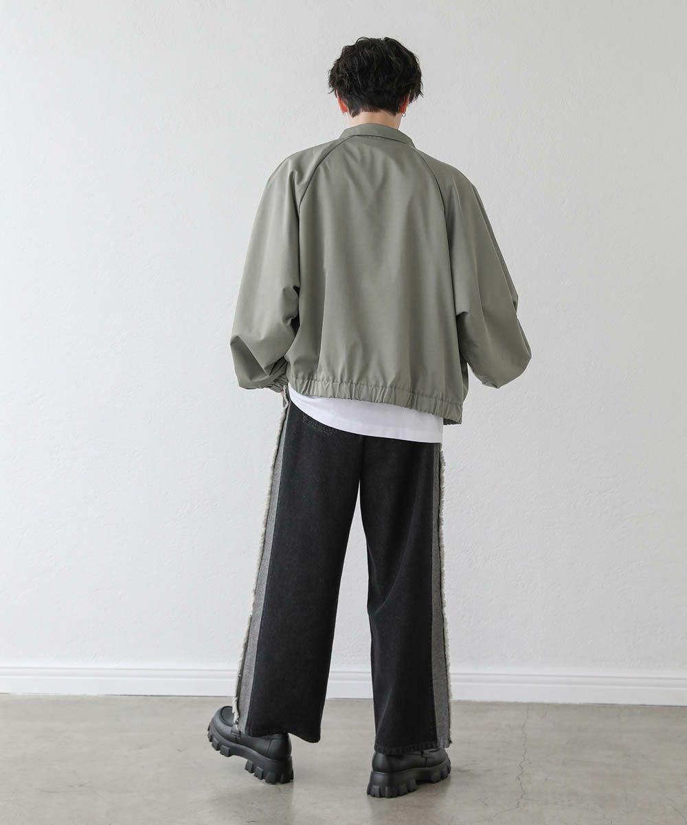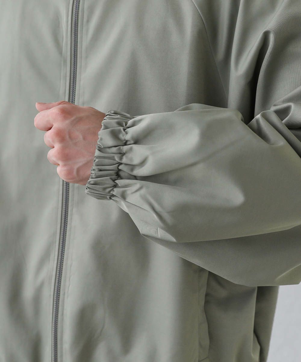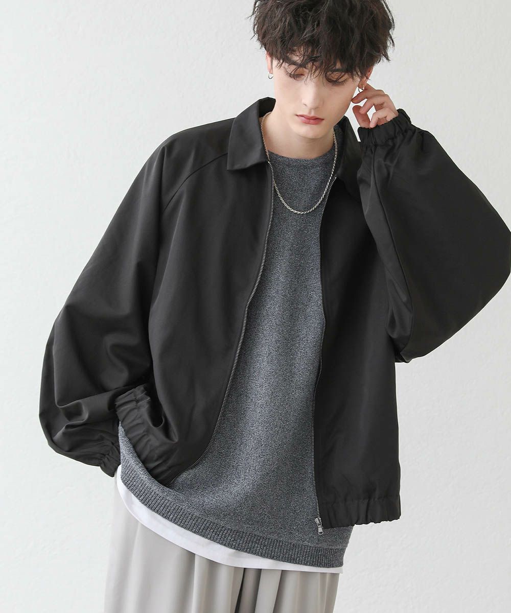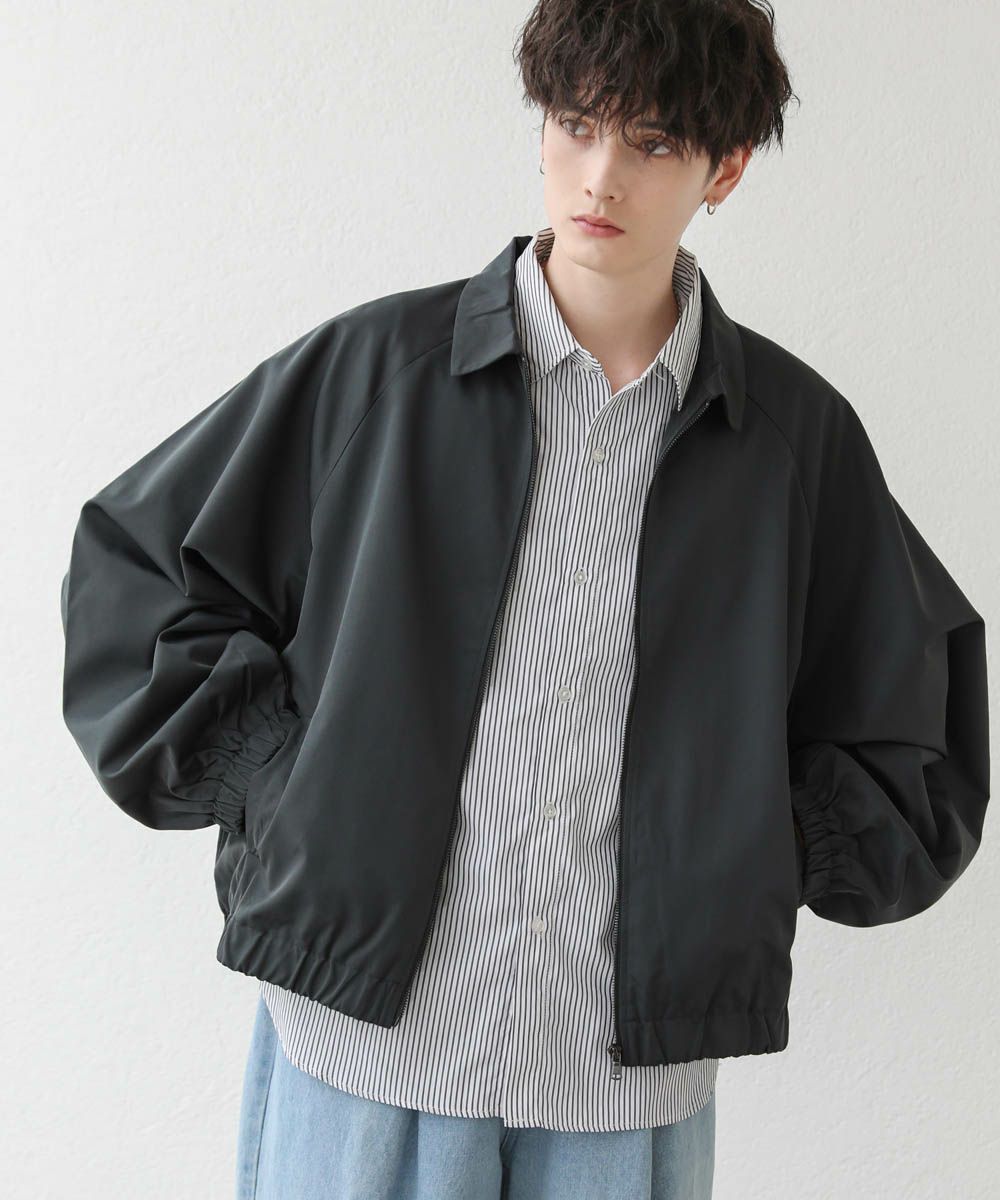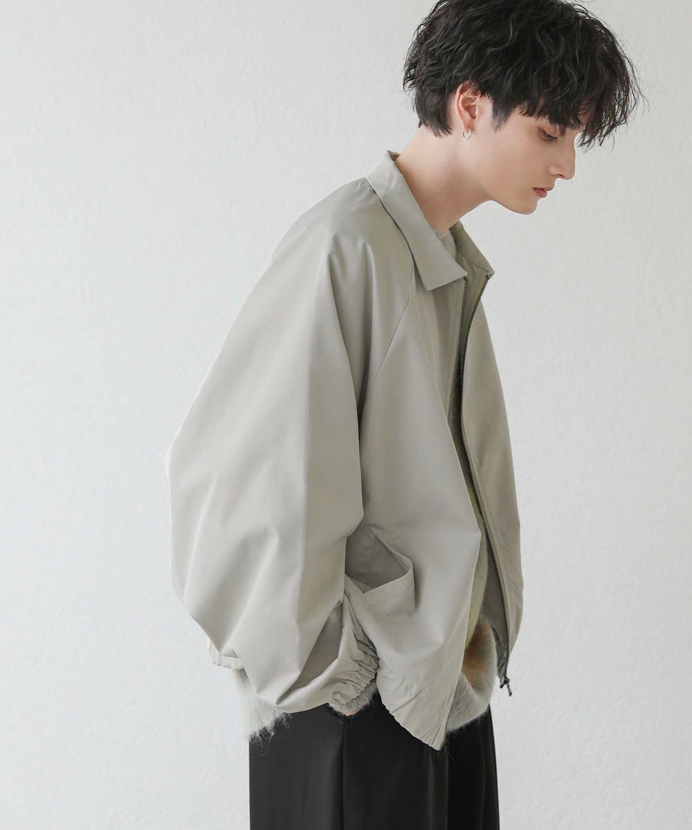 抜け感のあるドルマンスリーブのショートブルゾン。身幅はたっぷりと取りつつ着丈をショート丈にすることで、バランスがとりやすく、軽やかさとリラックス感のあるライトアウターに。目を惹くワイドな袖が着こなしにアクセントを加えてくれます。袖と裾にはギャザーを入れ、メリハリのあるシルエットに仕上げました。短めの着丈でワイドパンツやバギーパンツなどボリュームのあるボトムと相性抜群。気兼ねなく羽織れるカジュアルアウターながら、生地には程よい光沢感があり、上品な印象で着こなしていただけます。