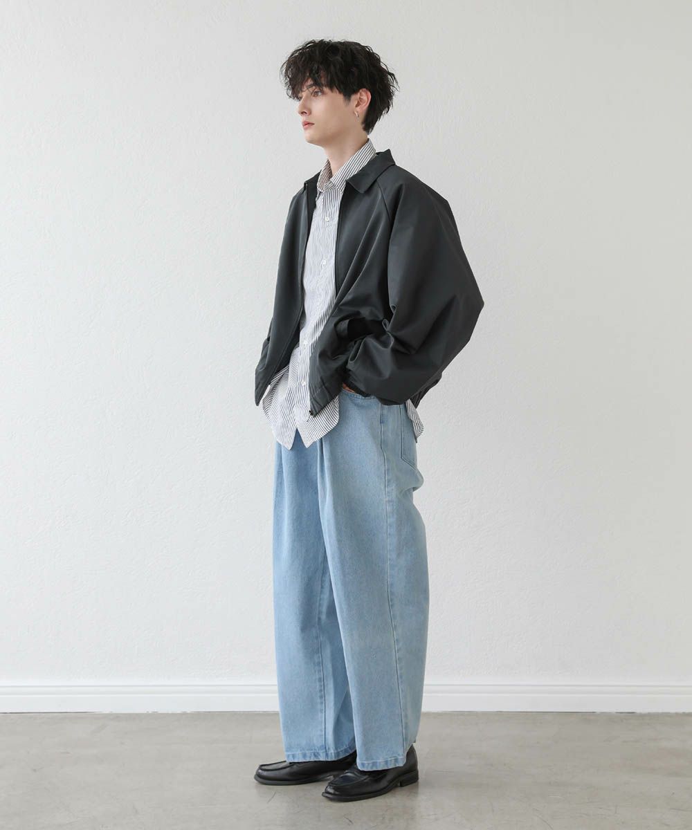 単色のシンプルなデザインなのでカットソーやシャツ、ニットなど合わせるインナーを選ばず日々のコーデに活躍します。身幅にゆとりがあるのでルーズシルエットのインナーや厚手のニットも余裕を持って着用可能。スラックスやワイドデニムなどボリュームのあるボトムと合わせてトレンドの着こなしを楽しめます。