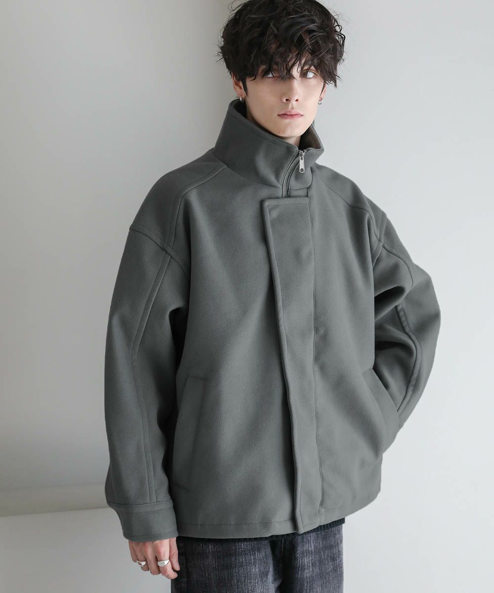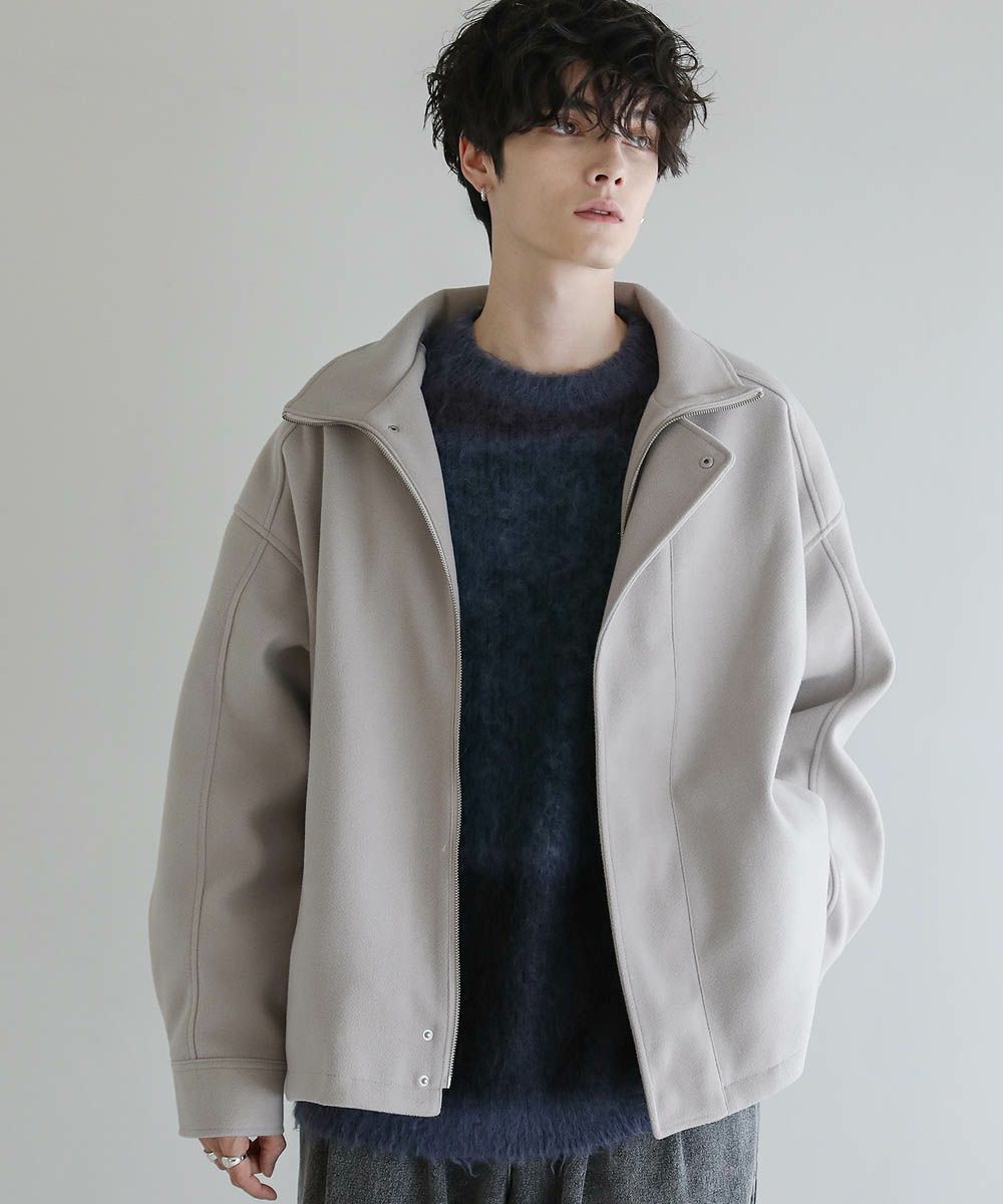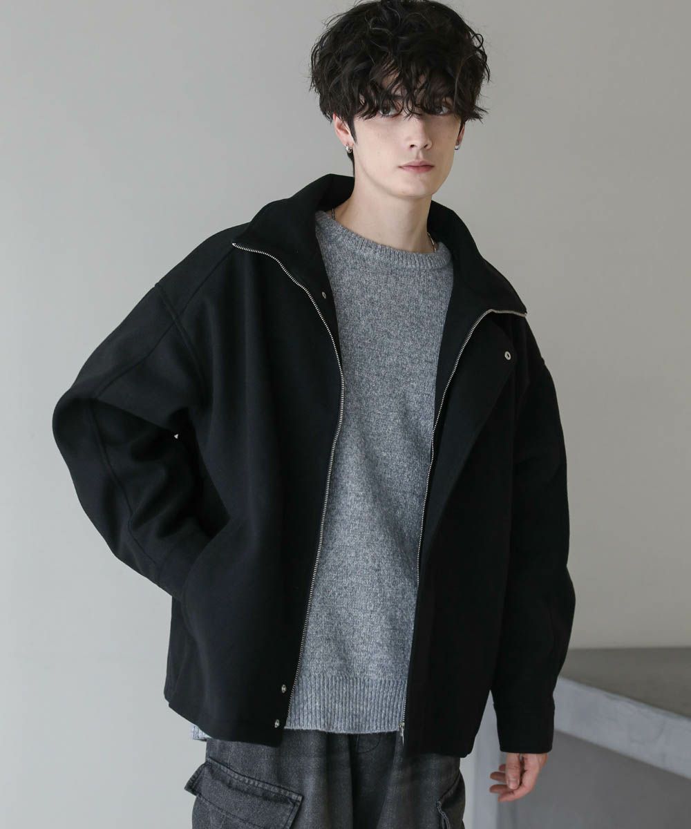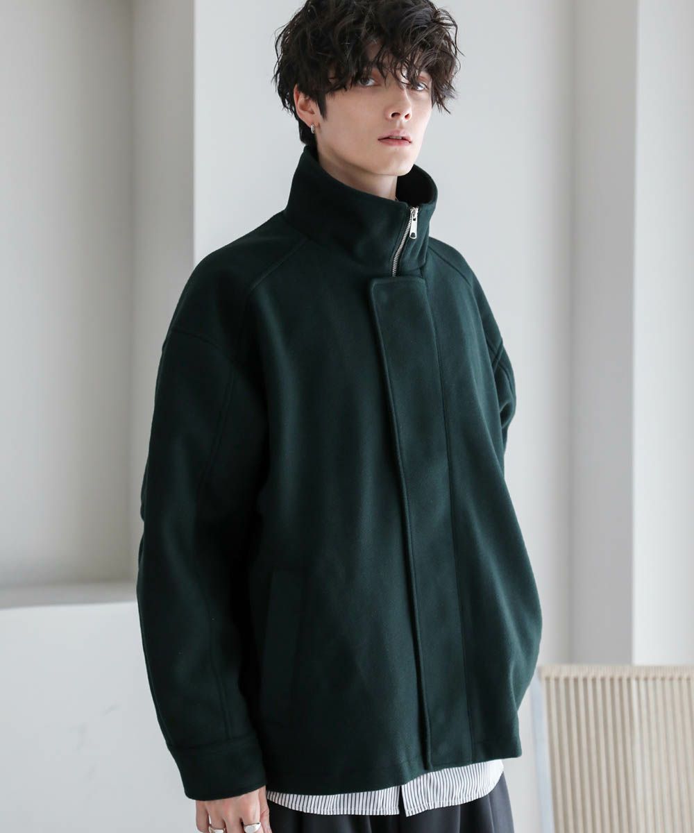 ビッグシルエットメルトンスタンドネックブルゾン