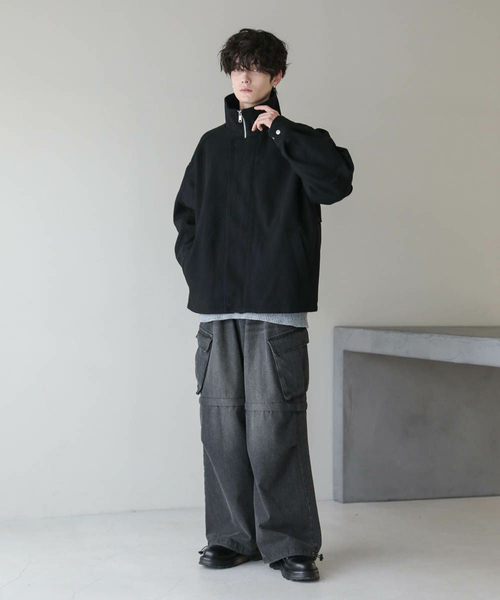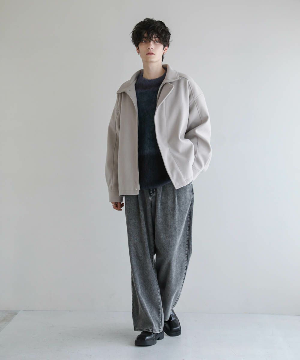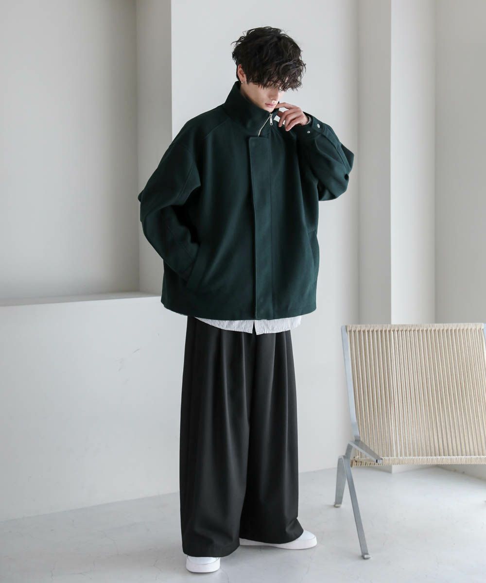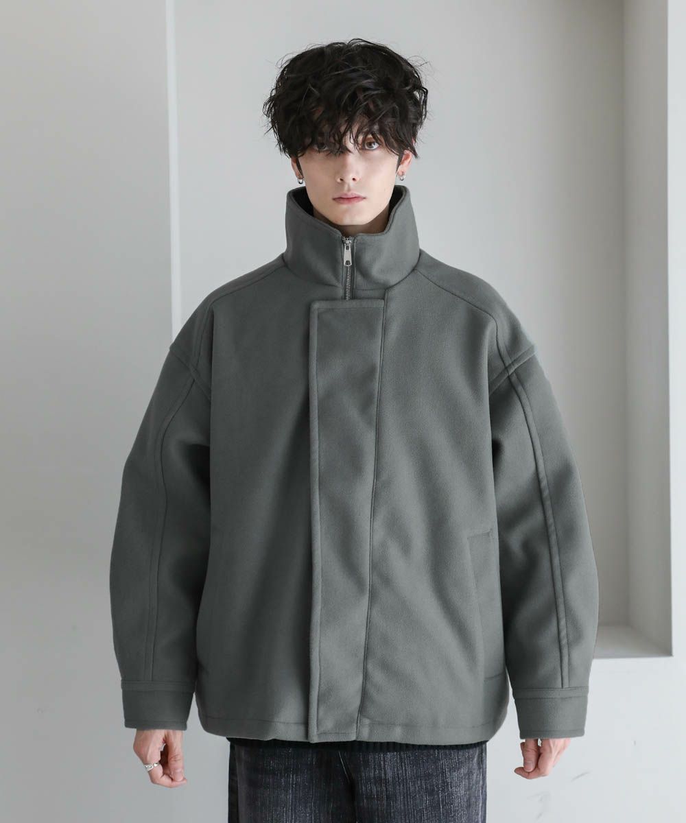 ビッグシルエットメルトンスタンドネックブルゾン