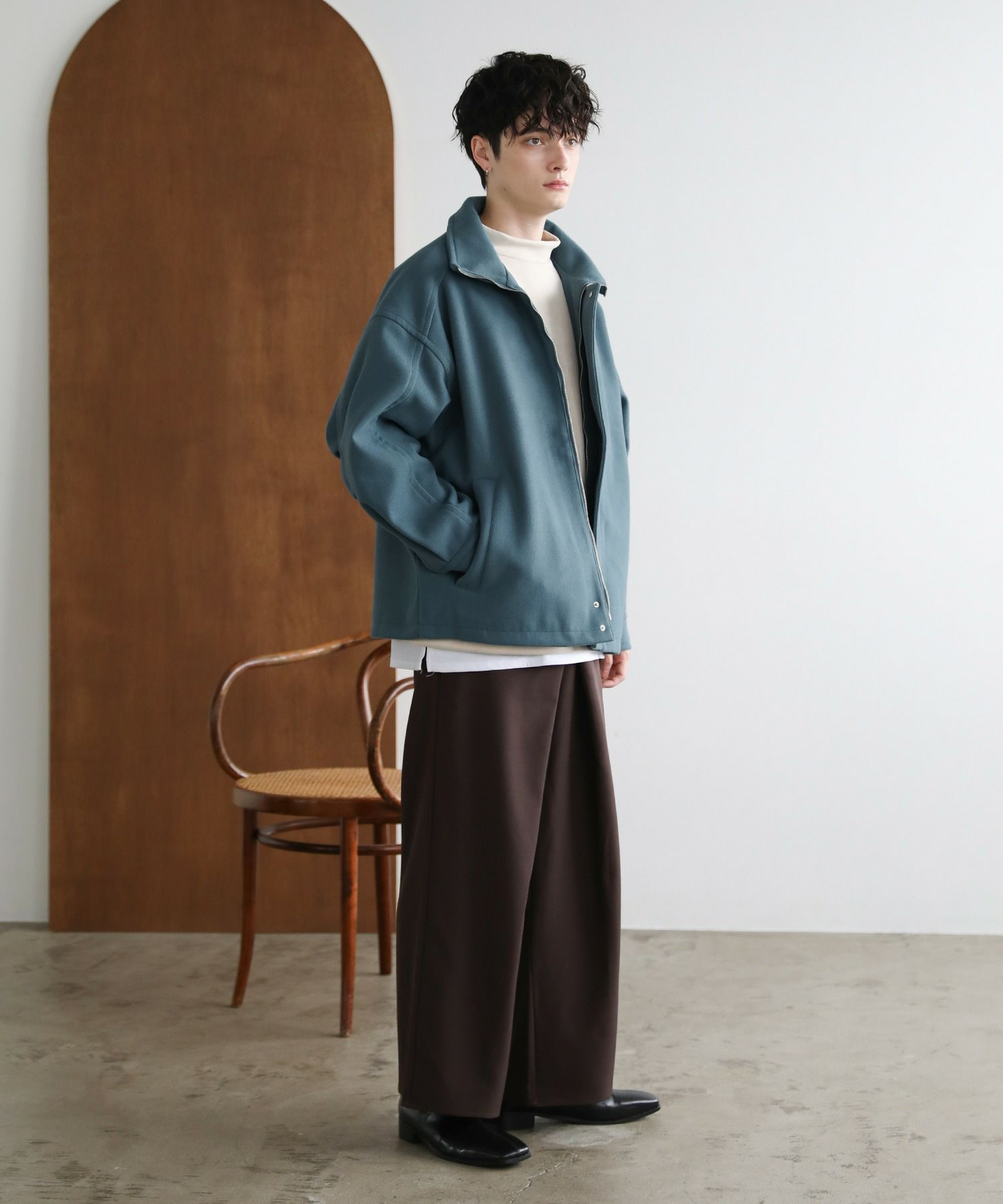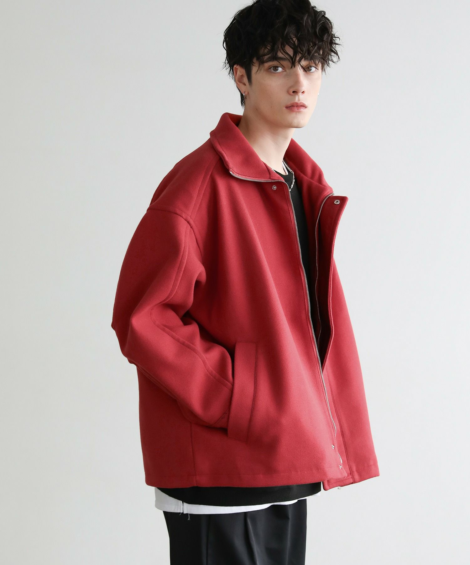 3. ビッグシルエットメルトンスタンドネックブルゾン