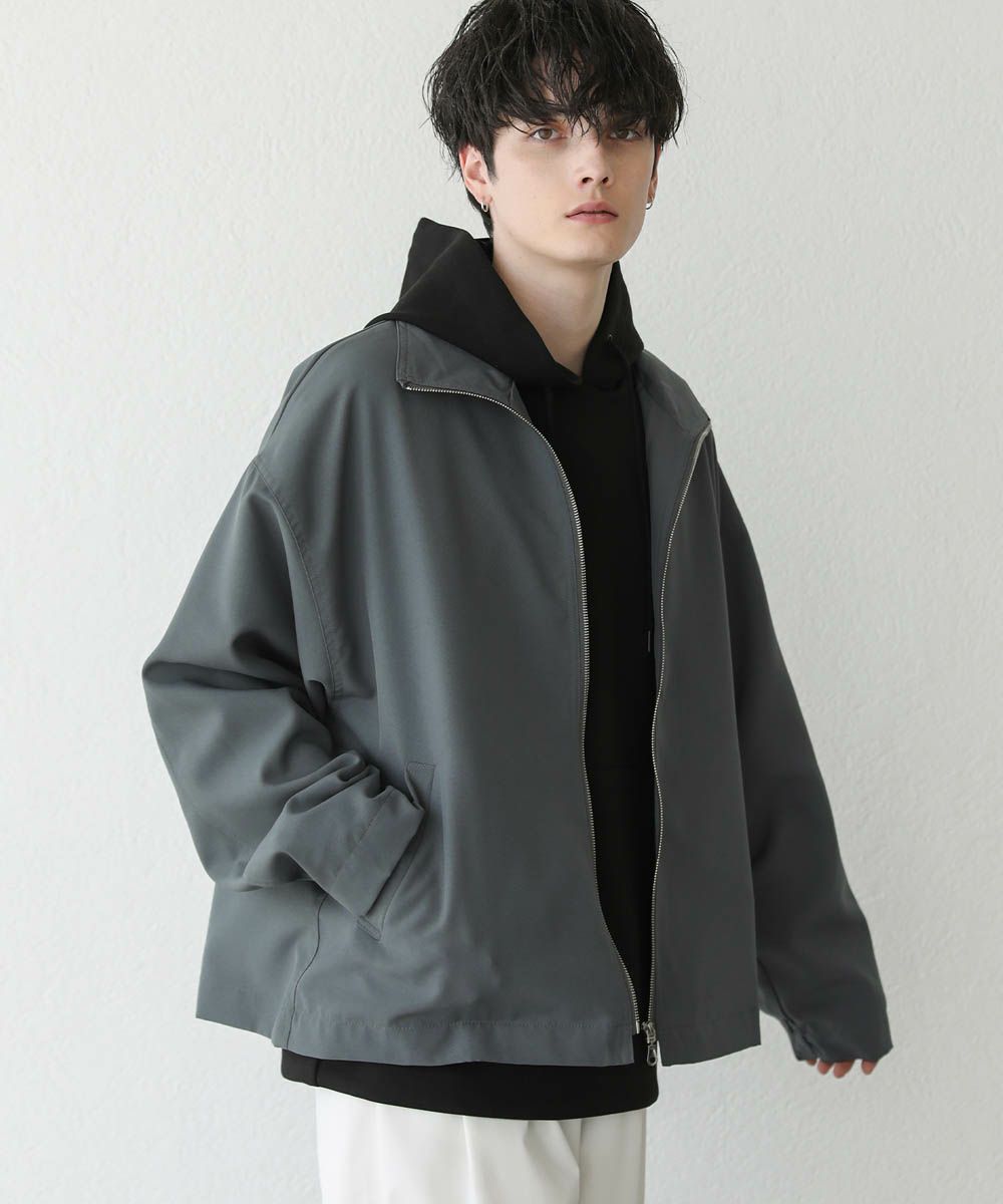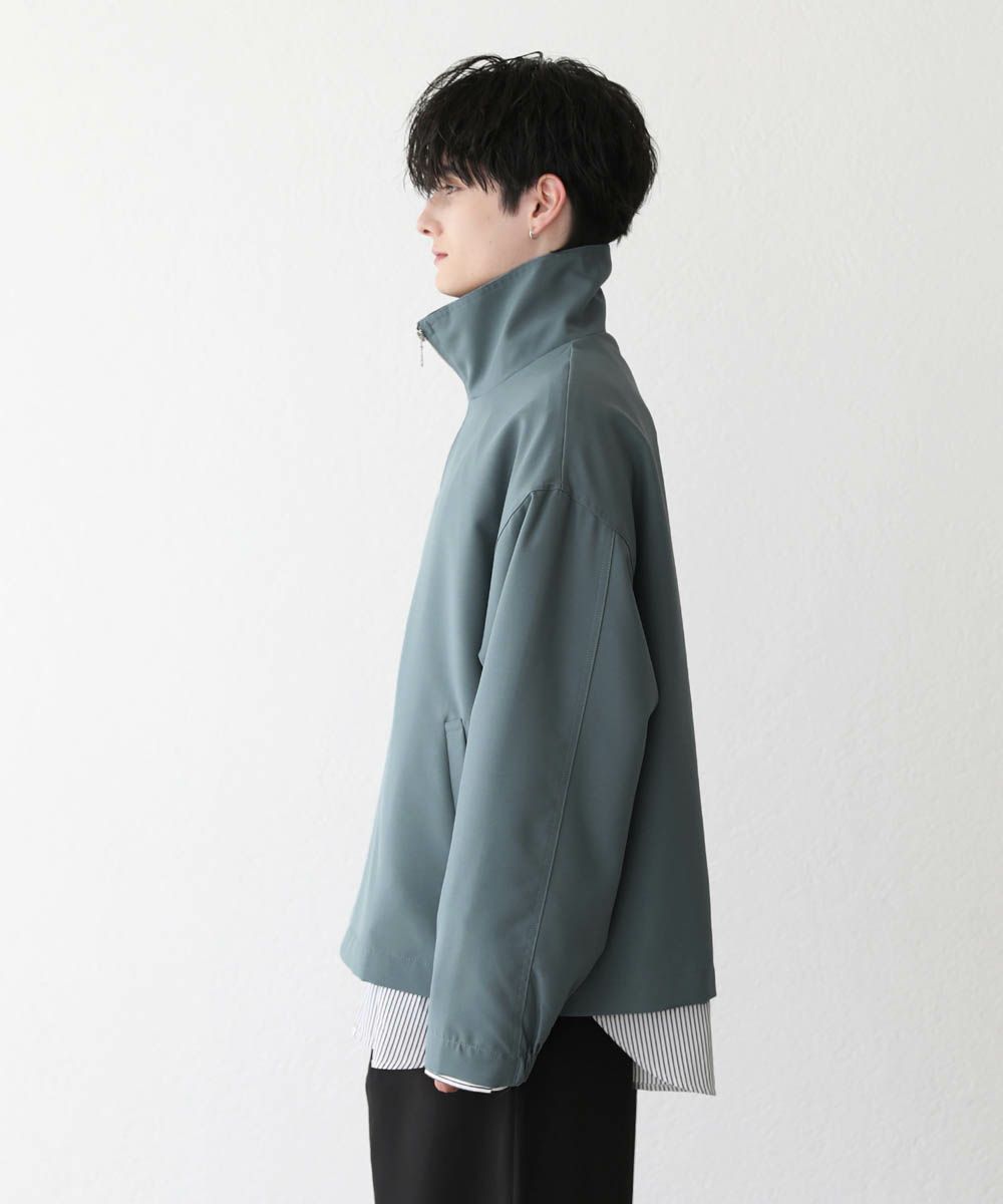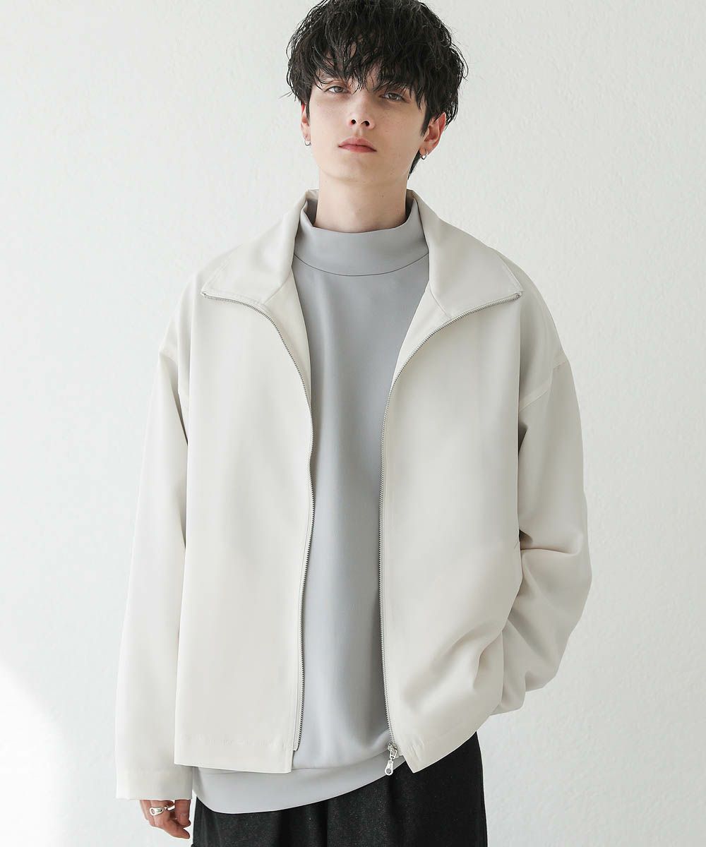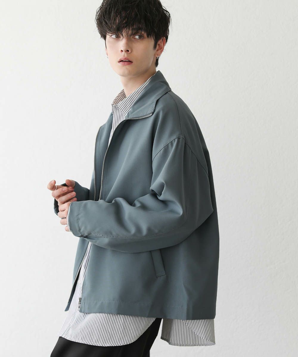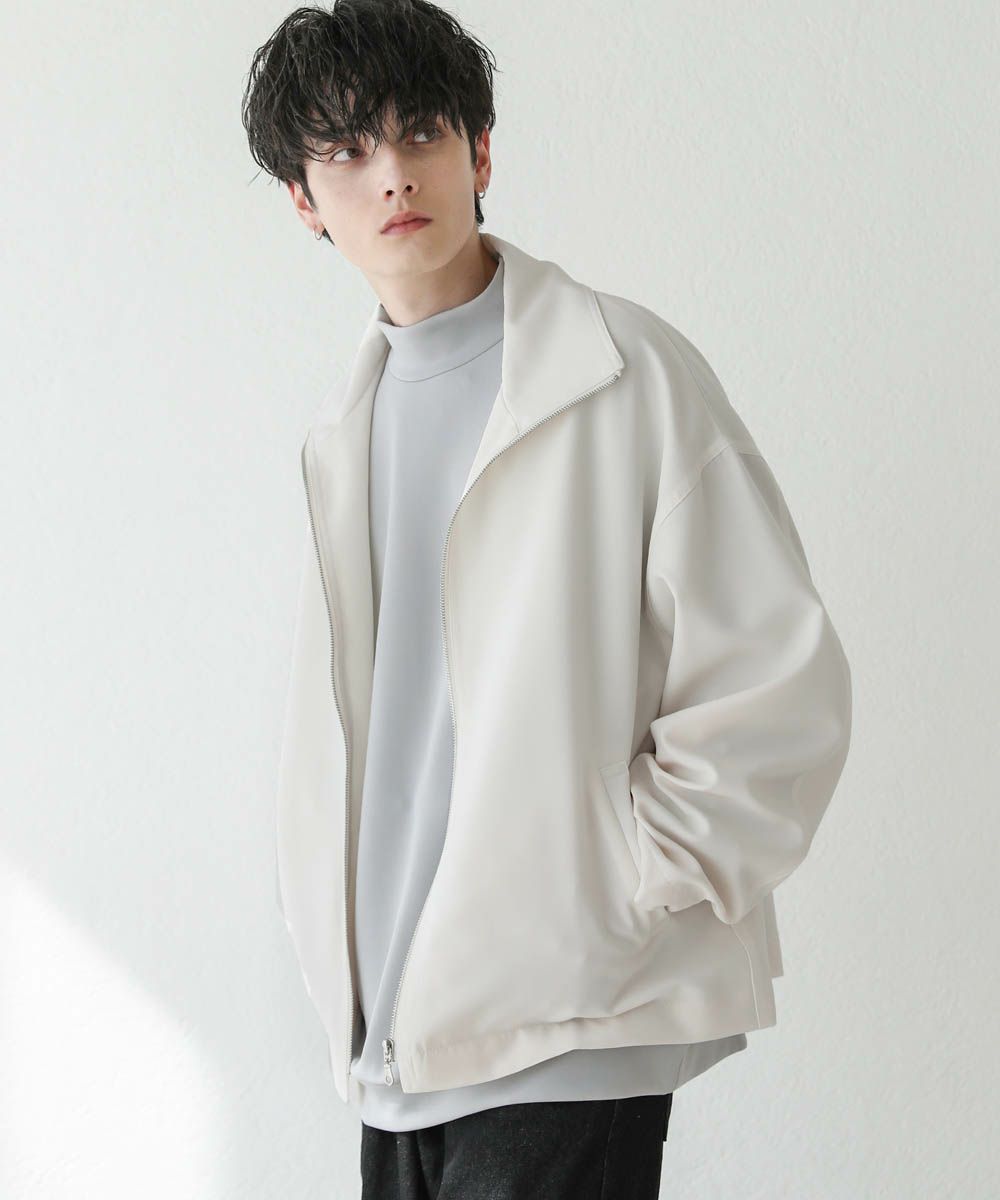 トレンド感溢れるオーバーサイズのスタンドジャケット。ショート丈で着回ししやすく、また適度な光沢感があり上品な印象をプラスできるアイテムです。身幅、肩幅にゆとりを持たせたルーズなサイジングに、ストン落ちるデザイン、また袖に絞りを入れることでメリハリのあるシルエットに。ジップを上まで閉めてハイネックの着こなしもおすすめです。単色のシンプルなアイテムなので着回しやすく、1着あると季節の変わり目のライトアウターとして活躍します。