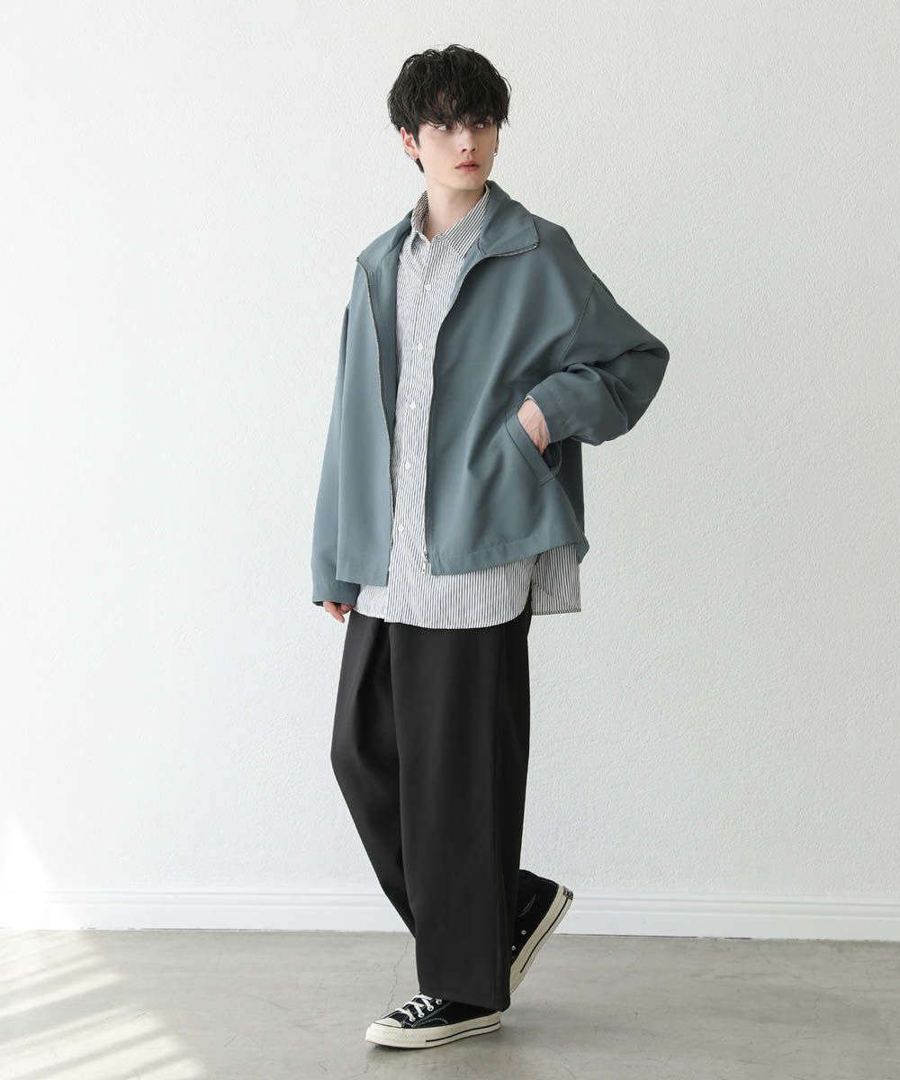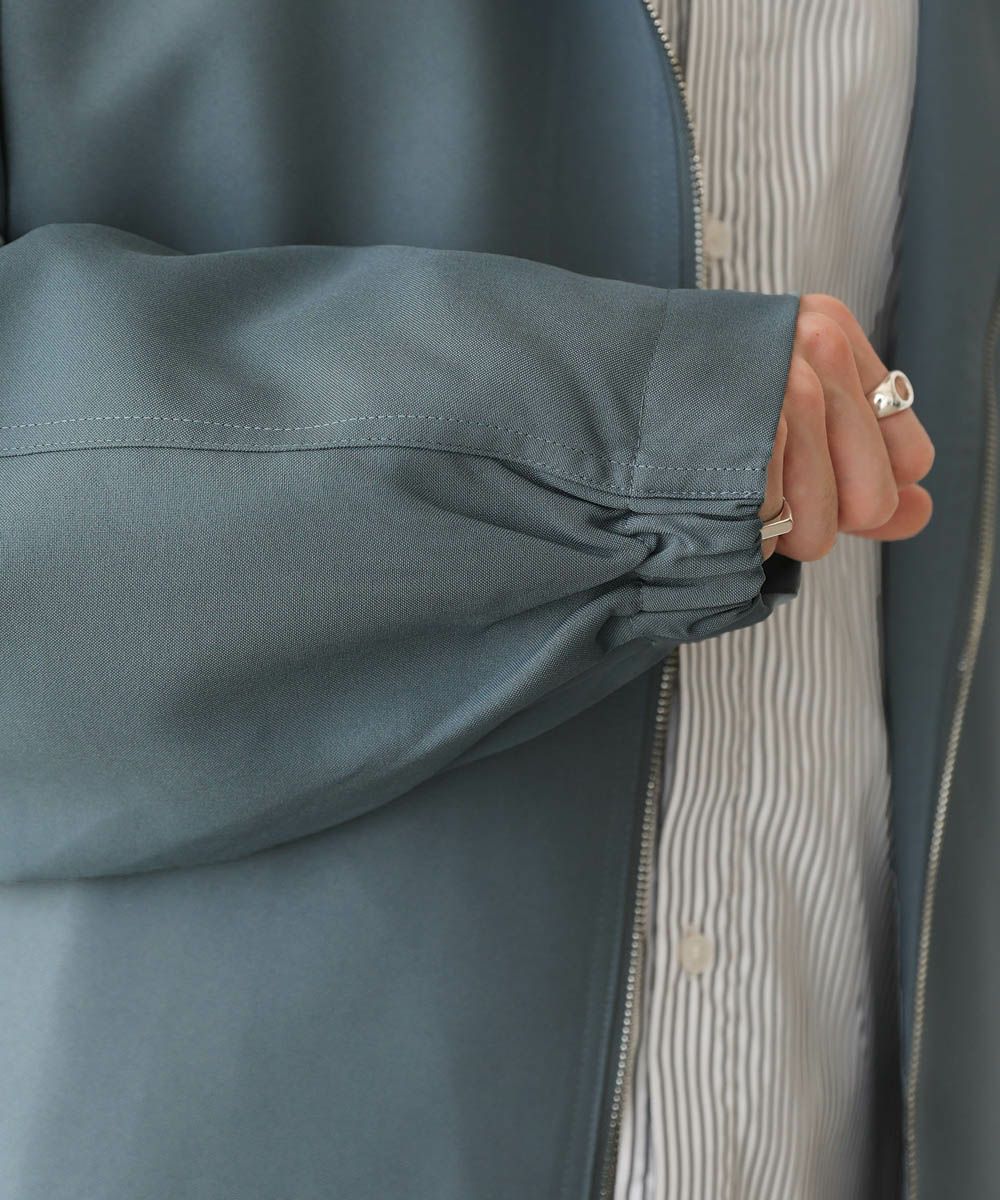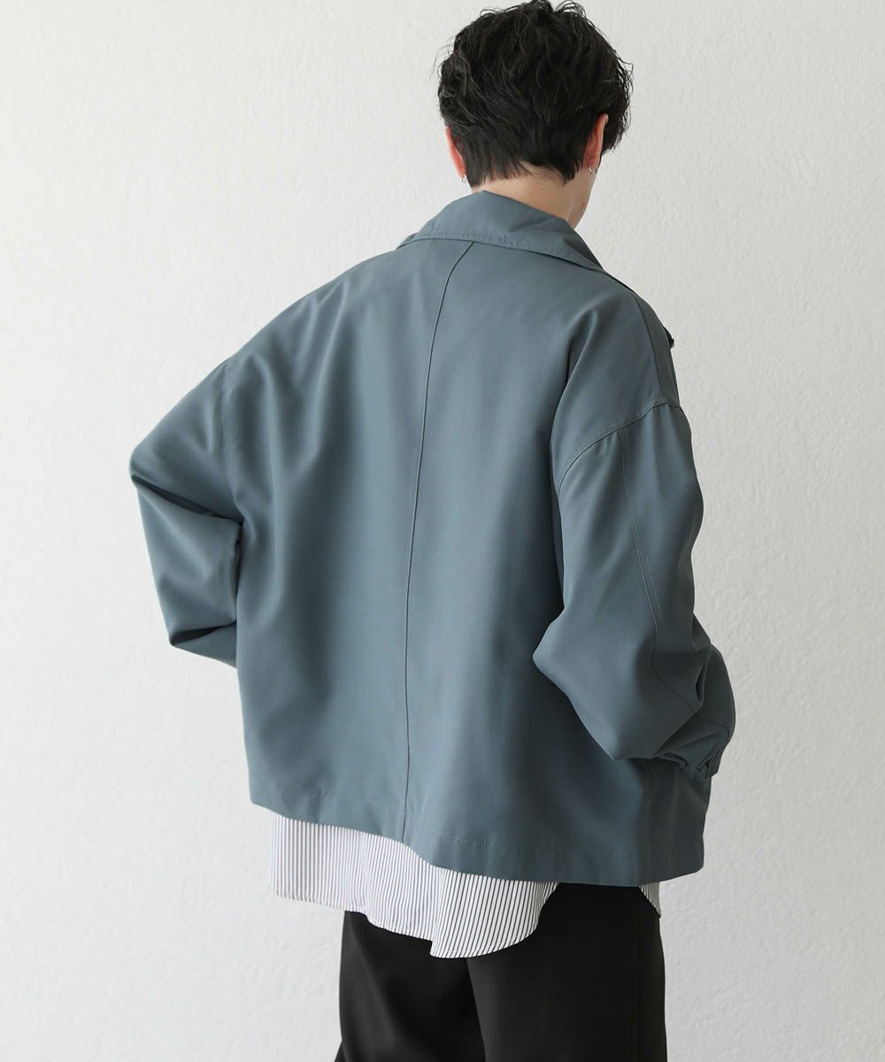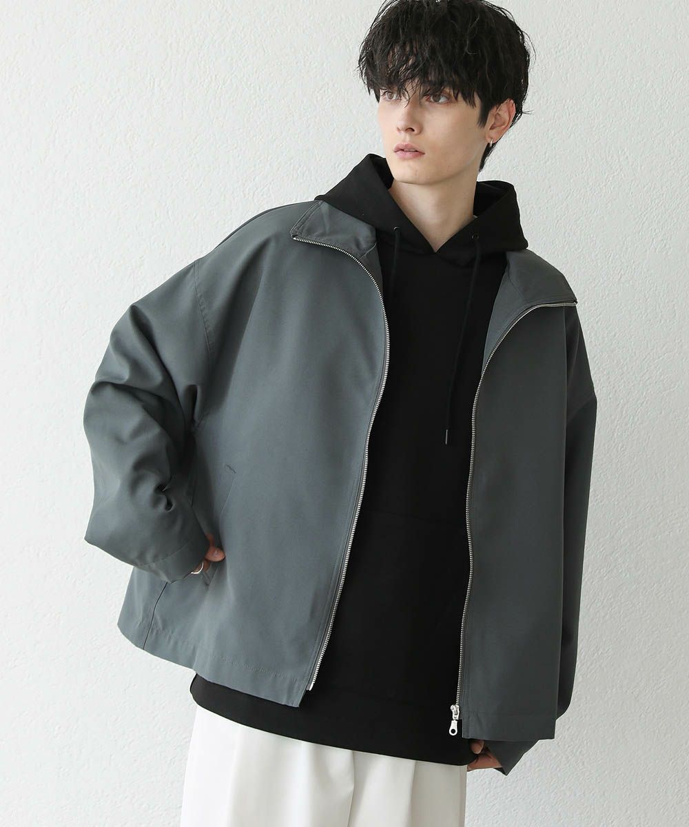 トレンド感溢れるオーバーサイズのスタンドジャケット。ショート丈で着回ししやすく、また適度な光沢感があり上品な印象をプラスできるアイテムです。身幅、肩幅にゆとりを持たせたルーズなサイジングに、ストン落ちるデザイン、また袖に絞りを入れることでメリハリのあるシルエットに。ジップを上まで閉めてハイネックの着こなしもおすすめです。単色のシンプルなアイテムなので着回しやすく、1着あると季節の変わり目のライトアウターとして活躍します。