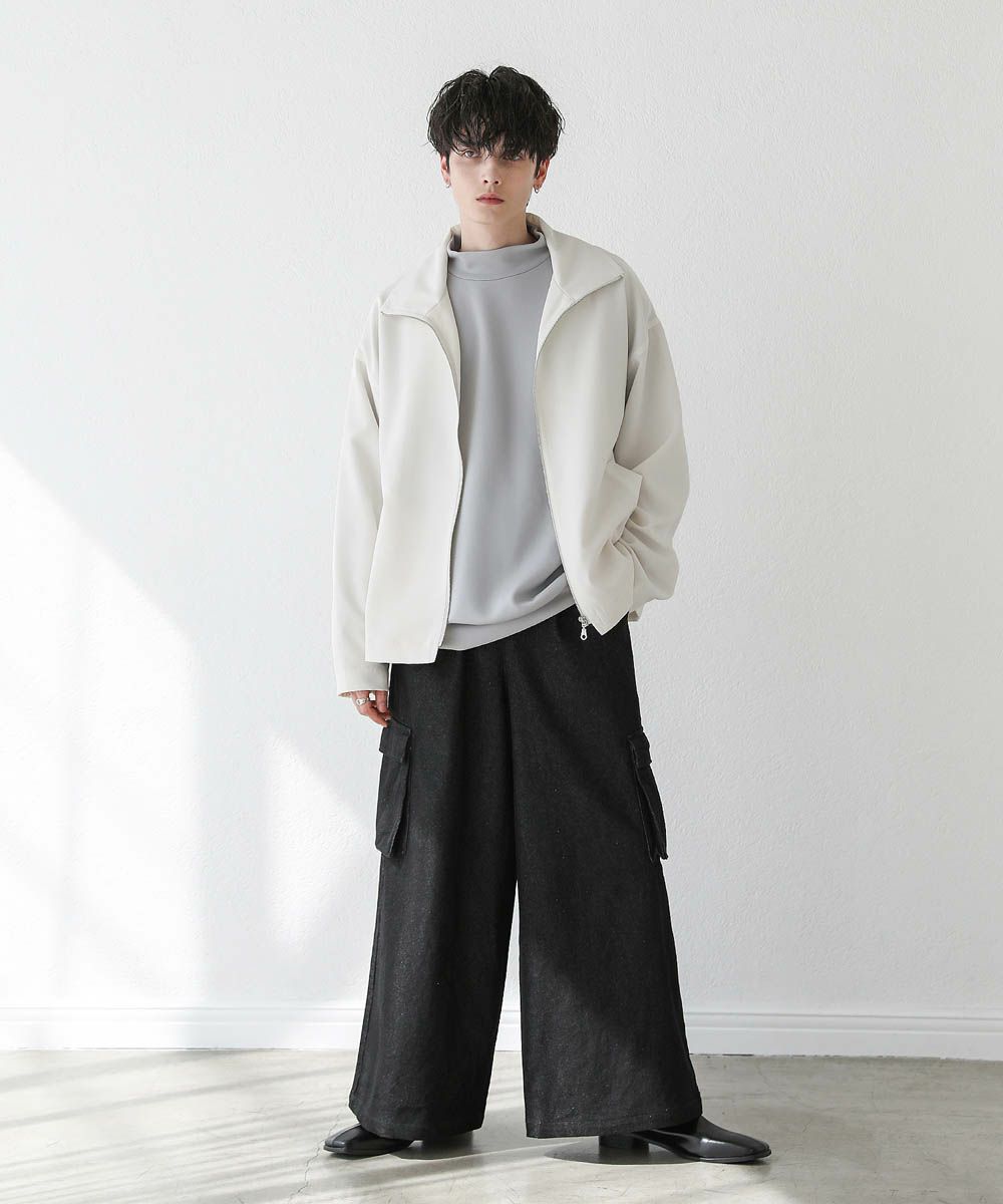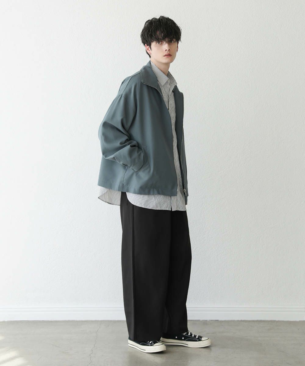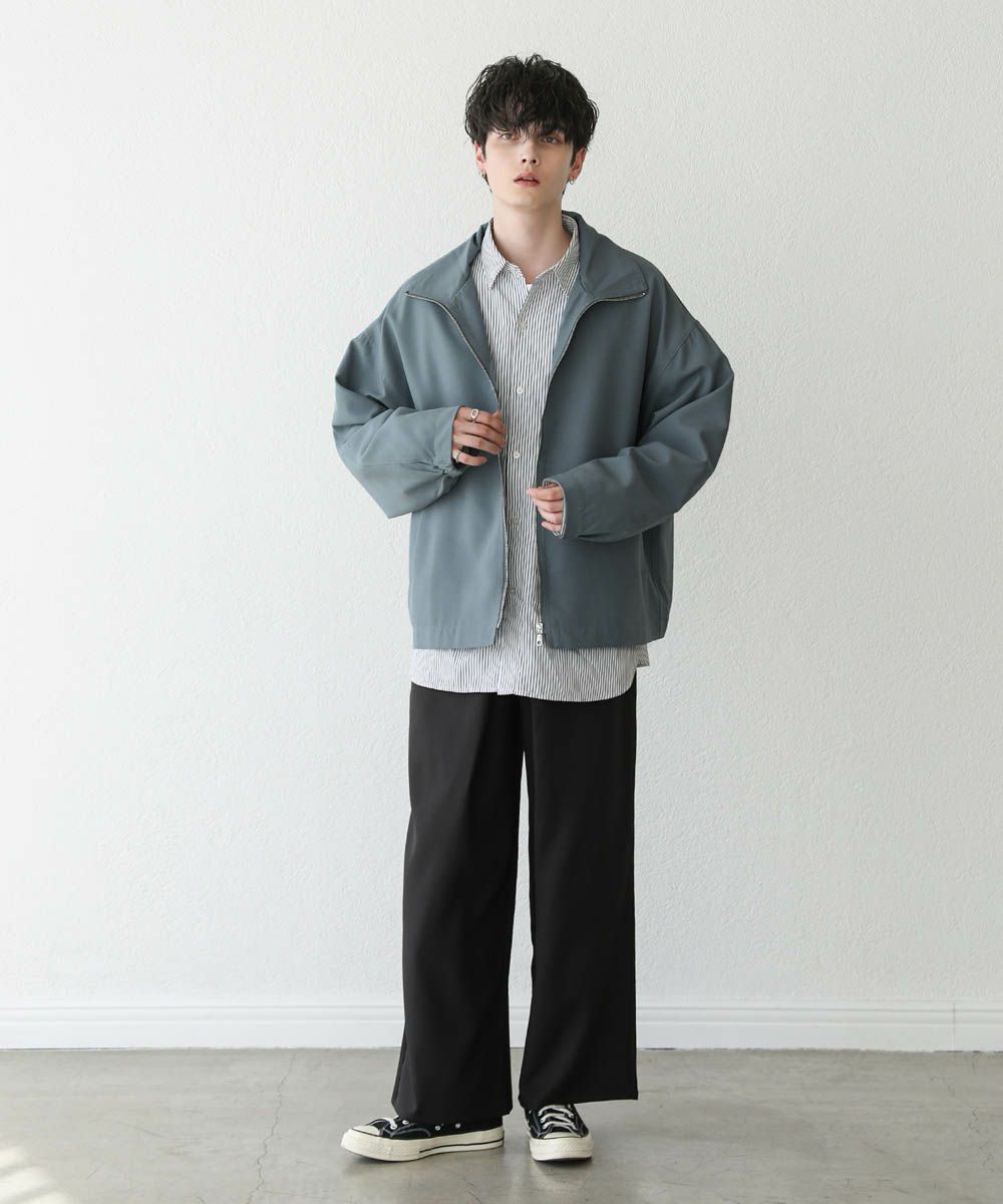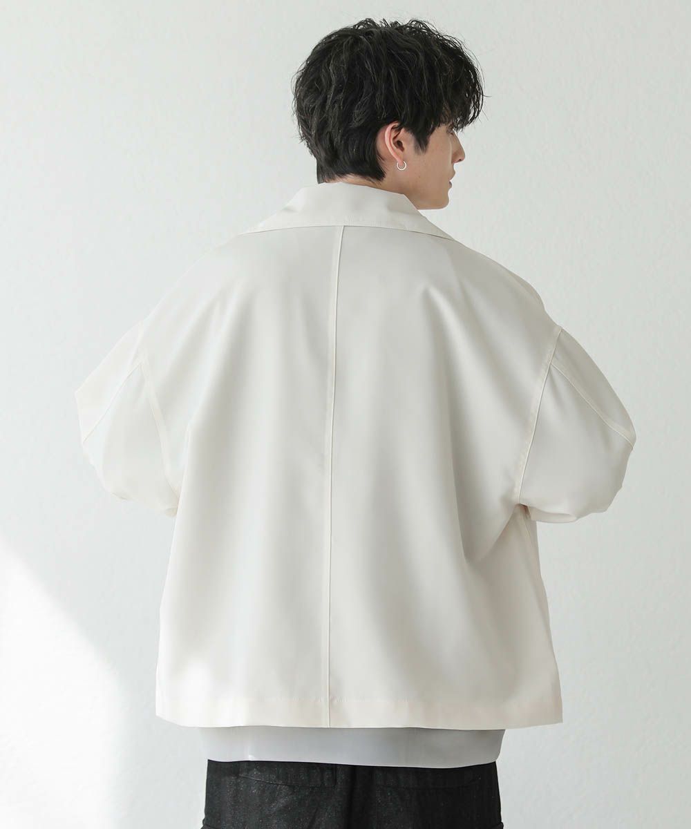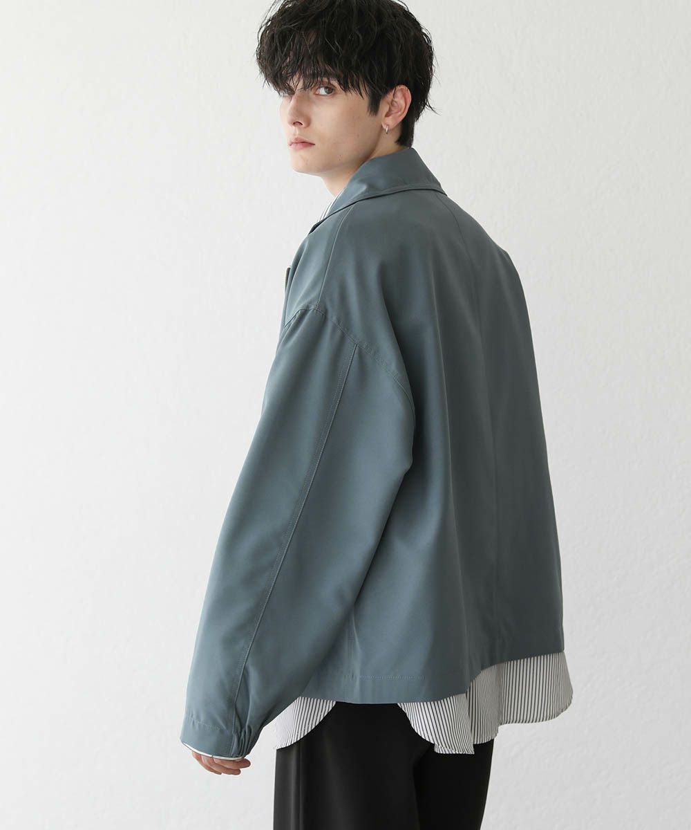 トレンド感溢れるオーバーサイズのスタンドジャケット。ショート丈で着回ししやすく、また適度な光沢感があり上品な印象をプラスできるアイテムです。身幅、肩幅にゆとりを持たせたルーズなサイジングに、ストン落ちるデザイン、また袖に絞りを入れることでメリハリのあるシルエットに。ジップを上まで閉めてハイネックの着こなしもおすすめです。単色のシンプルなアイテムなので着回しやすく、1着あると季節の変わり目のライトアウターとして活躍します。