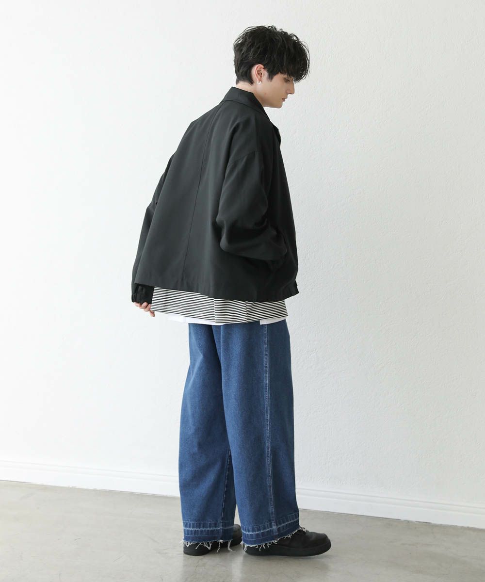 身幅や腕周りにゆとりのあるアイテムなので、オーバーサイズのインナーも楽に着用できます。カットソーはもちろんのこと、パーカーやシャツ、ニットなどお手持ちのアイテムと合わせて様々な着こなしを楽しめます。インナー次第で秋から春にかけてロングシーズン着回すことのできる1着です。