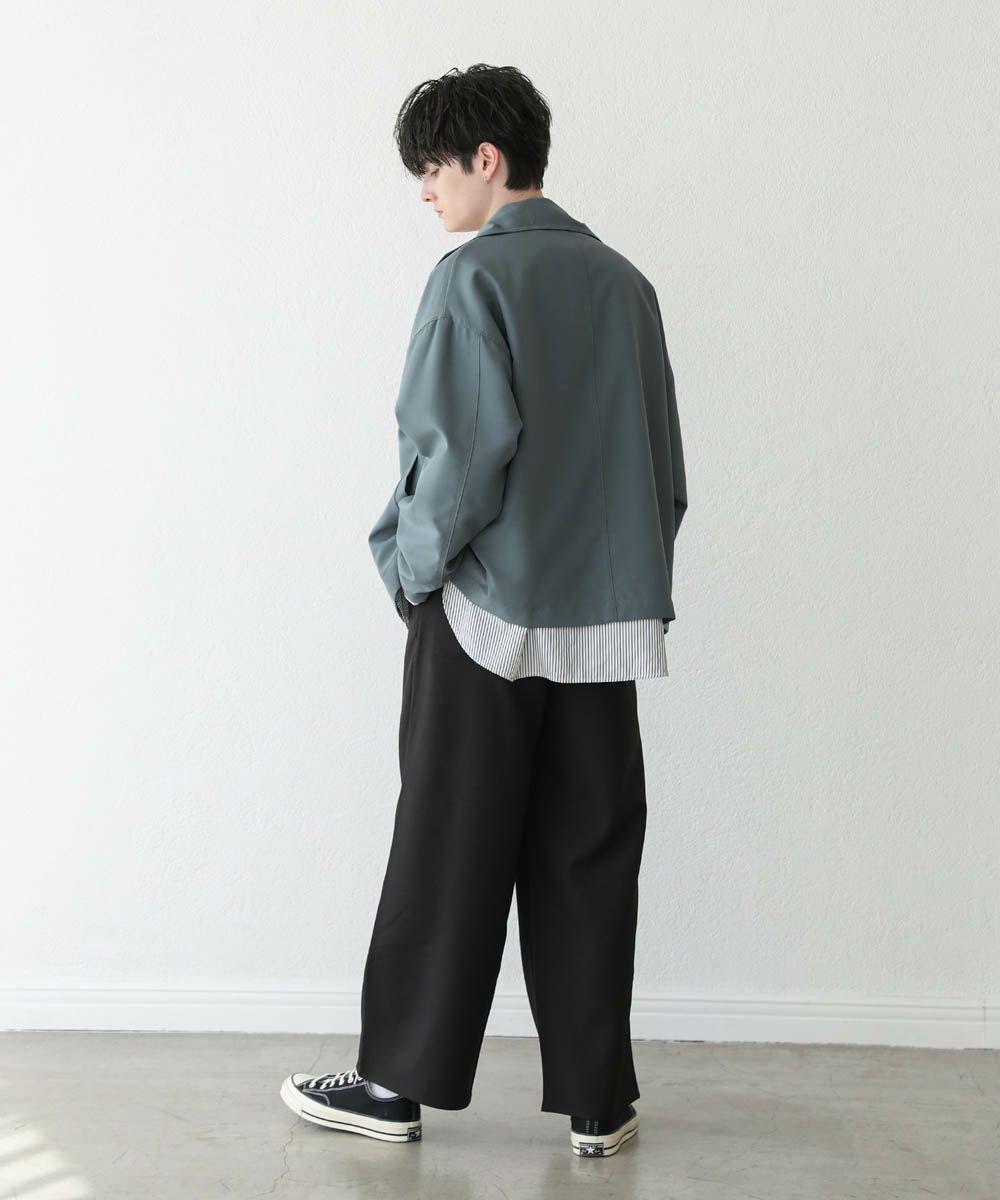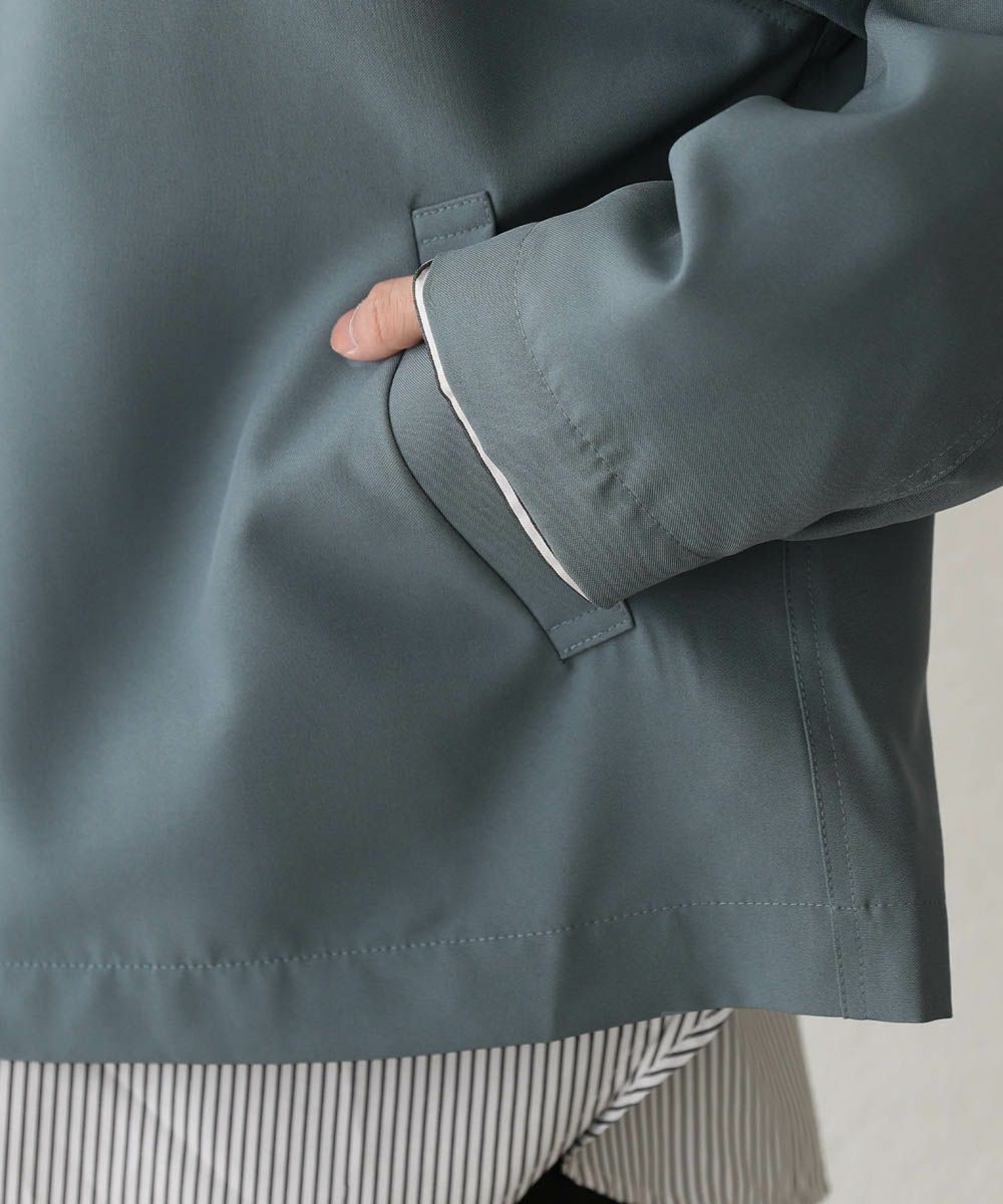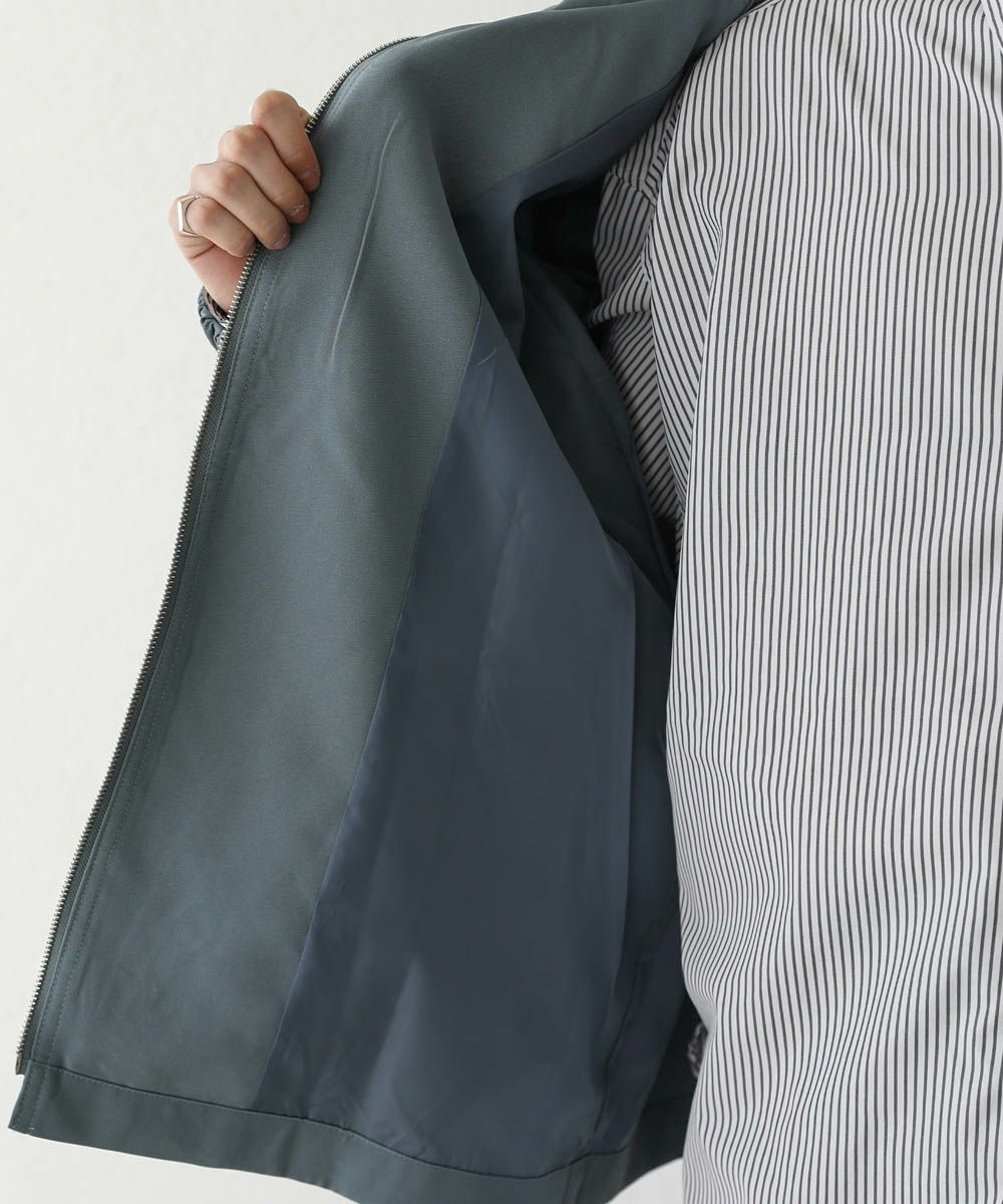 軽い着心地のポリエステルツイル素材を使用。程よい光沢感があり、キレイめな印象に着こなしをまとめてくれます。裏地付きなので着脱もスムーズ。