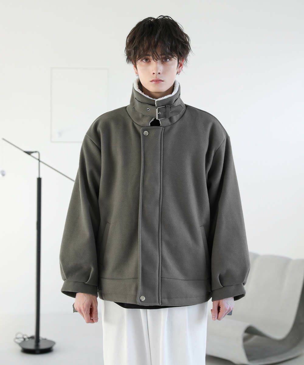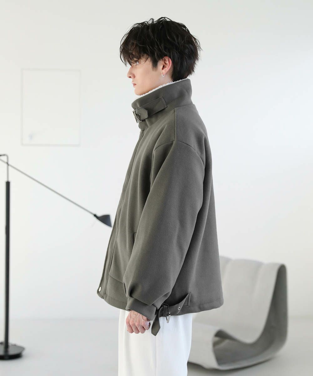 ビッグシルエット裏ボアメルトン2wayショートブルゾン