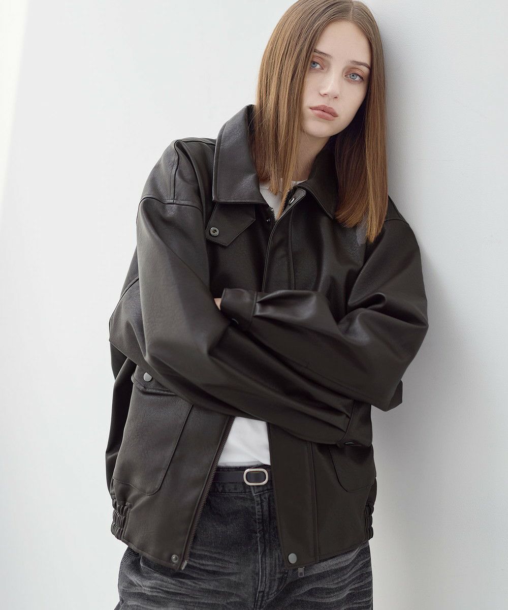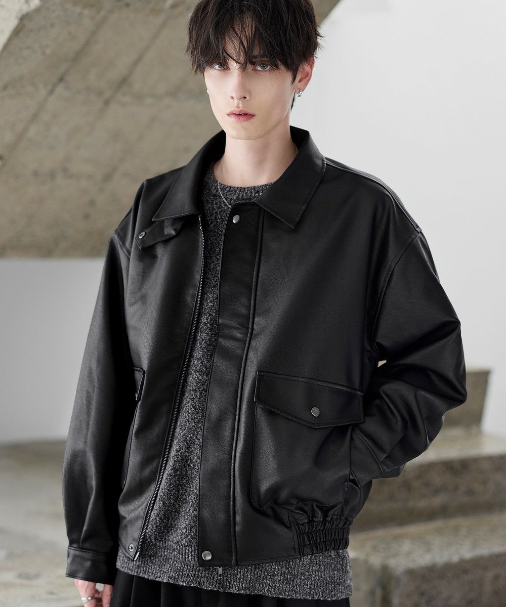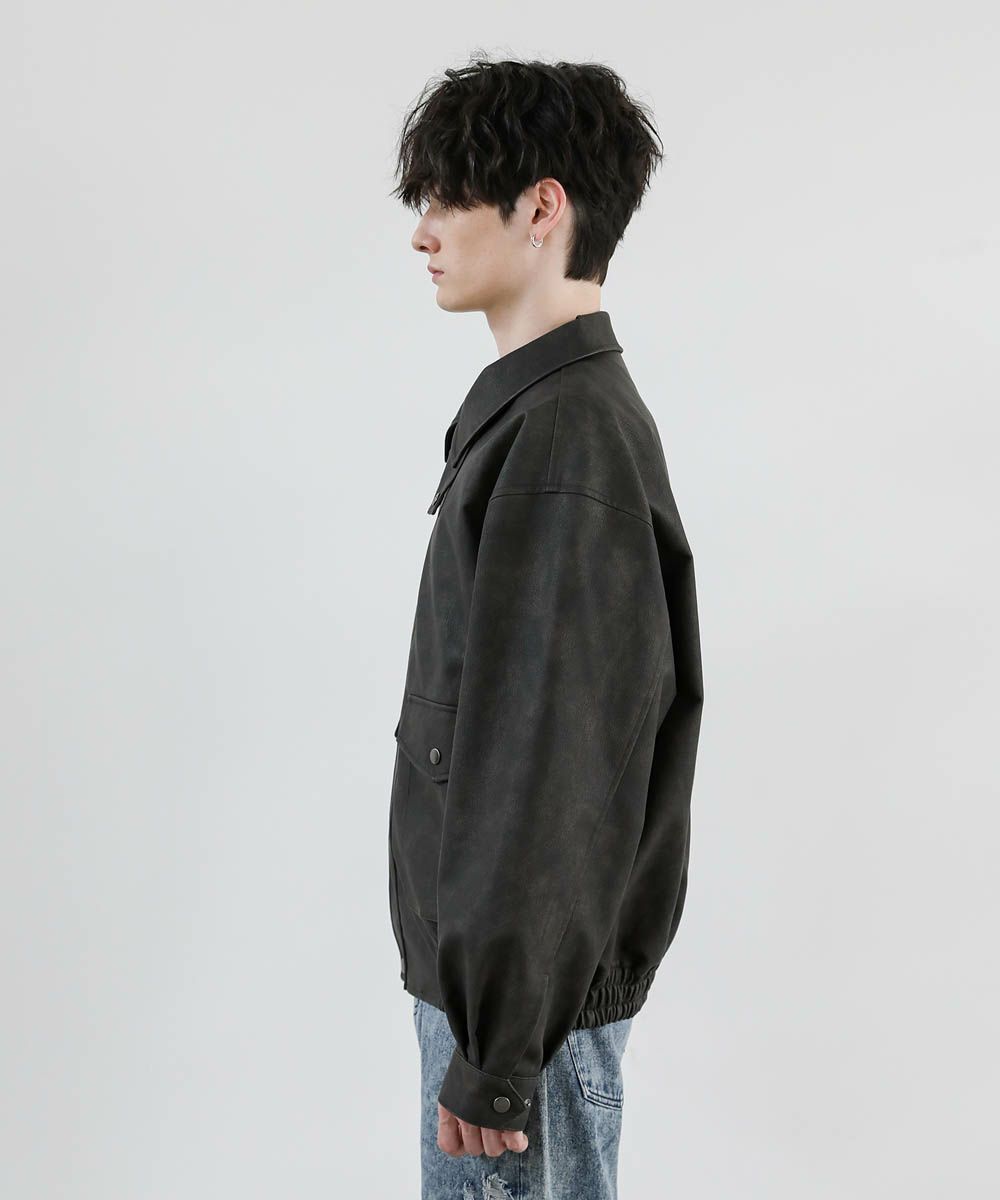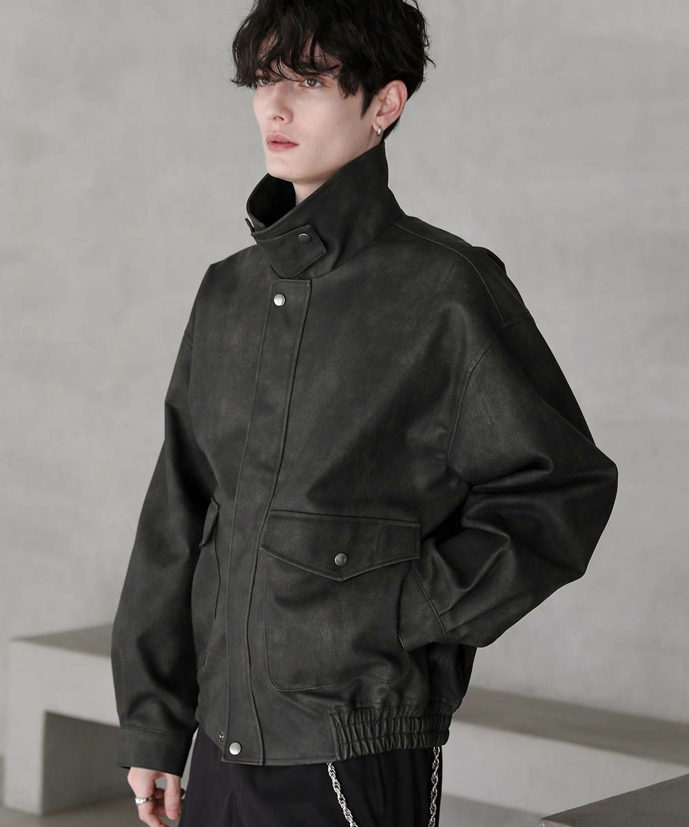 ヴィンテージ加工PUレザーA-2ショートブルゾン