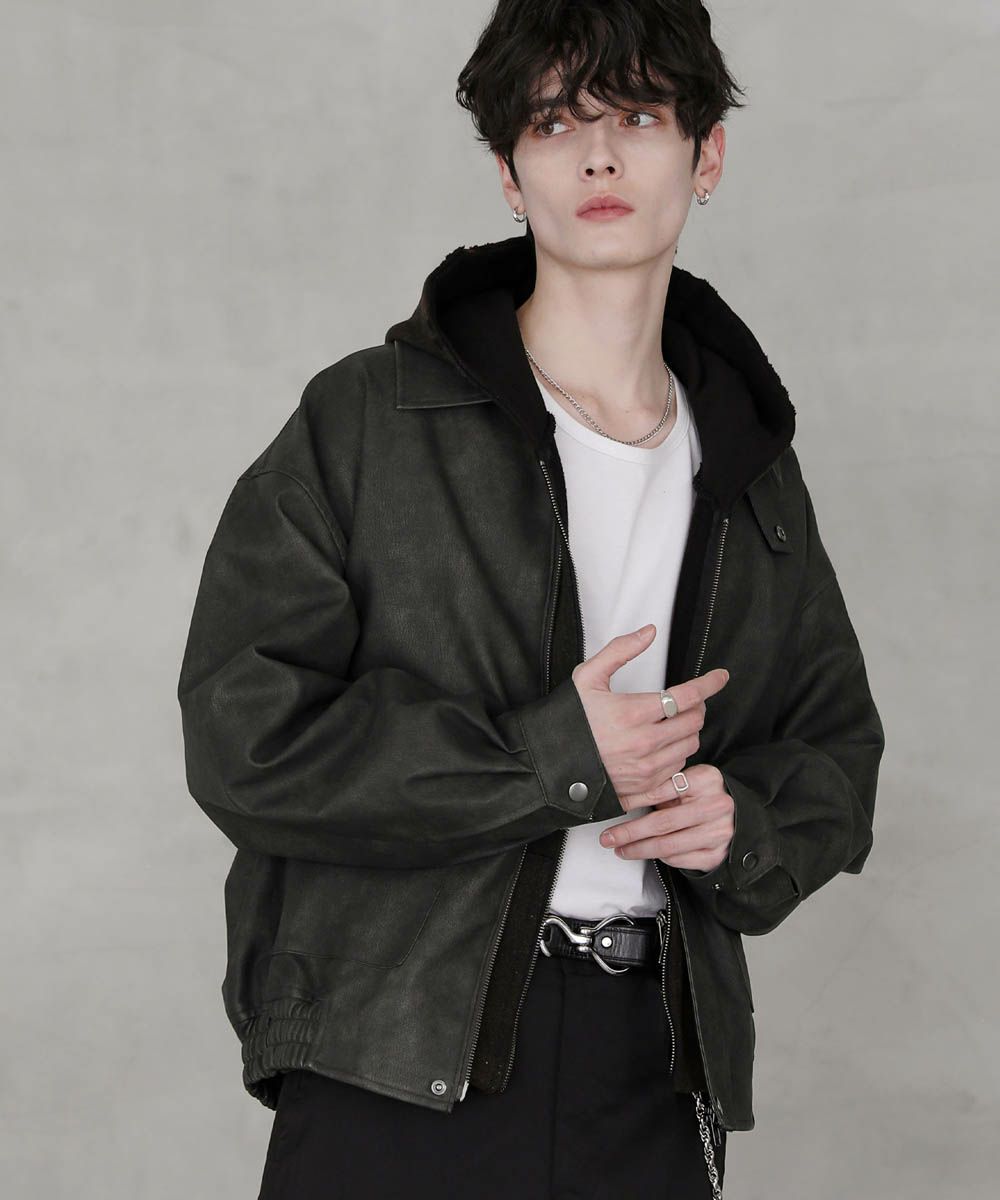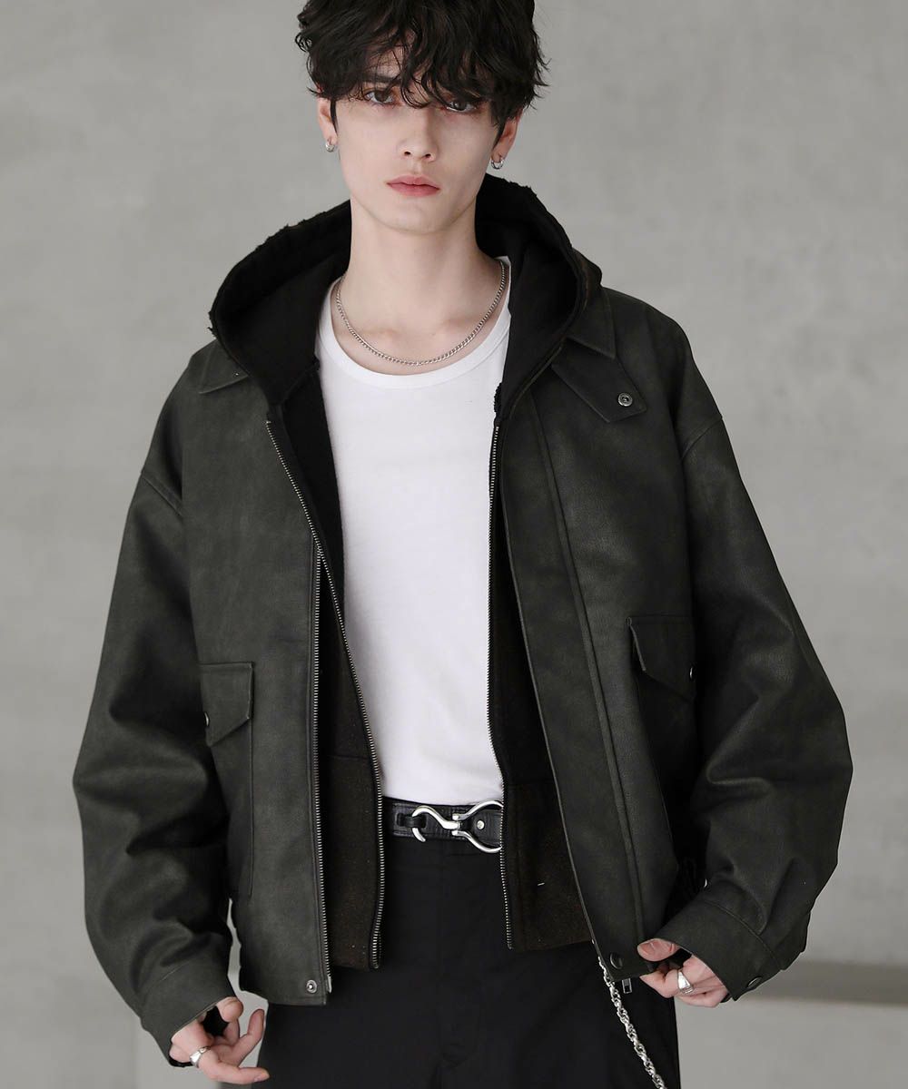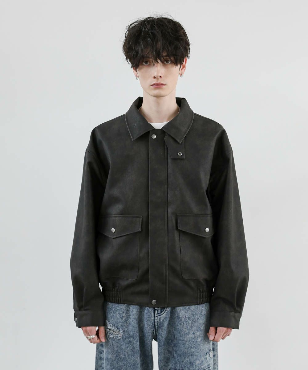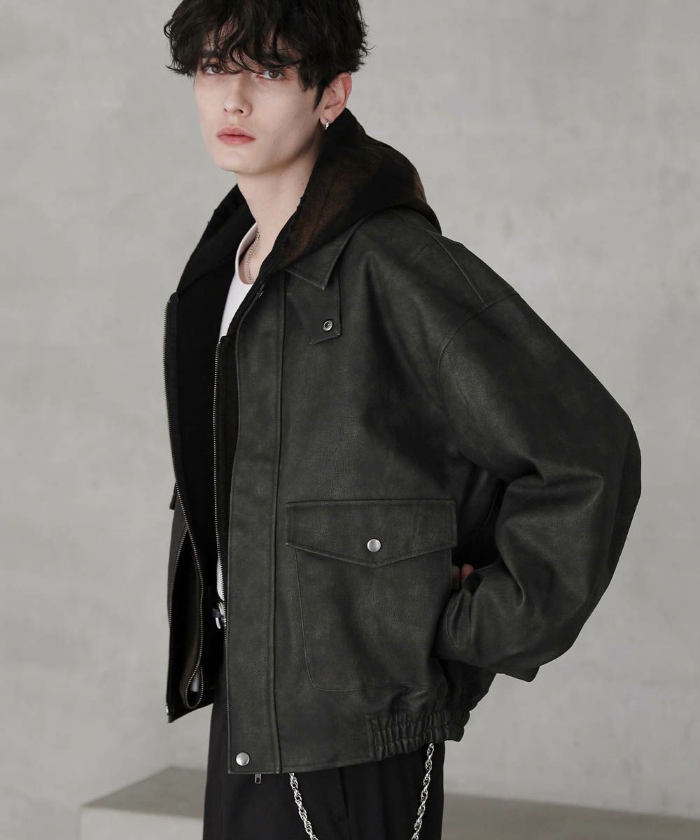 ヴィンテージ加工 PUレザー A-2ショートブルゾン