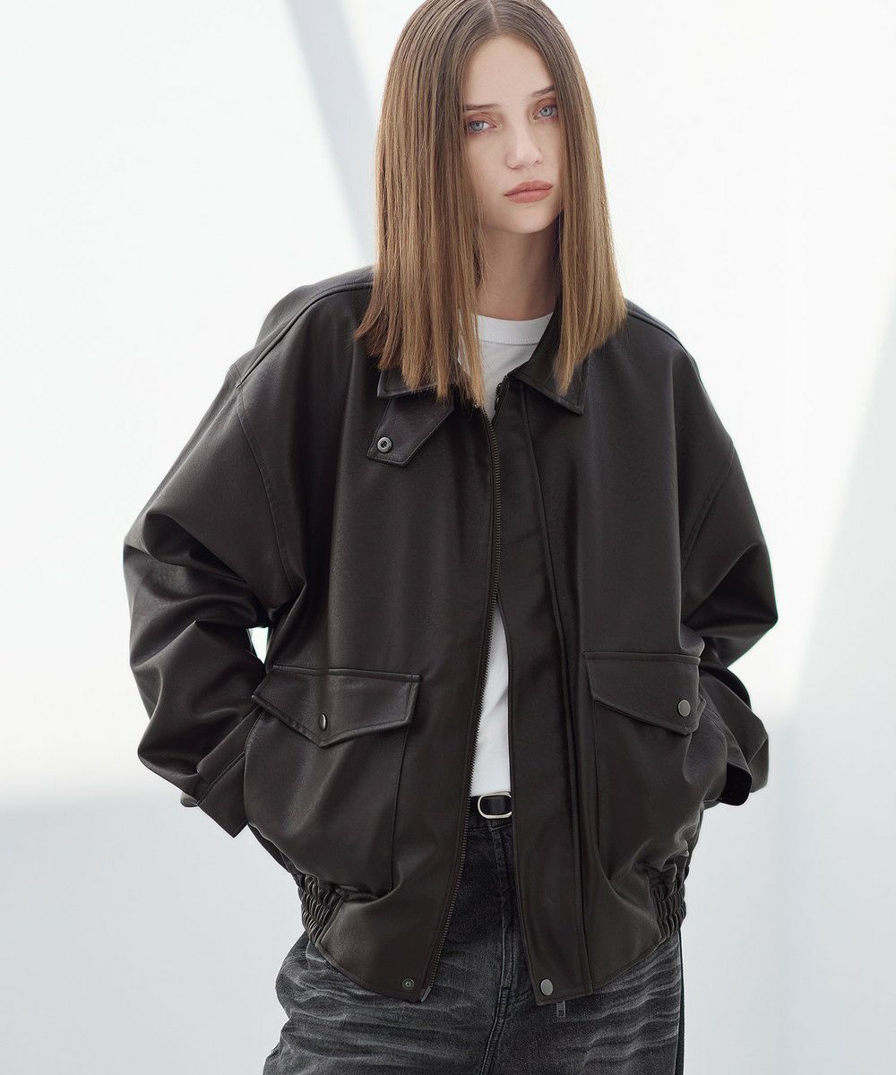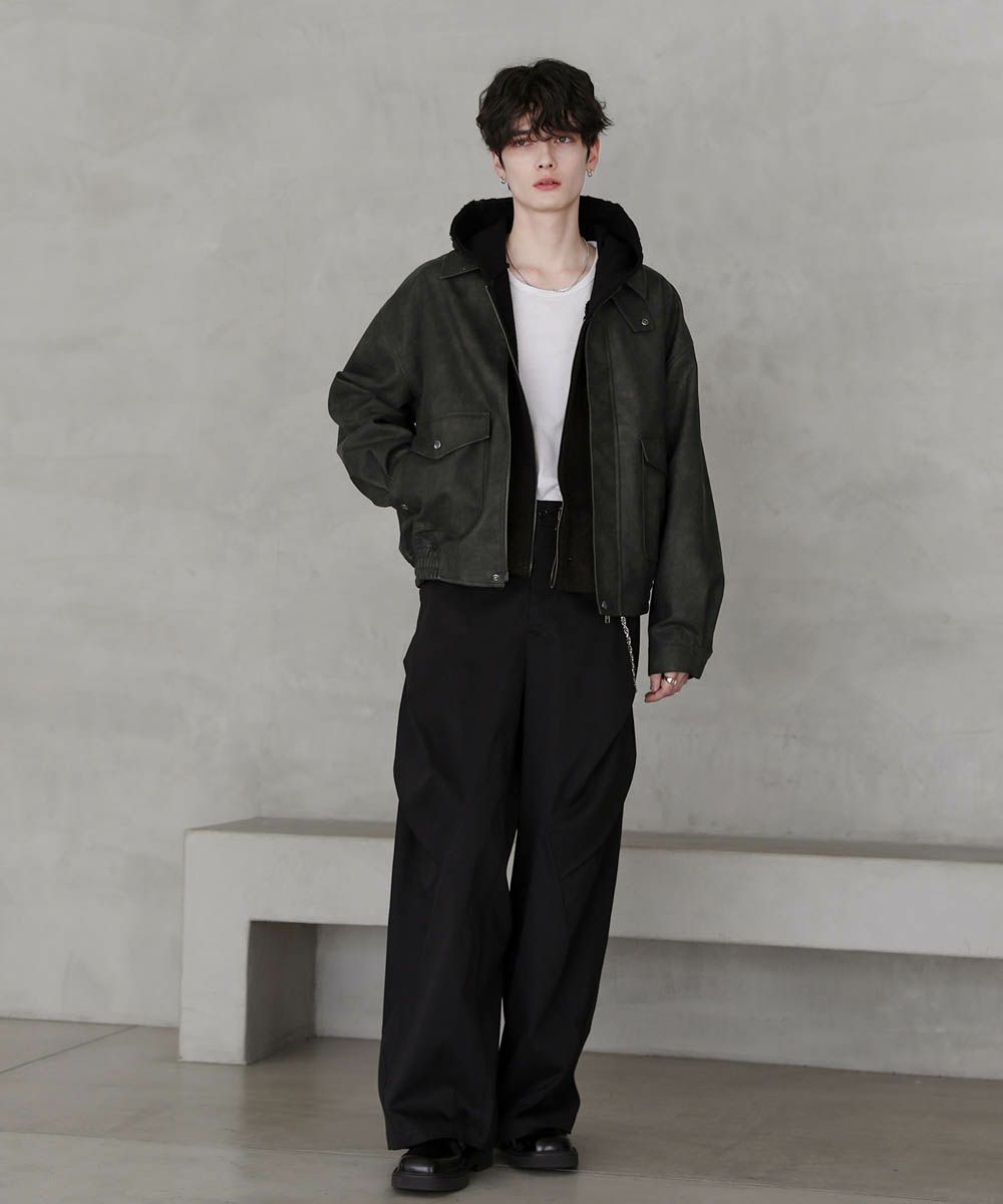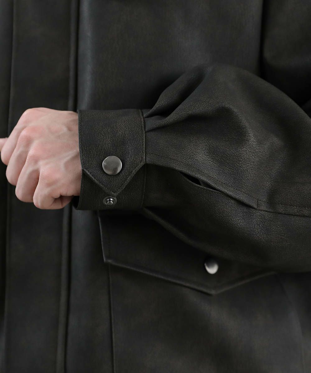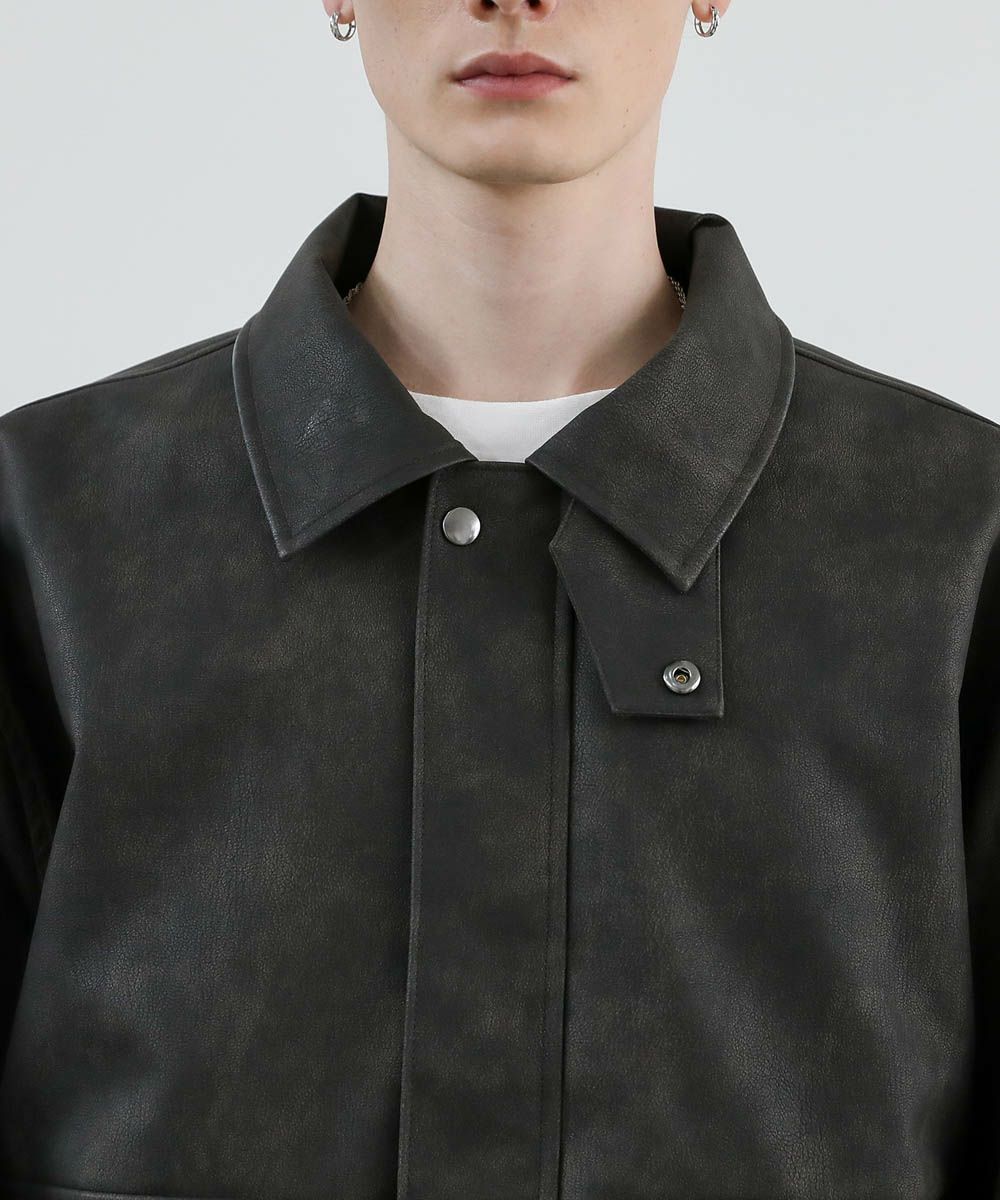 ヴィンテージ加工 PUレザー A-2ショートブルゾン