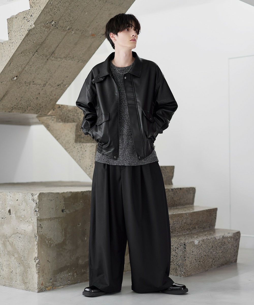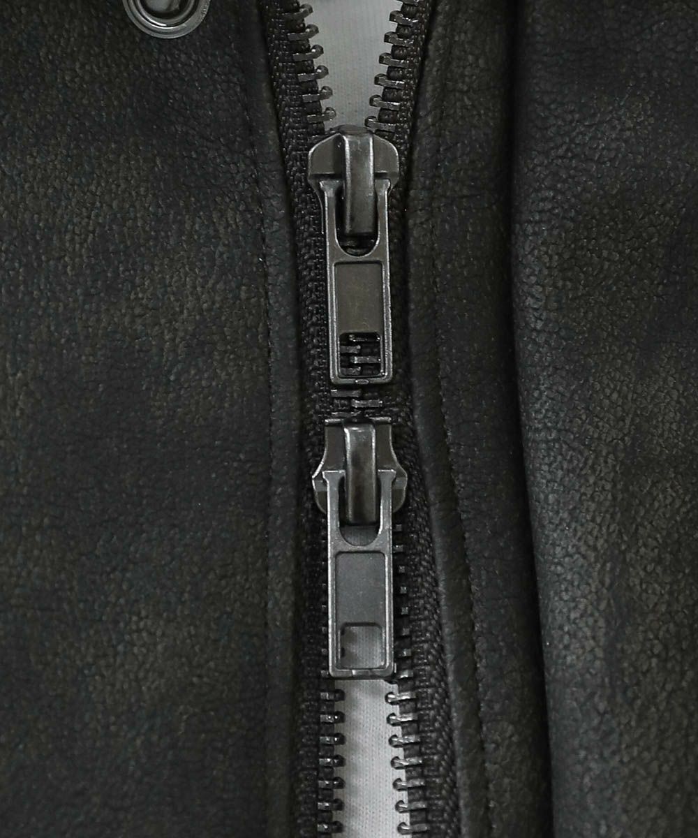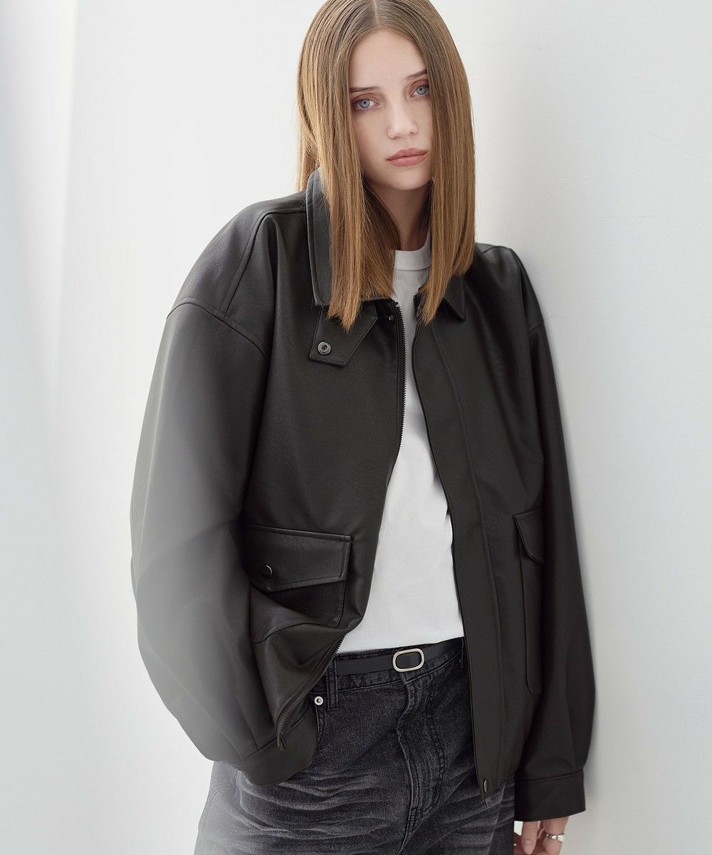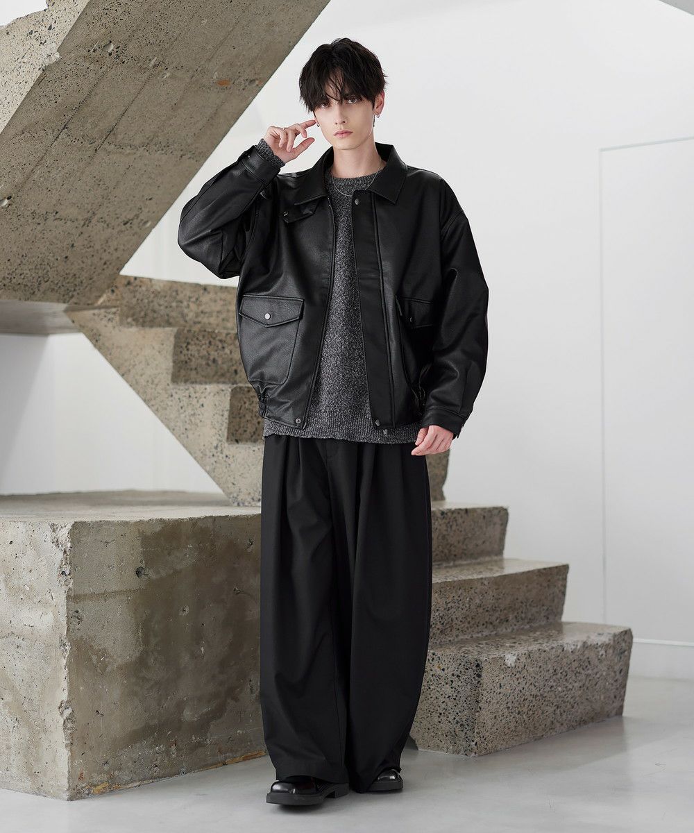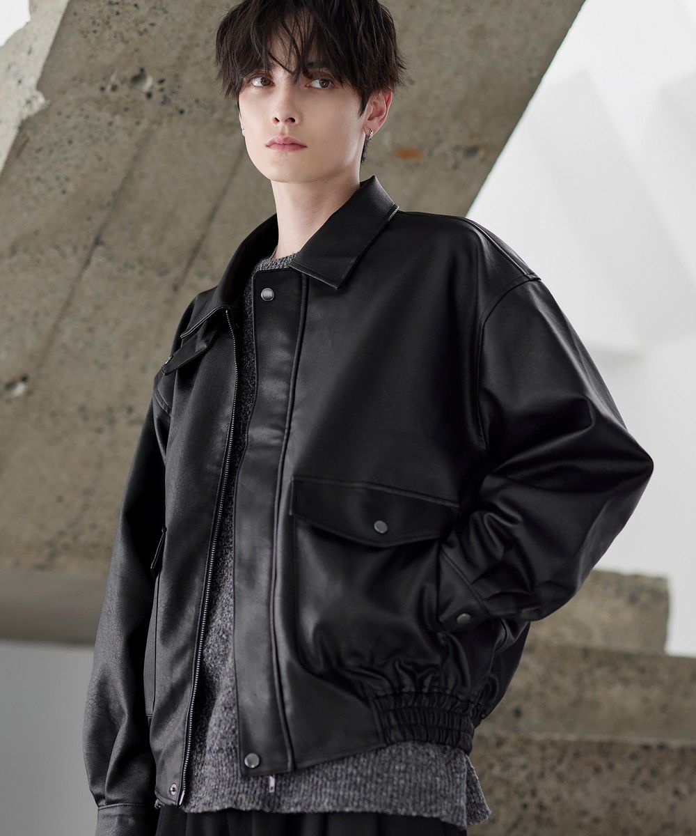 米陸軍航空隊のシンボルであるフライトジャケット、A-2をトレンドに落とし込んだ1着。リアルな質感にこだわり、本革のようなシボ感とマットな質感が魅力です。ワイドな身幅にドロップショルダー、着丈はショート丈にすることで、着回しやすくスタイルアップが叶う1着。フロントの大きめなフラップポケットやチンストラップなど、ミリタリーのディティールがアクセントになっています。チンストラップを留めて、スタンドネックとしても着用が可能。また、フロントはジップとスナップボタンの比翼仕立てになっており、ジップを閉めると隙間風の侵入を防いで防寒性を高めてくれます。