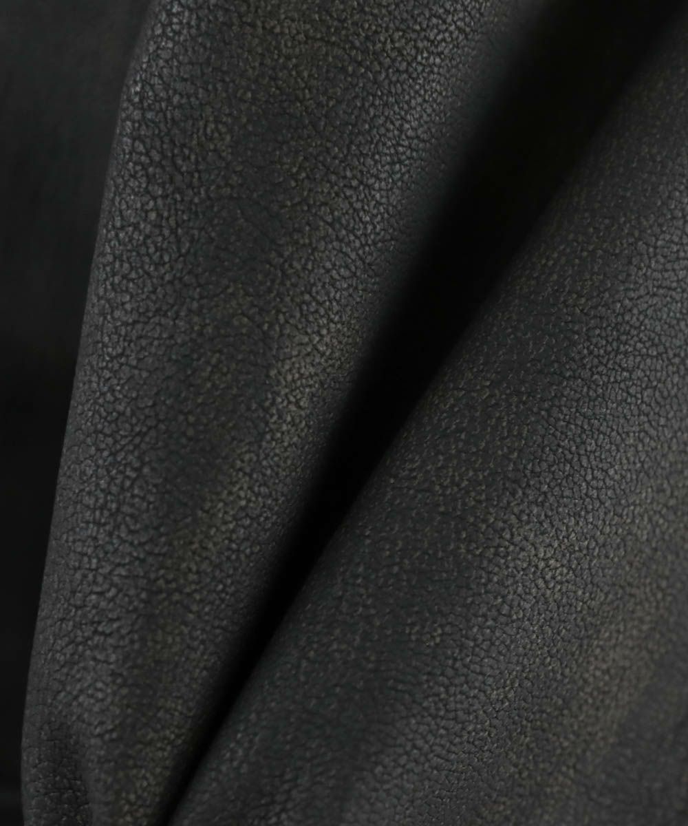 本革のようなシボ感を表現した合成皮革を使用しています。光沢感を抑えたマットな質感にこだわり、落ち着いた印象で着用いただけます。ポリエステル素材なので、汚れてもサッと拭いてお手入れできる気軽さが魅力です。