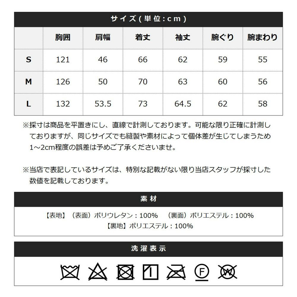 生地表面にはシボ感があり、本革のようなリアルな質感を再現した素材を使用。光沢感を抑えたマットな質感にこだわり、落ち着いた印象で着用いただけます。 サラリと滑らかな裏地付きで、インナーがごわつくことなく袖通しもスムーズです。
