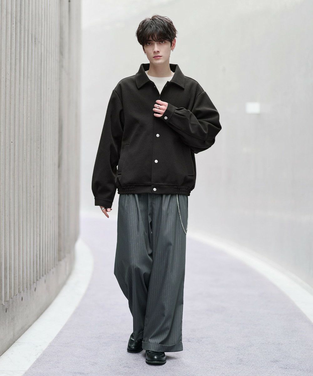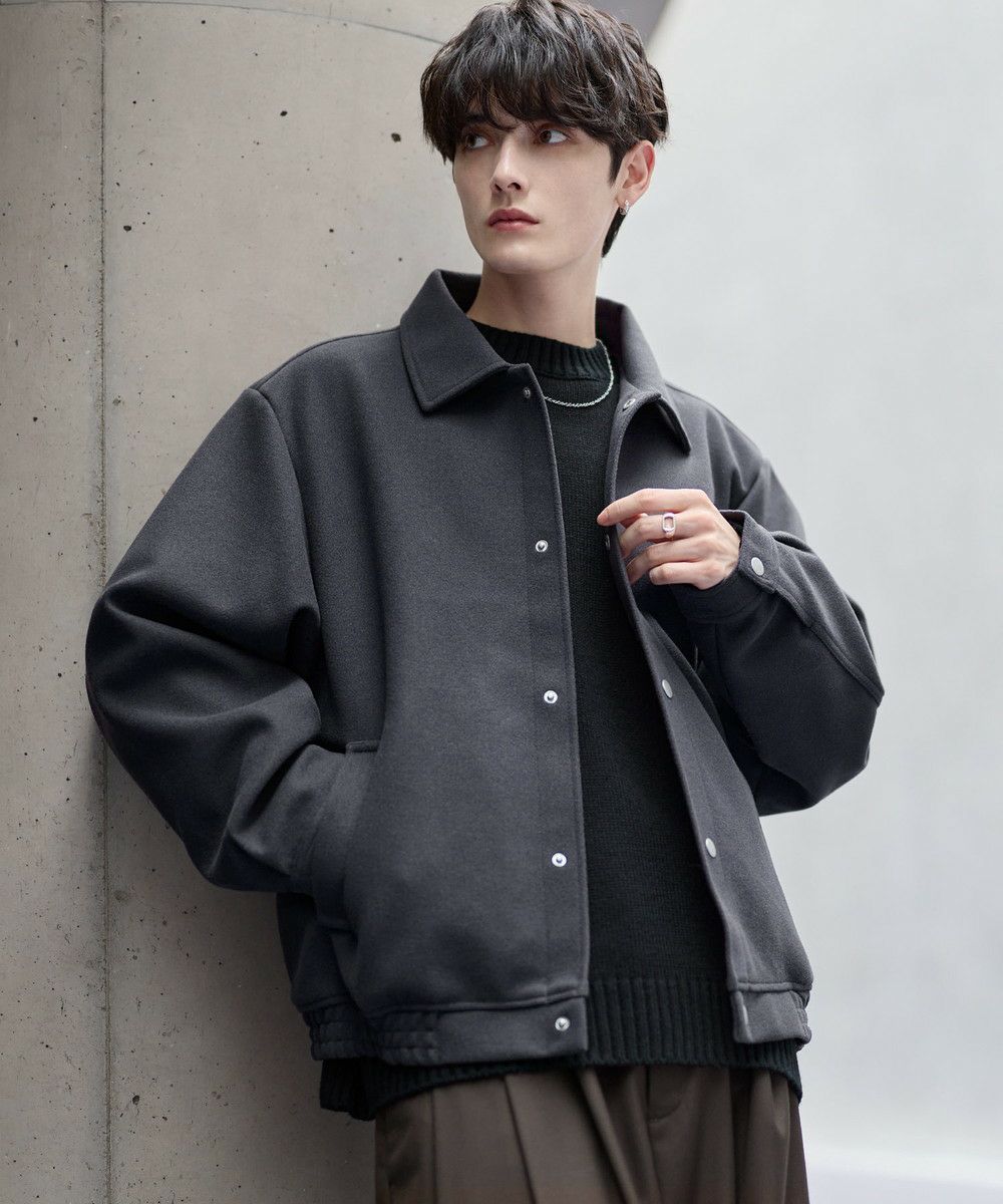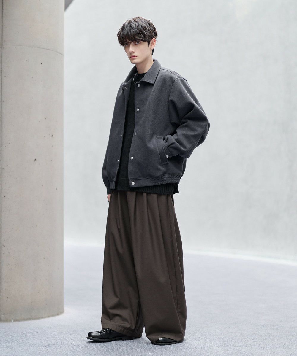 ビッグシルエットとショート丈の絶妙なバランス感がお洒落なショートブルゾン。ゆったりとした身幅とドロップショルダーが抜け感のある雰囲気を醸し出します。肘部分には2タック取り入れ、丸みのあるボリューミーなシルエットに。裾はゴム仕様にすることで隙間風を防ぎつつ、メリハリのあるシルエットをキープ。また、マットなカラーのスナップボタンを使用し上品な印象に仕上げました。フロントにはポケットを備え機能性もプラス。カラーはシックで馴染みやすいブラック、モカ、ライトグレー、ブラウン、チャコールの5色展開。カジュアルすぎず、タウンユースにも馴染むシティライクな万能アウターです。