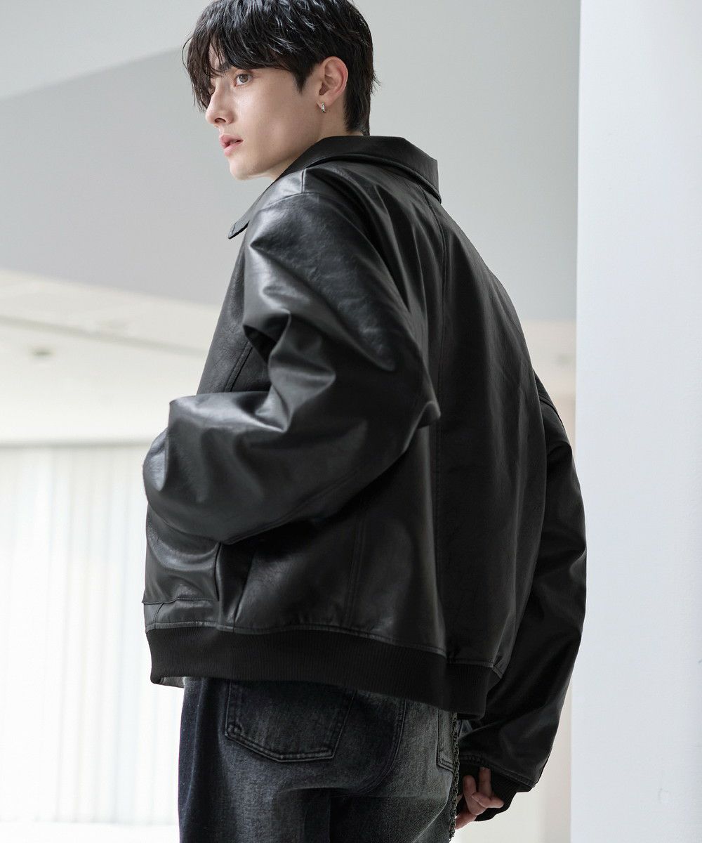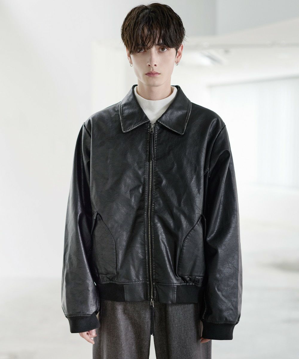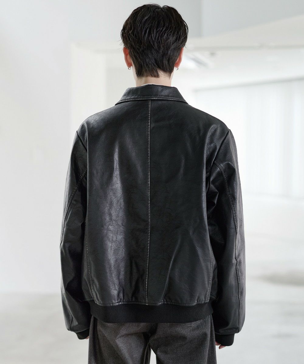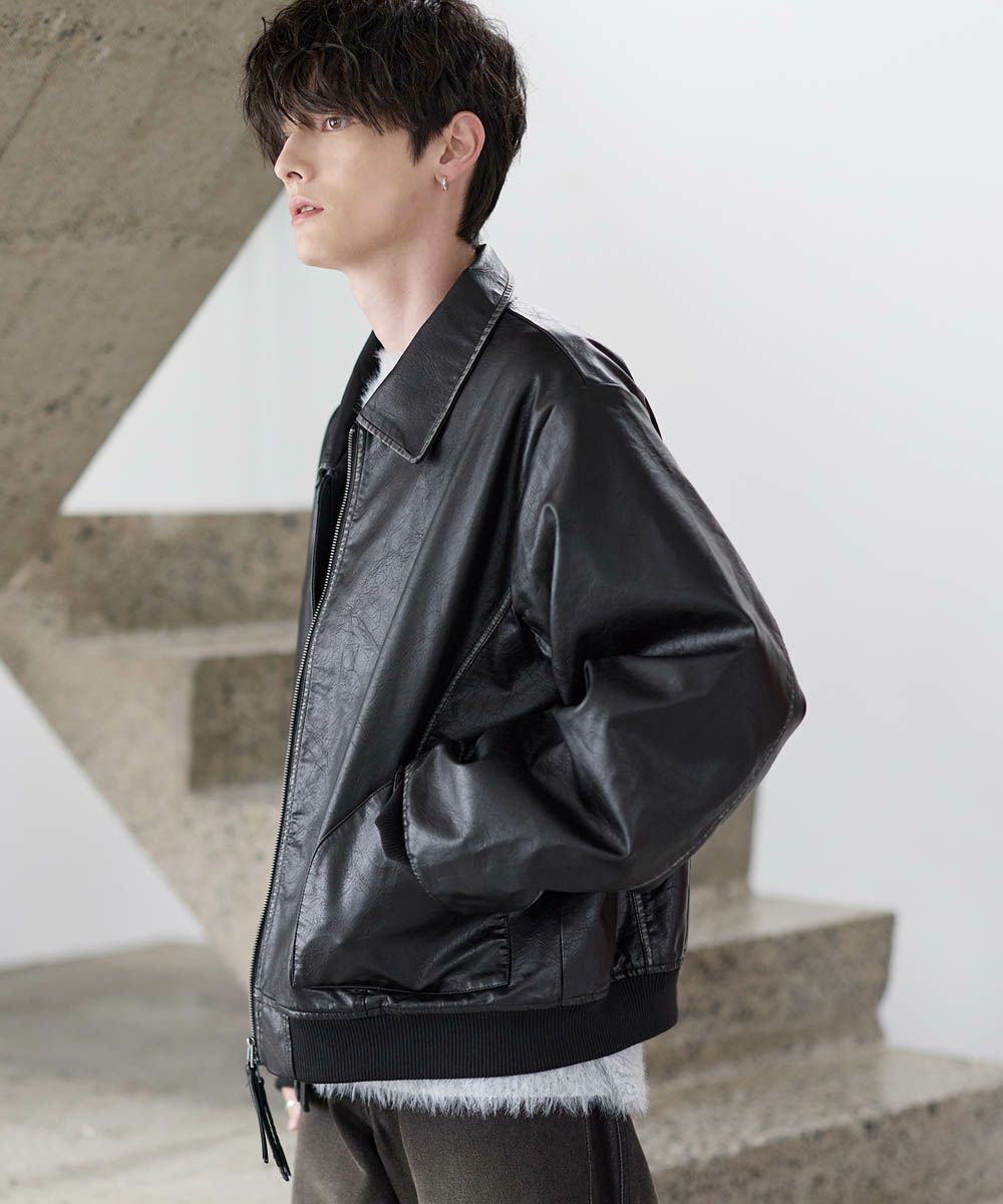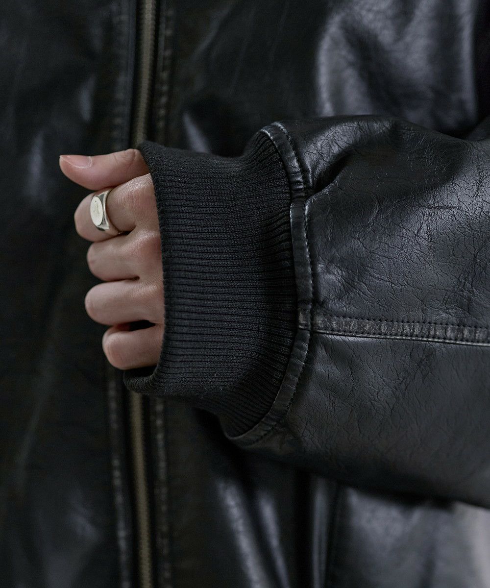 ヴィンテージ加工PU合皮ショート丈ブルゾン