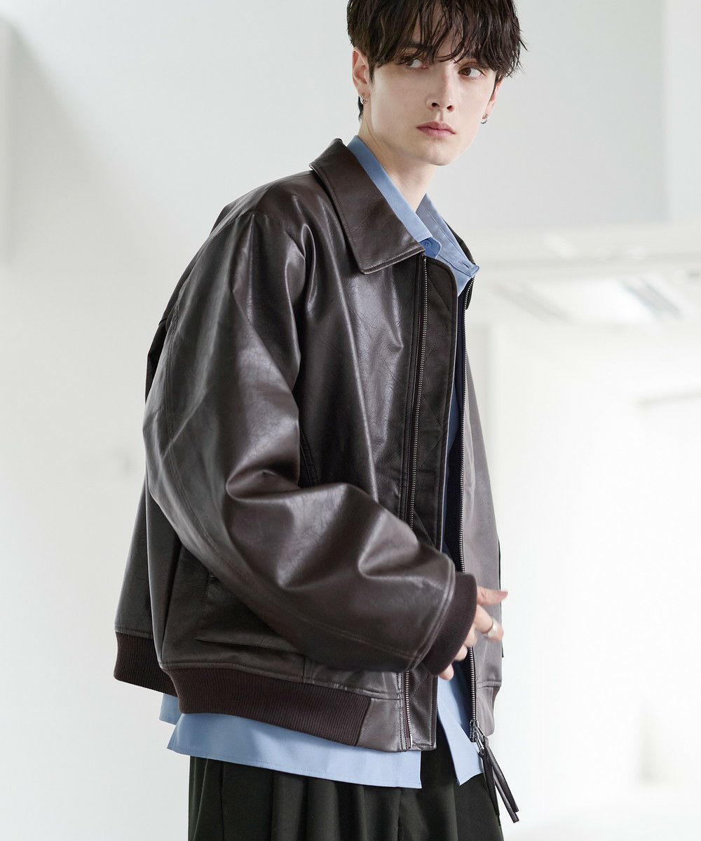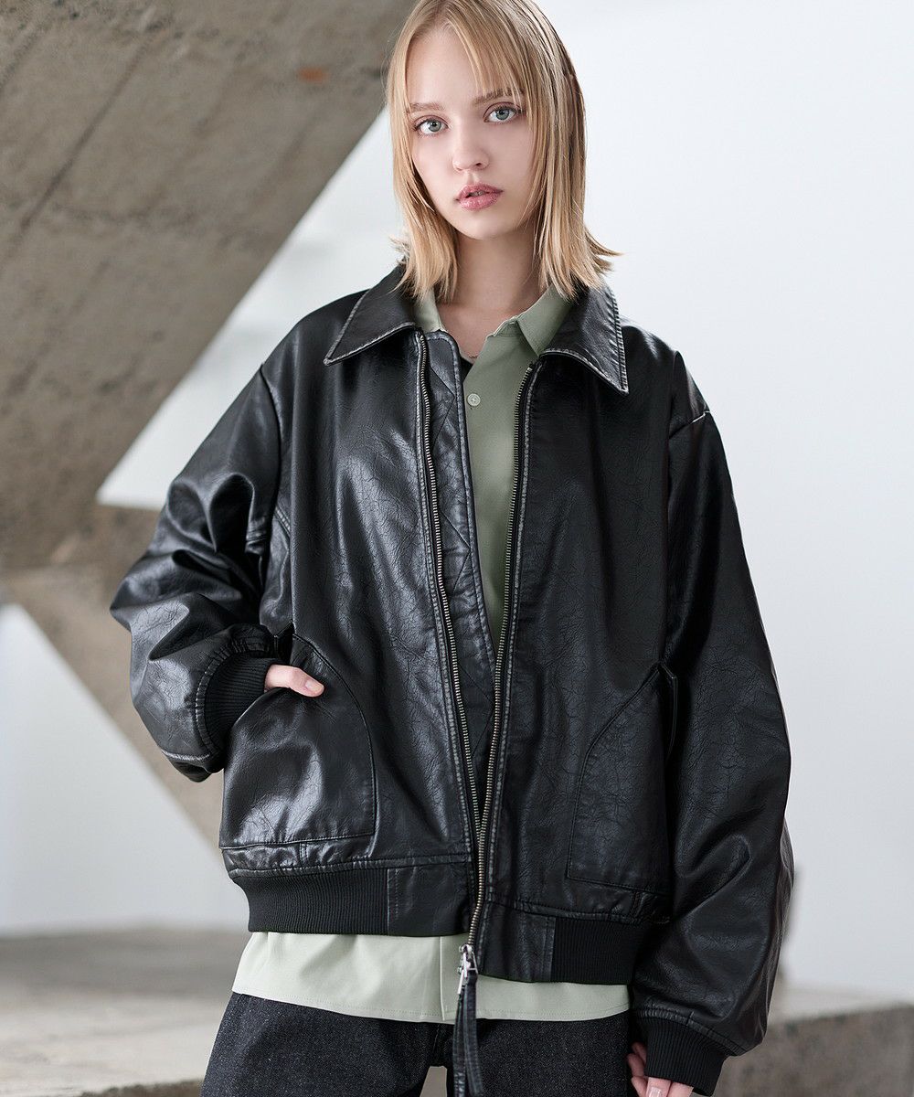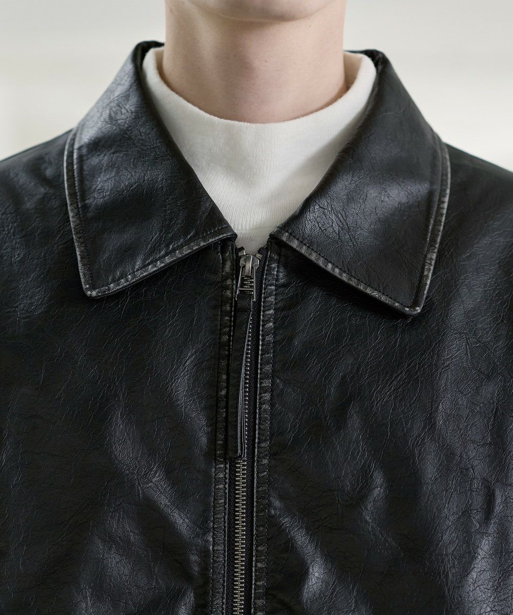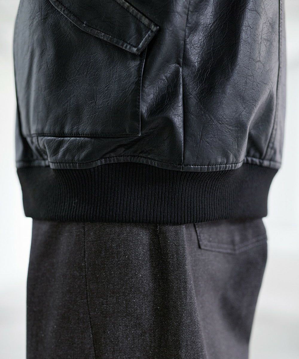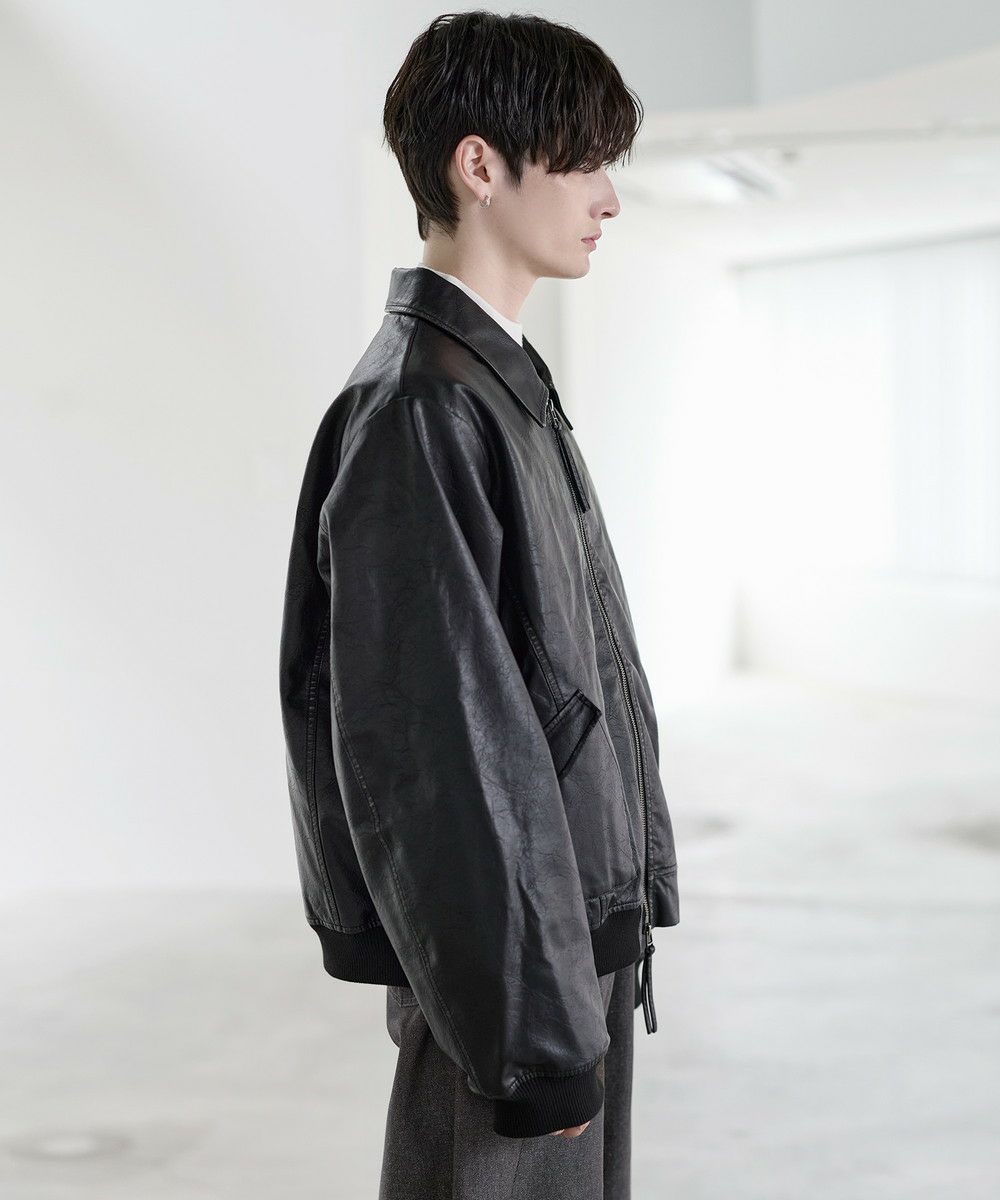 ヴィンテージ加工PU合皮ショート丈ブルゾン
