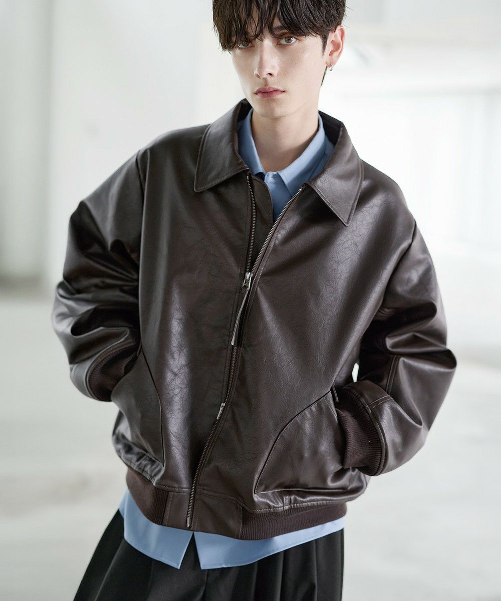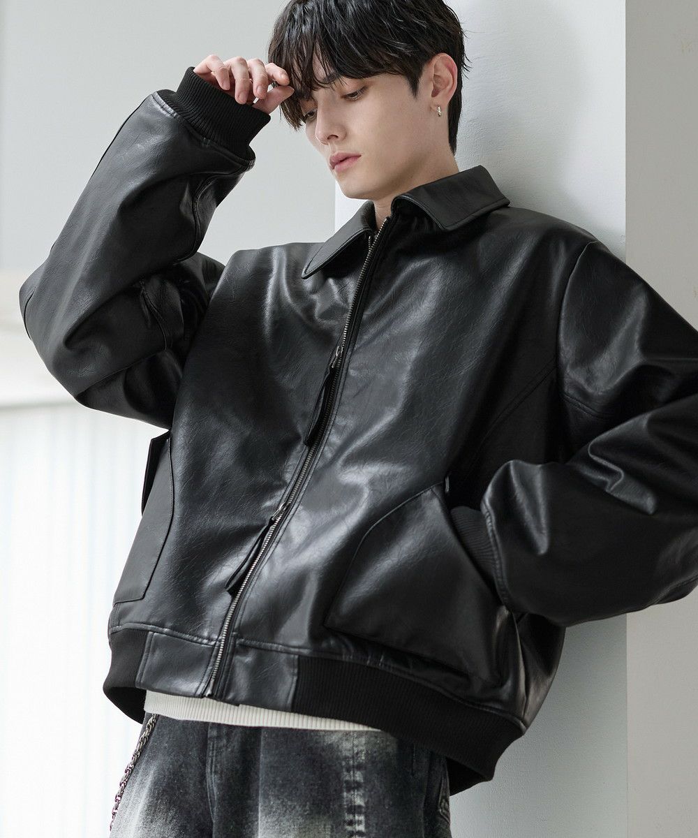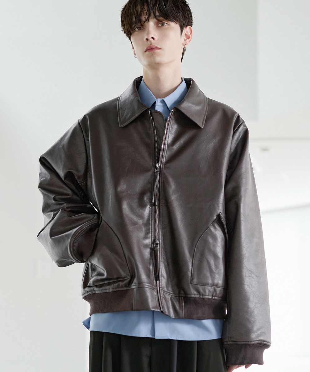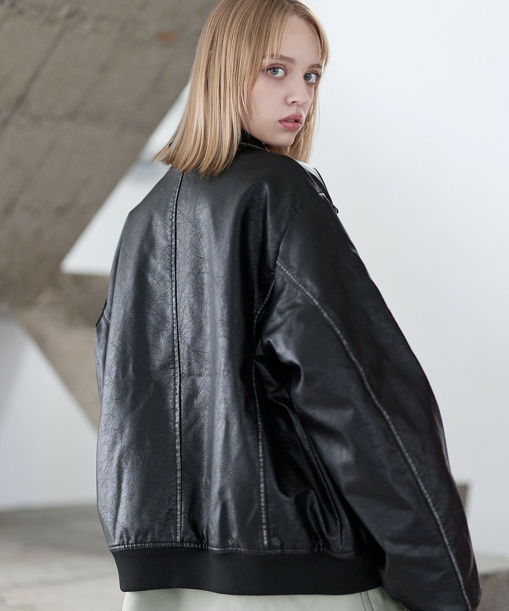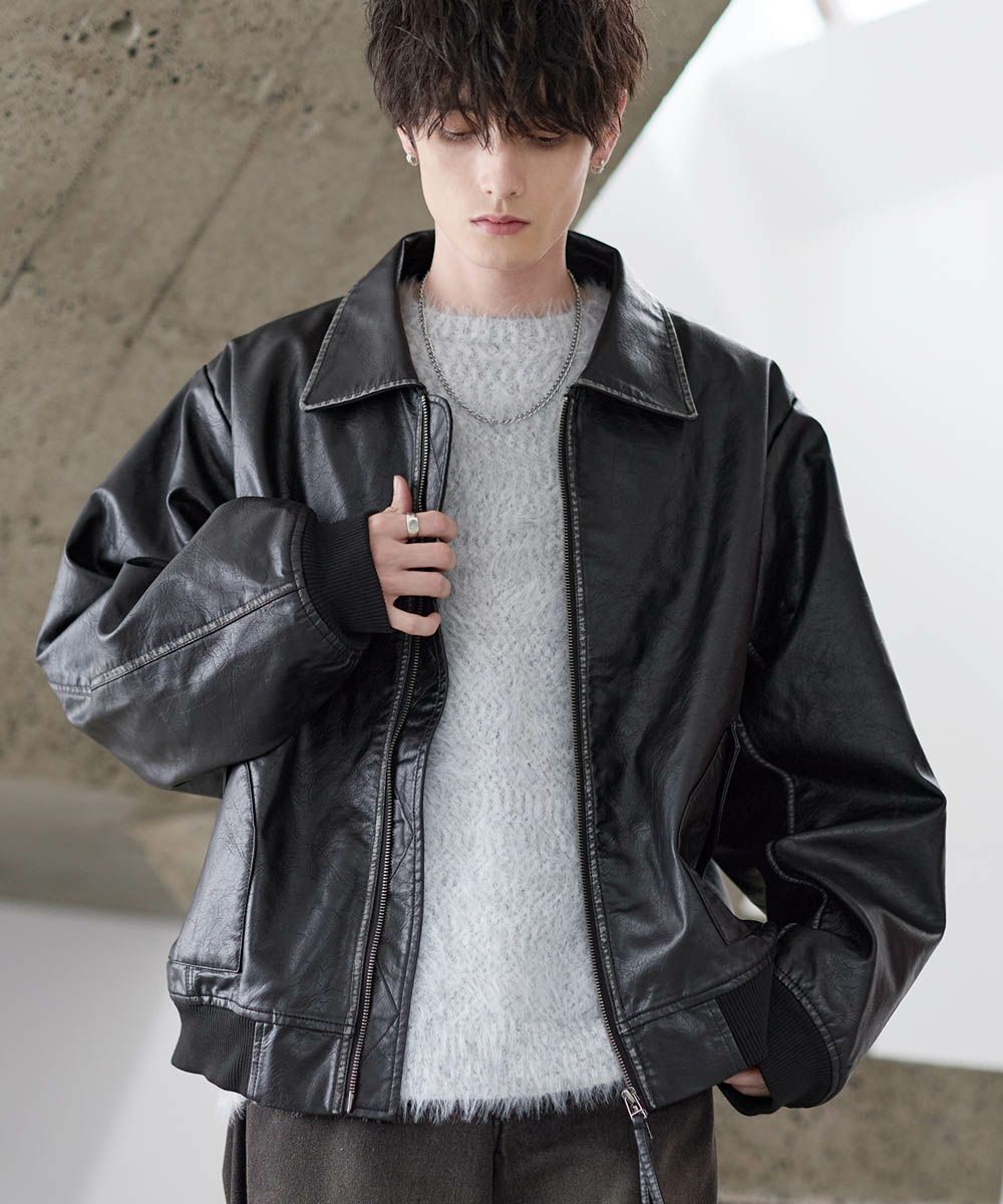 ヴィンテージ加工PU合皮ショート丈ブルゾン