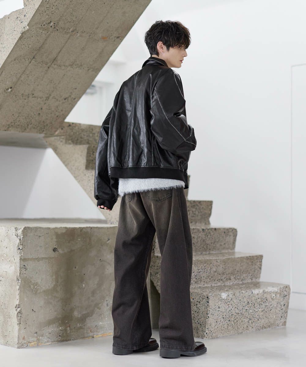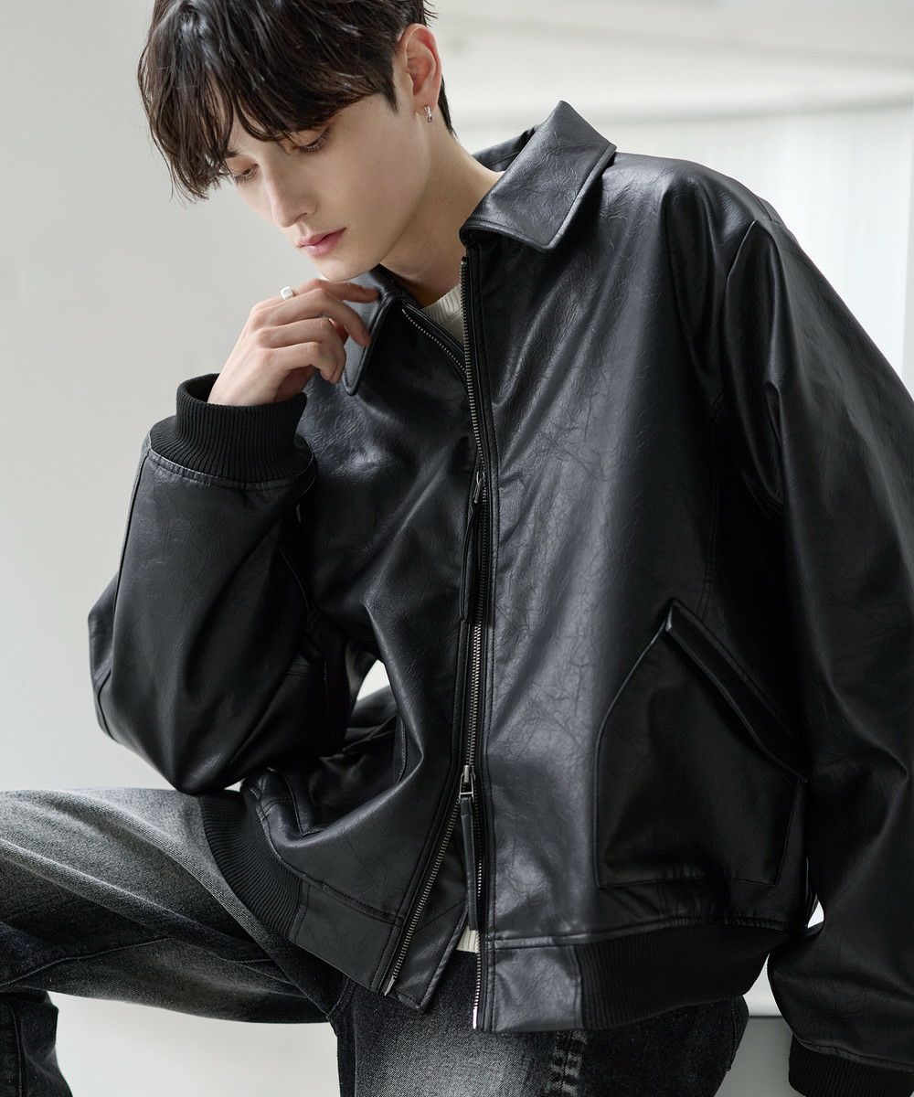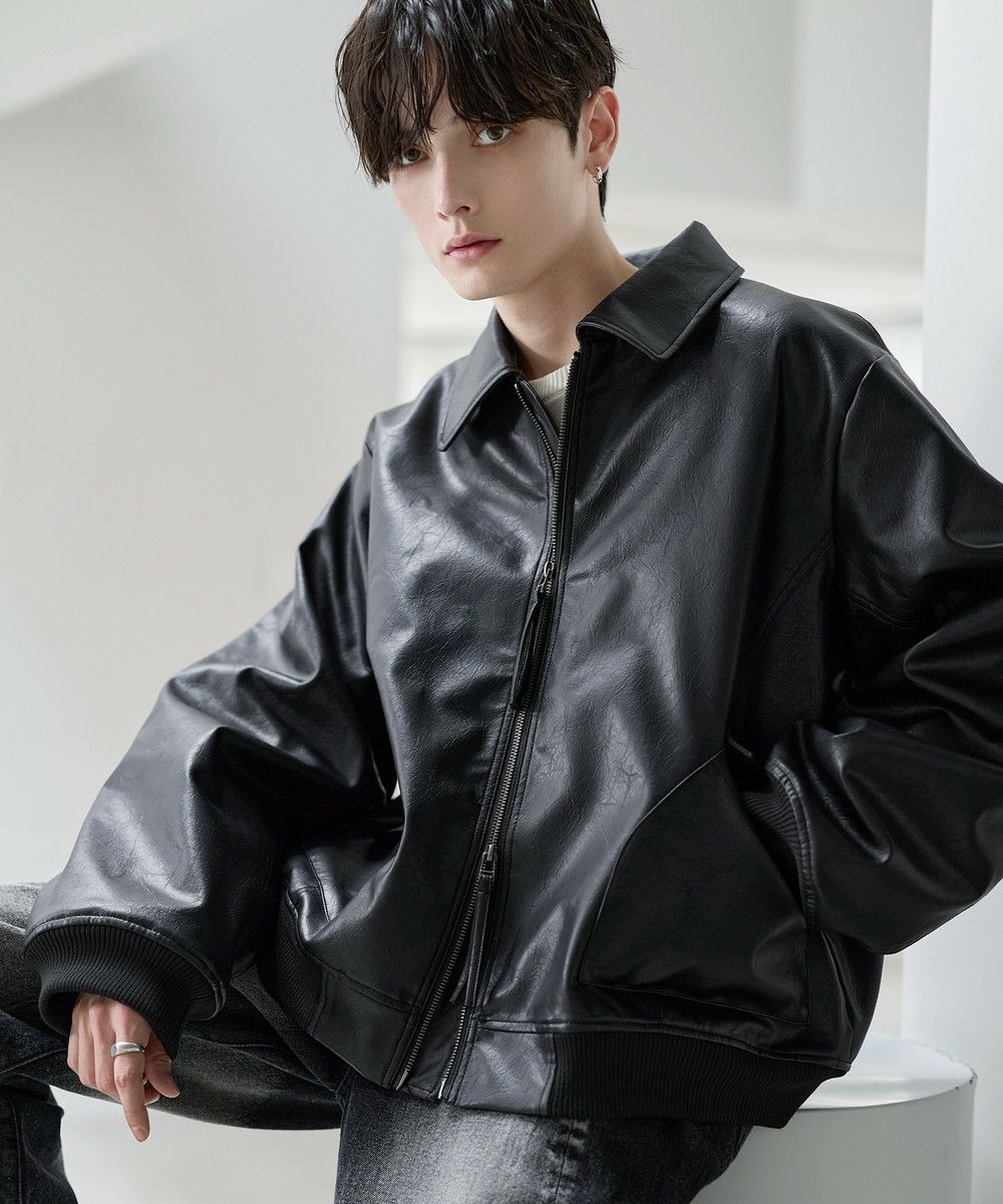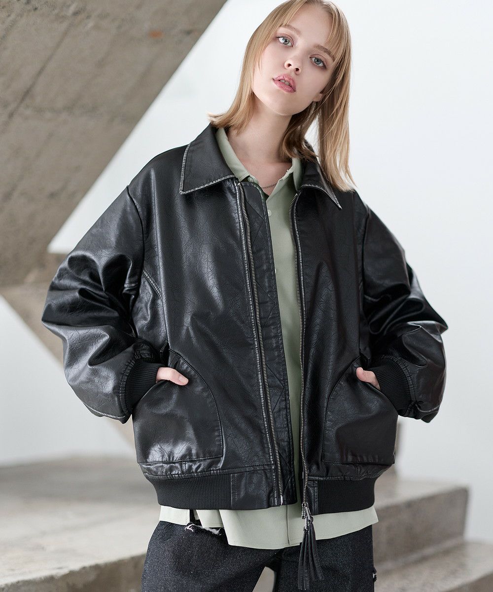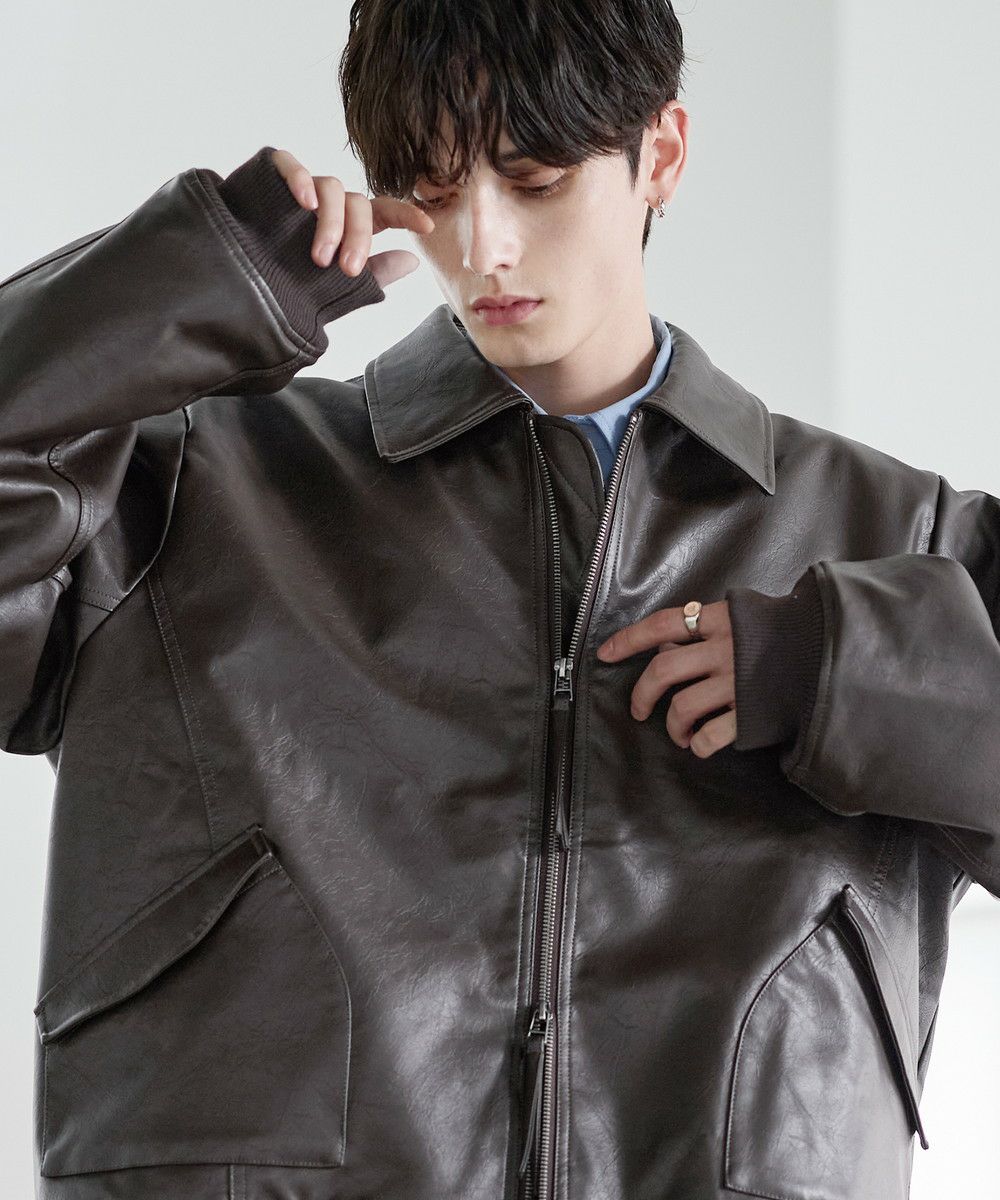 ヴィンテージ加工PU合皮ショート丈ブルゾン